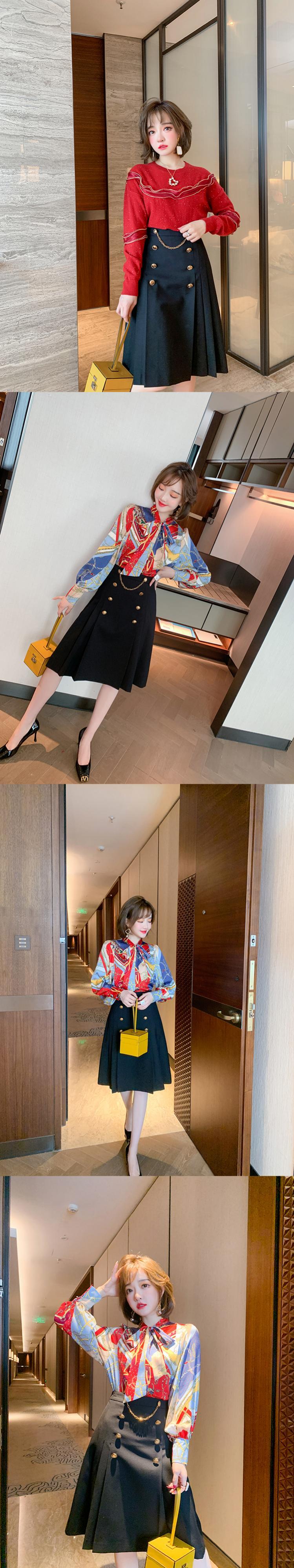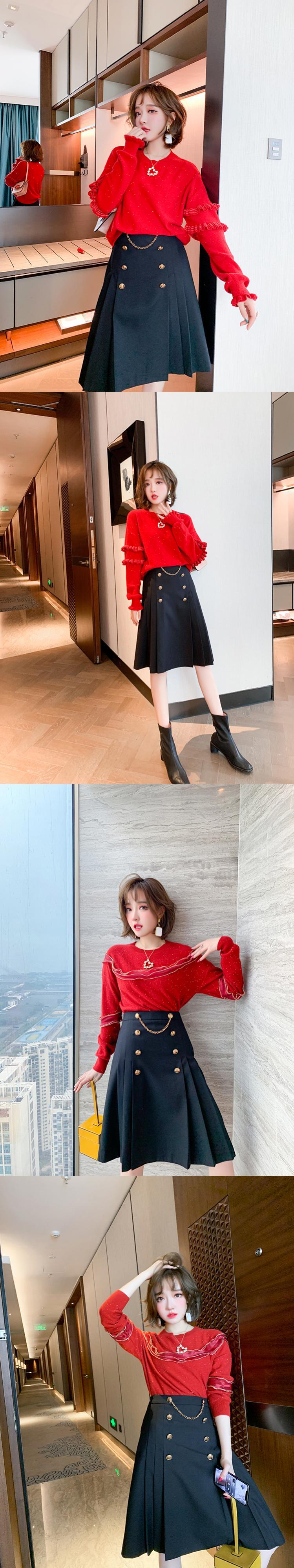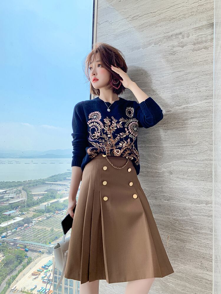 ダブルブレストメタルチェーン ウェストプリーツスカート スプリング 春物 MIUCO56371494945