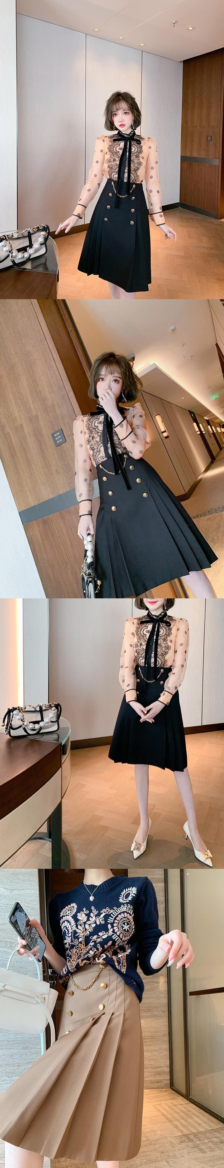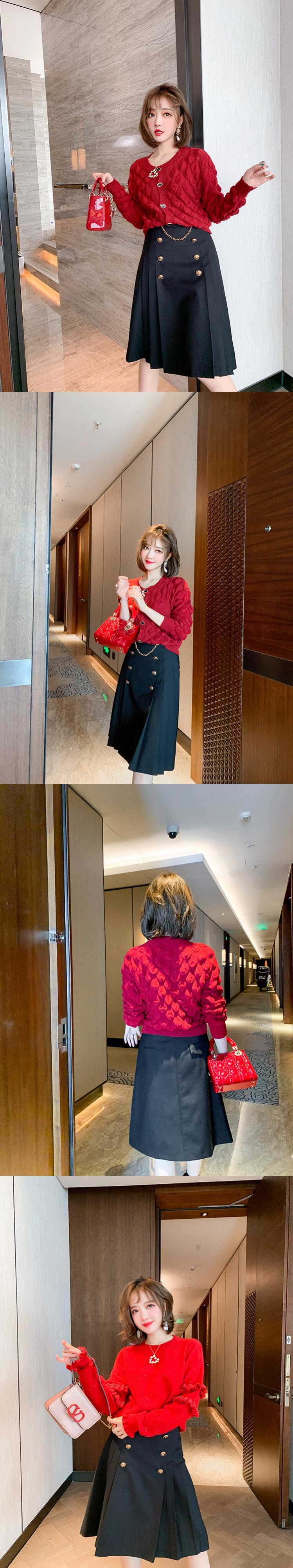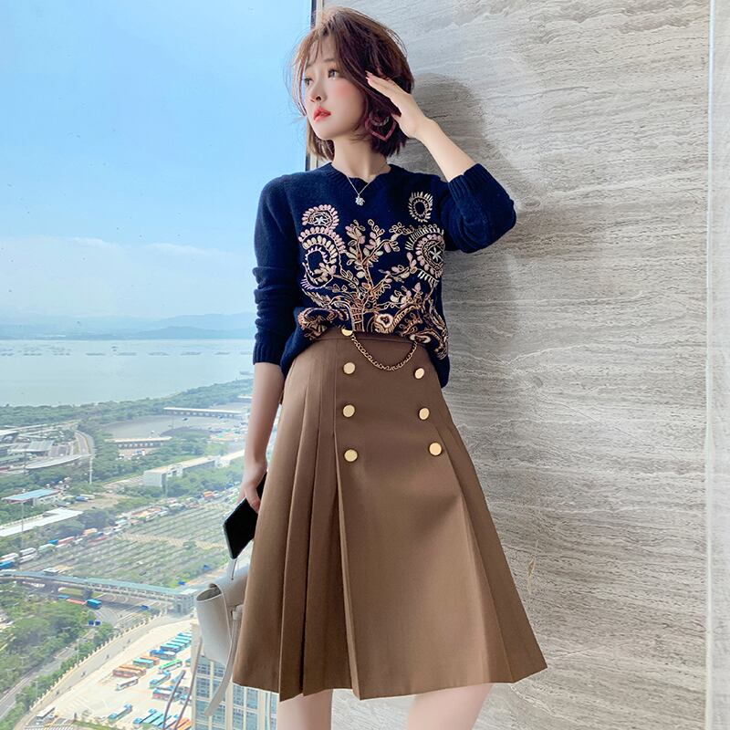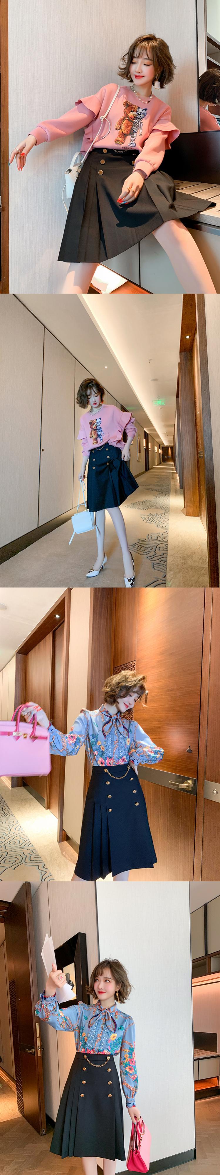 ダブルブレストメタルチェーン ウェストプリーツスカート スプリング 春物 MIUCO56371494945