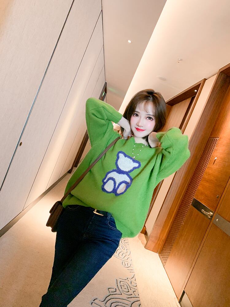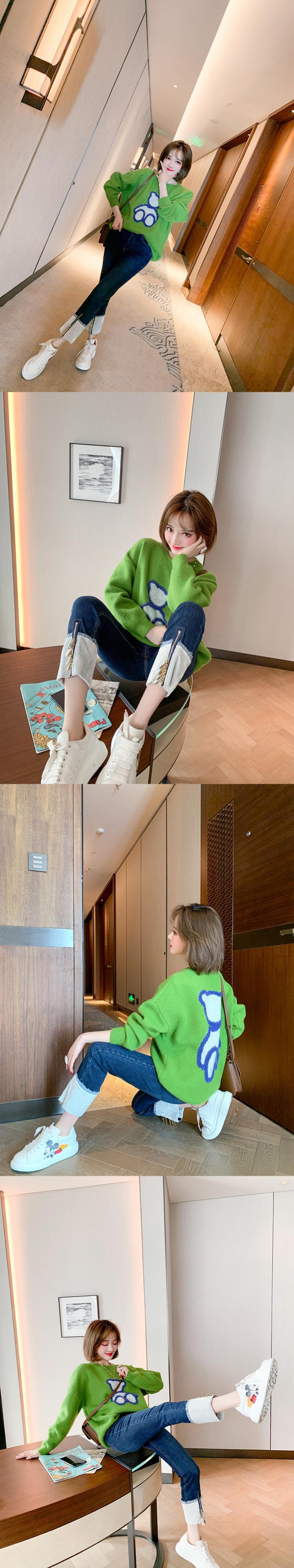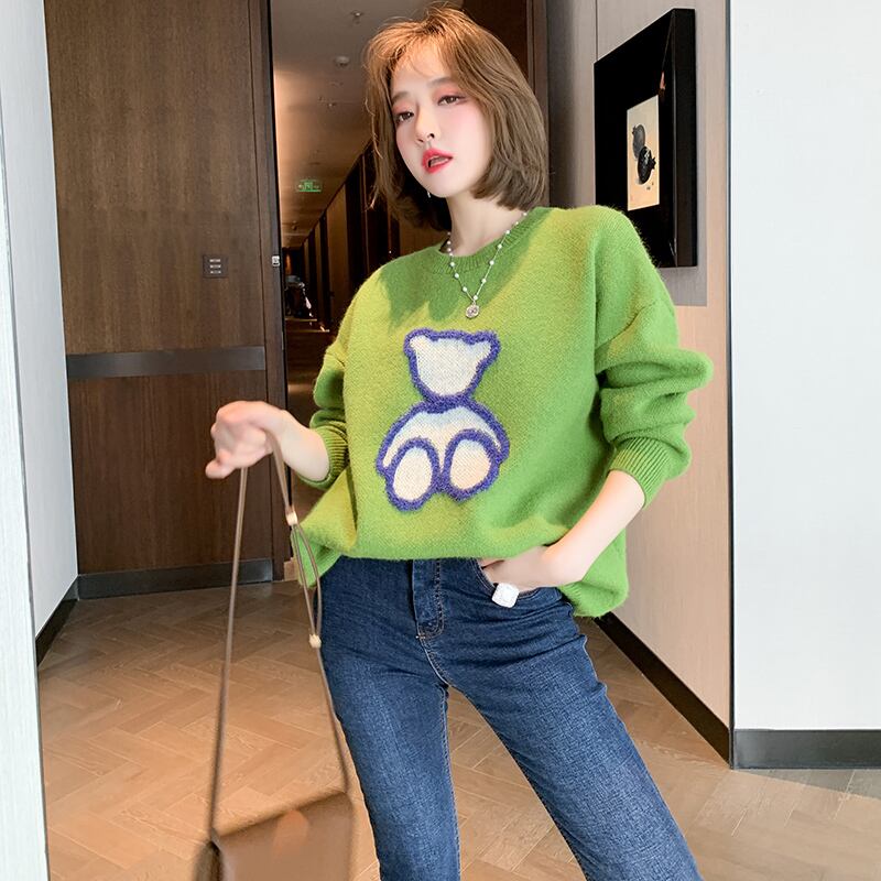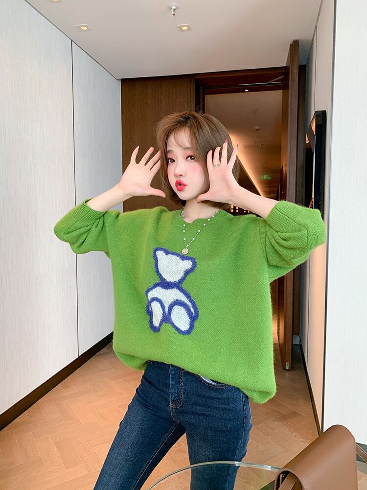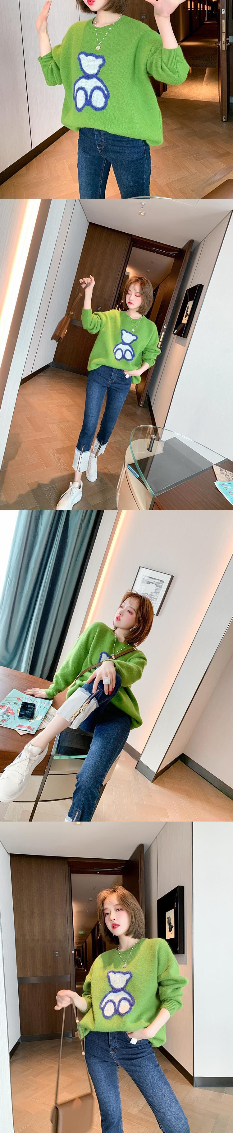 ラウンドネックルーズ薄手ニットセーター スプリング 春物 Oネック MIUCO75600193656