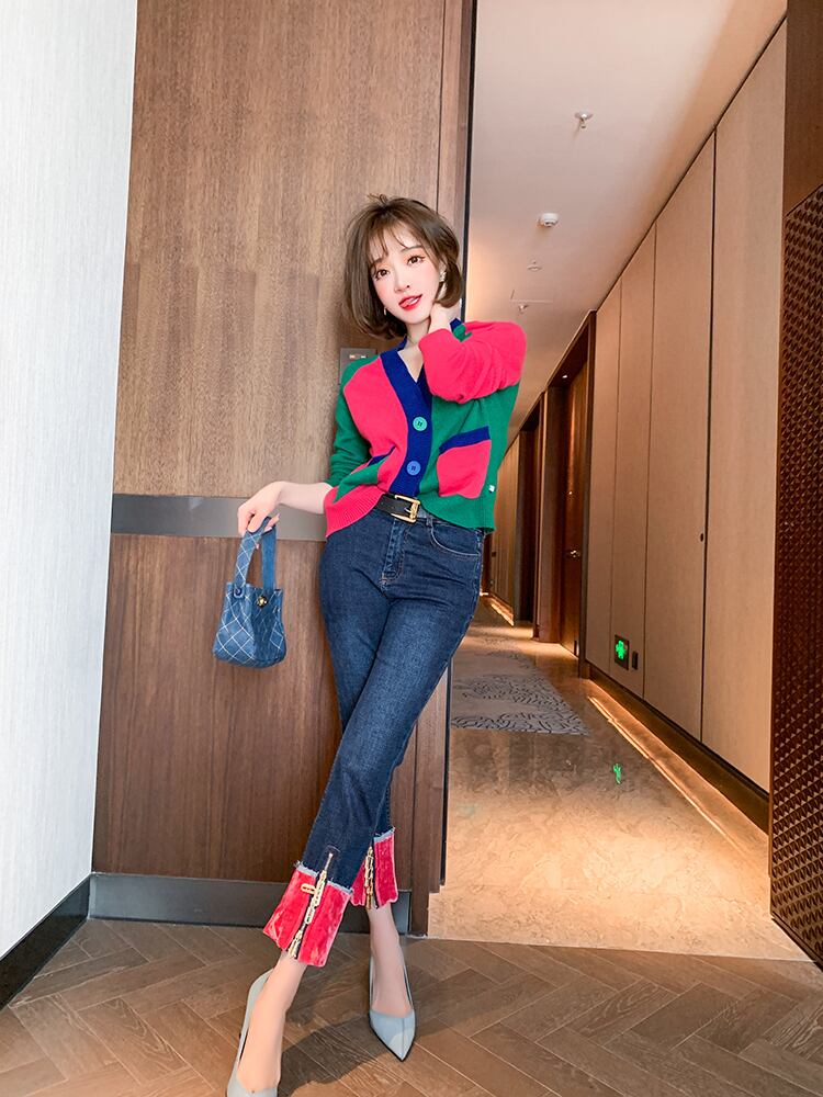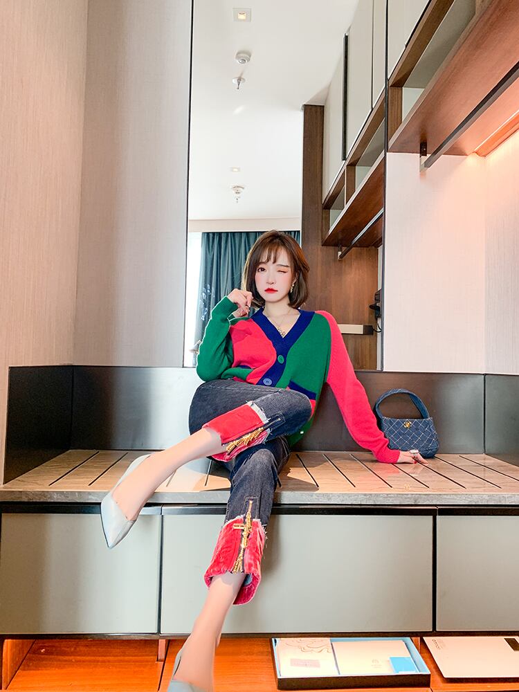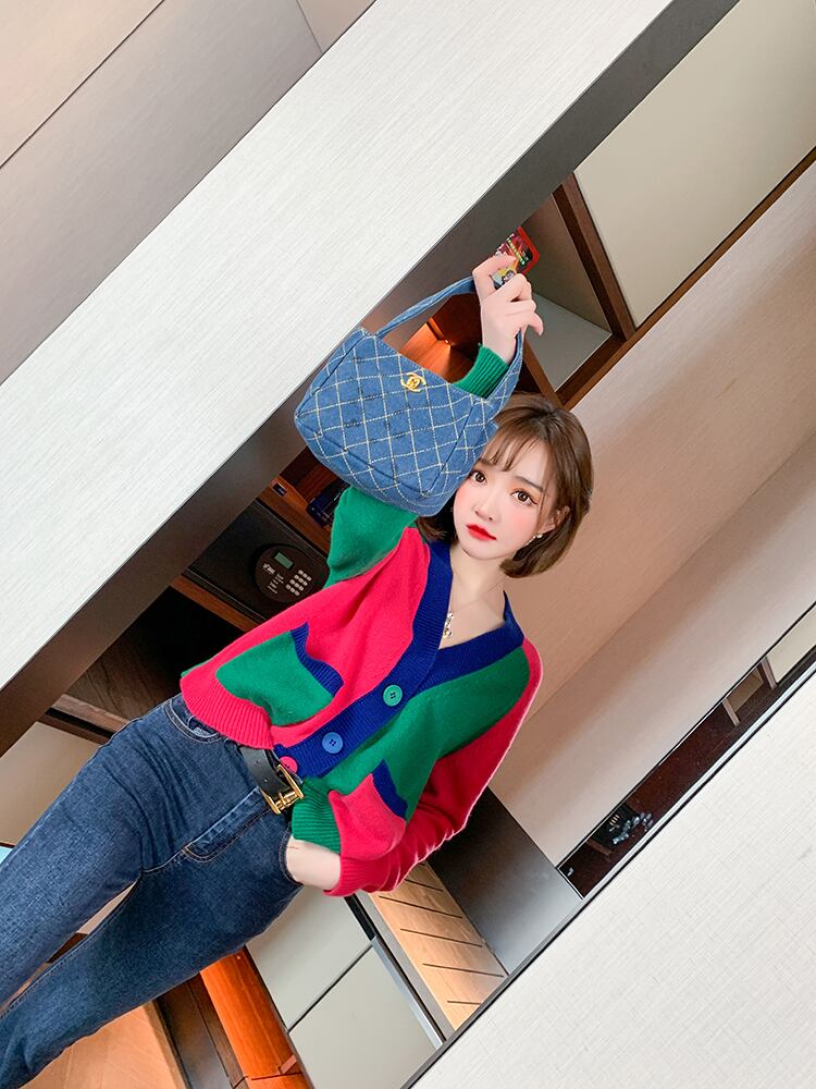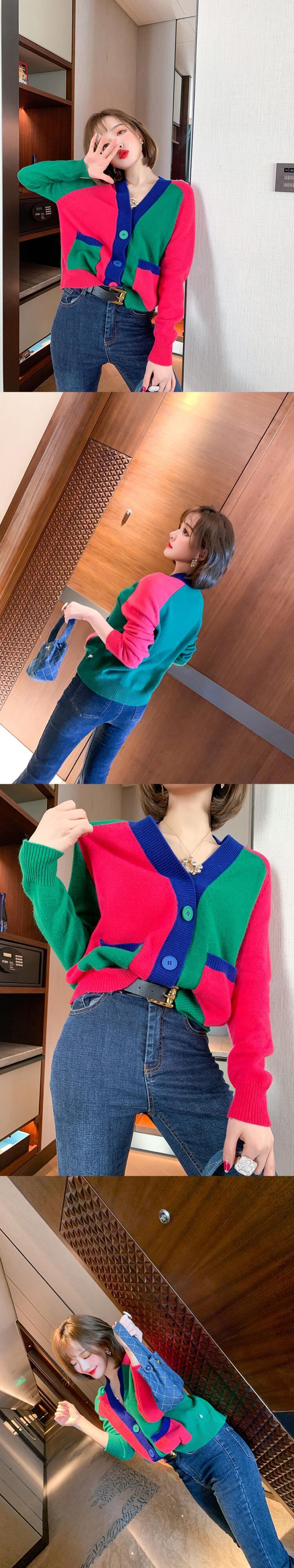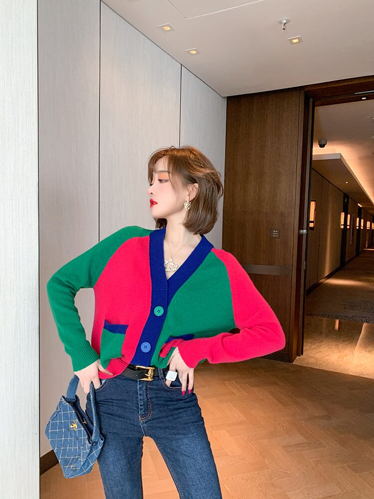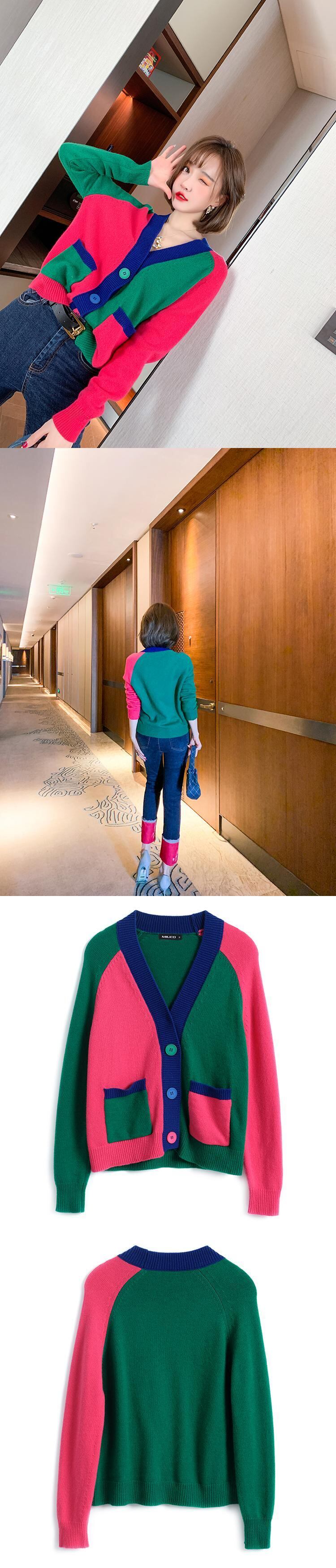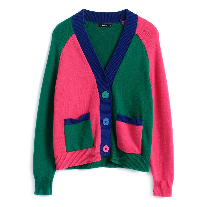 Vネックニットカーディガンスプリング 春物 ステッチ MIUCO5569251533