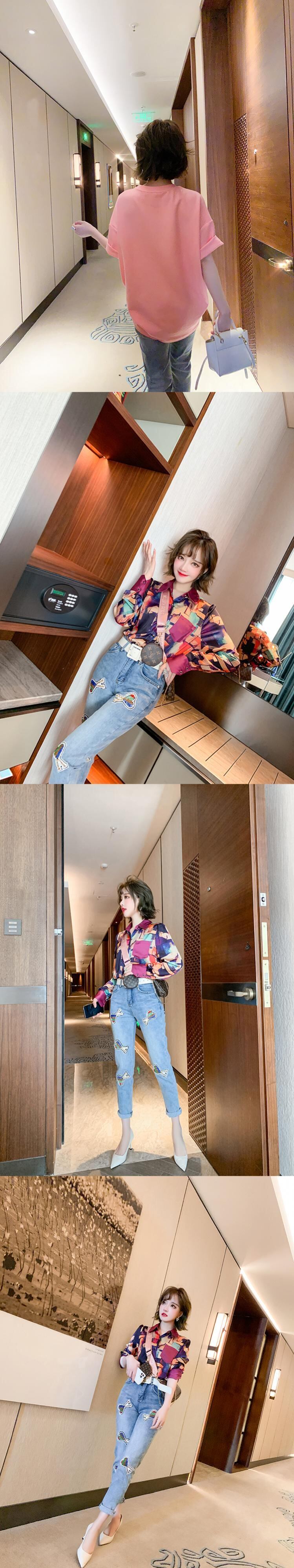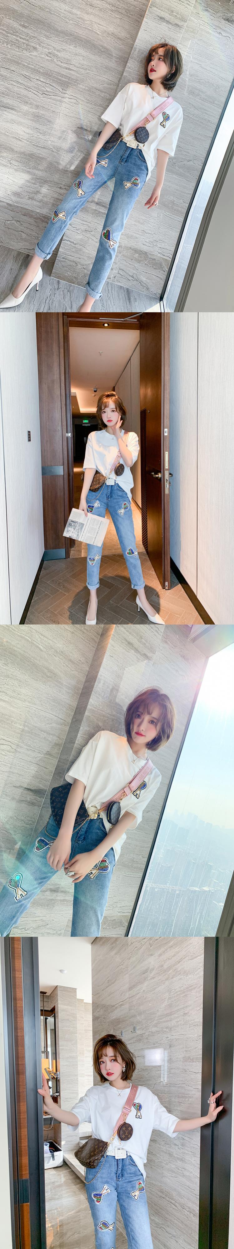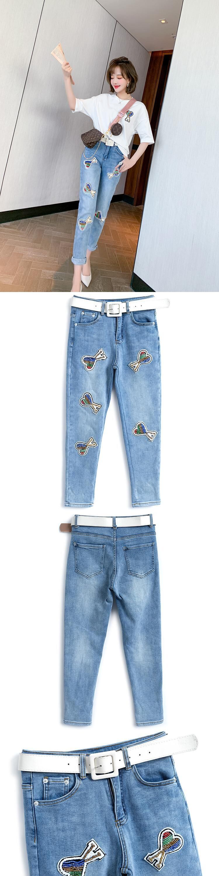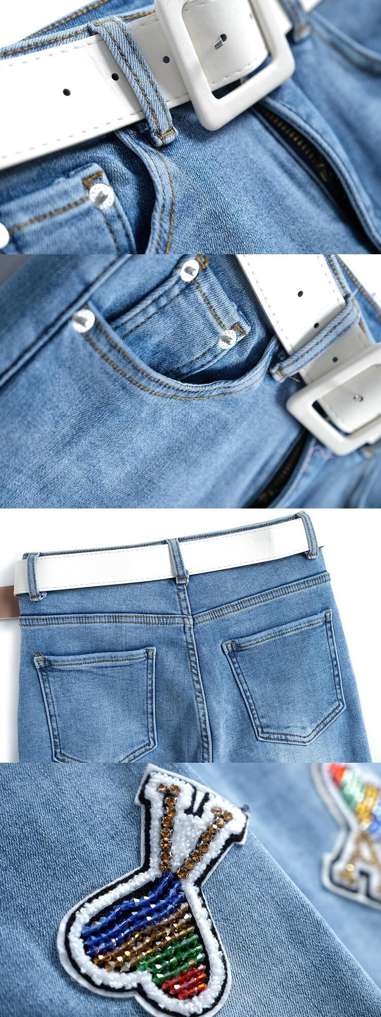カラーハイウェストウェストベルト スリムジーンズ スプリング 春物 ハーネス MIUCO78989296149