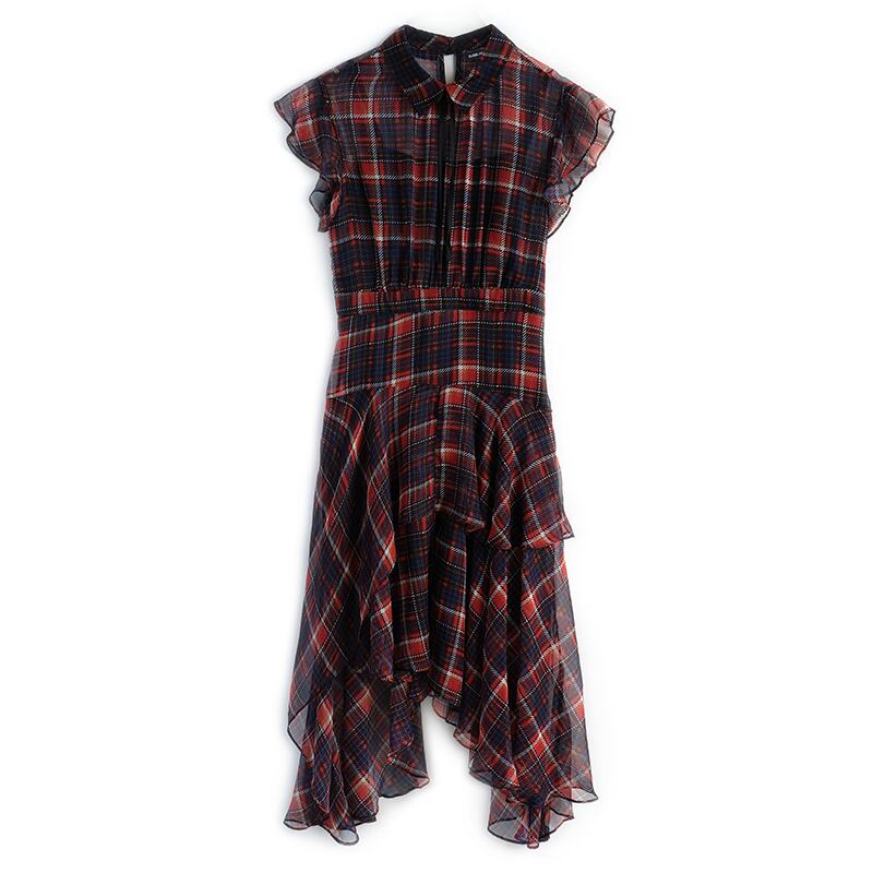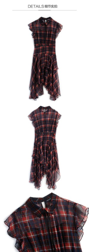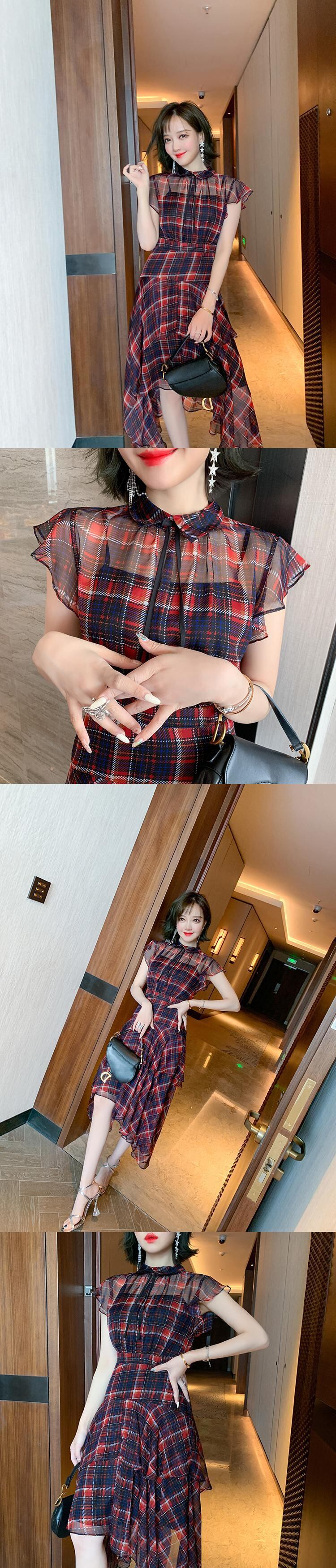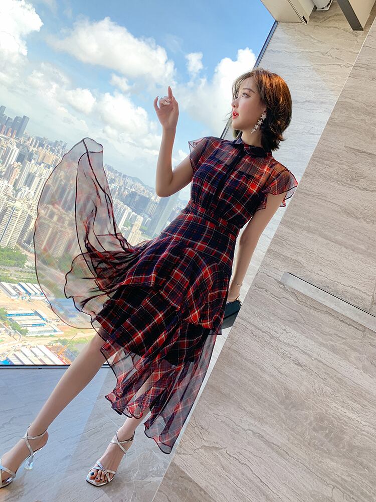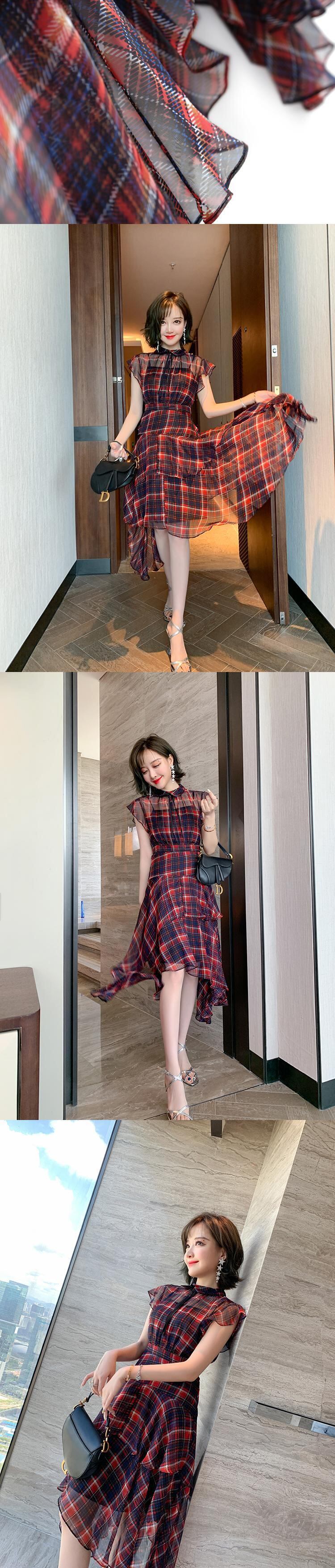 格子柄スリーブラッフルドレス サマー 夏物 MIUCO7163875950