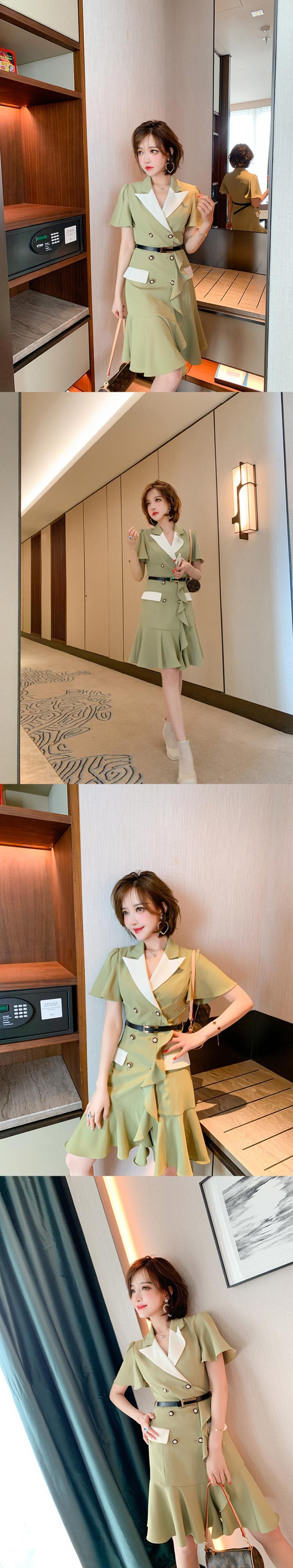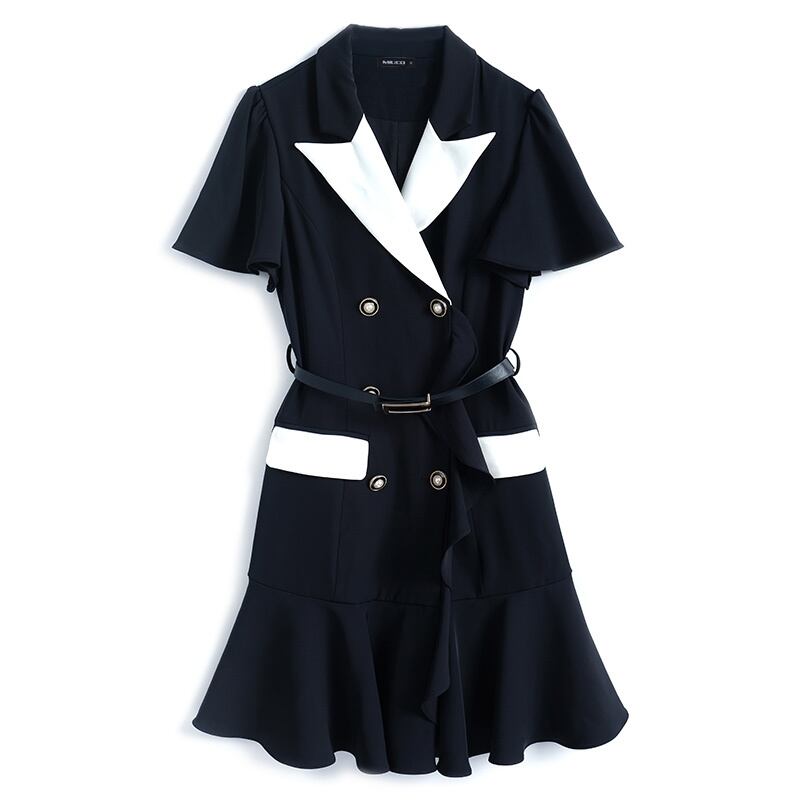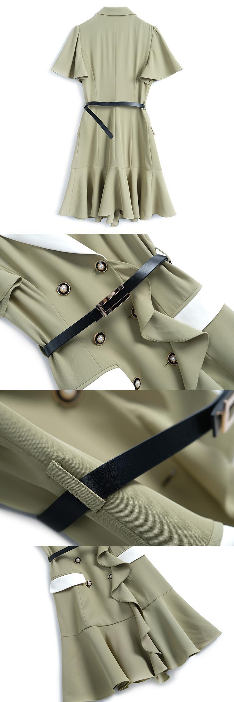 カラーダブルブレストレースウェストベルト ドレス スプリングスタイル 春物 ハーネス ステッチ MIUCO95150480932