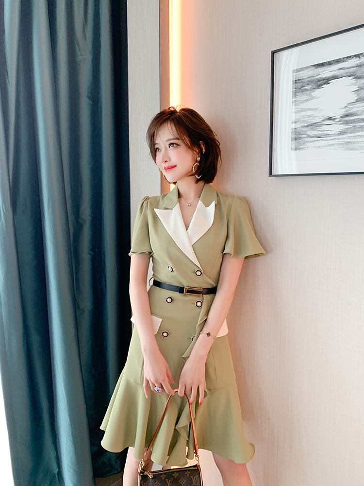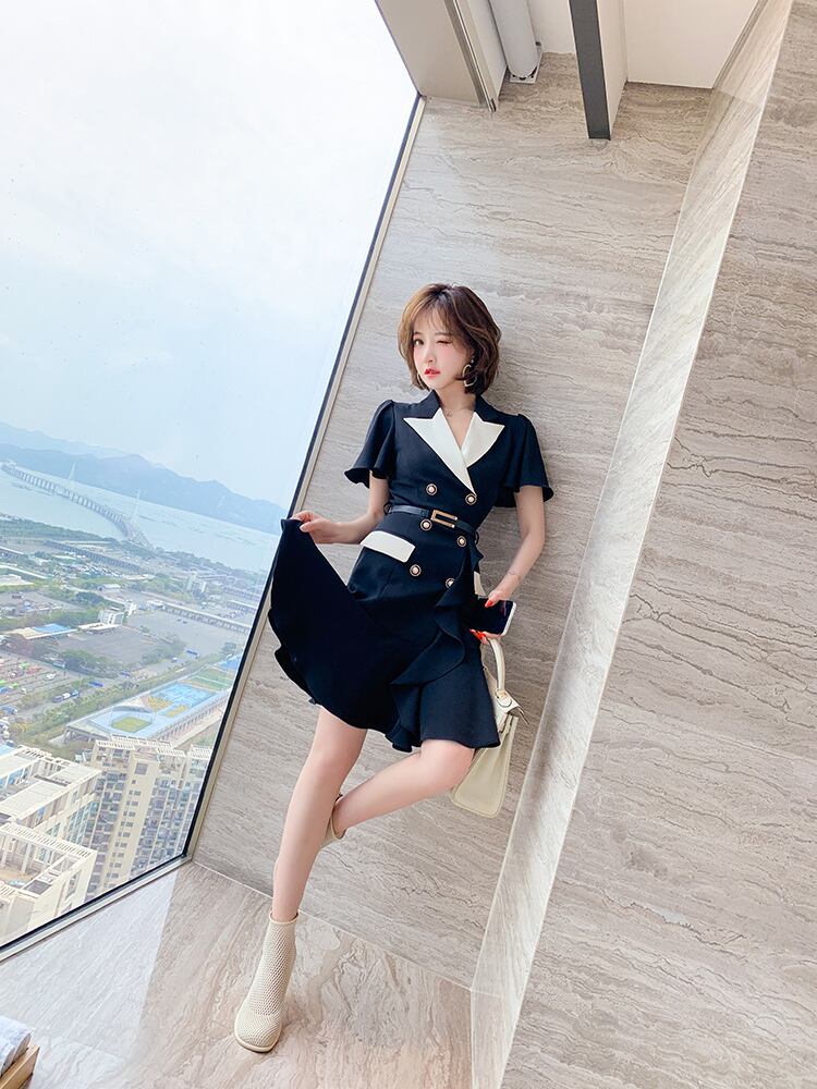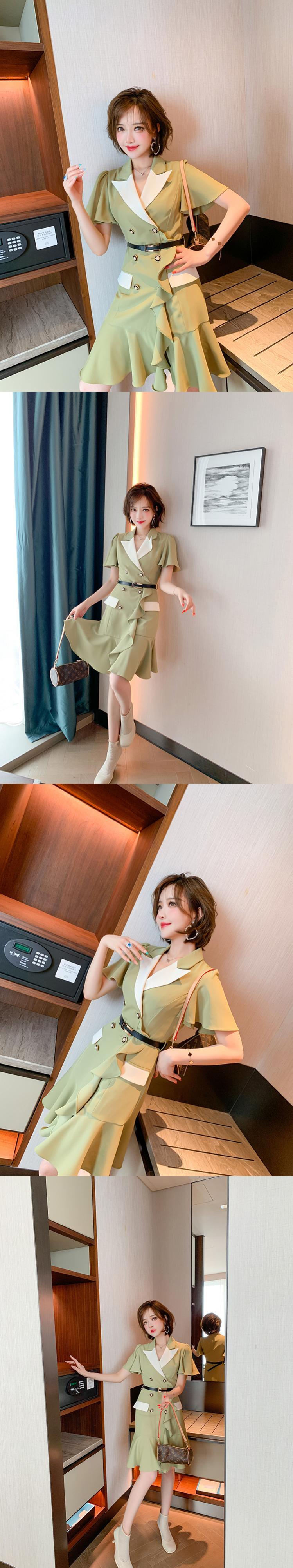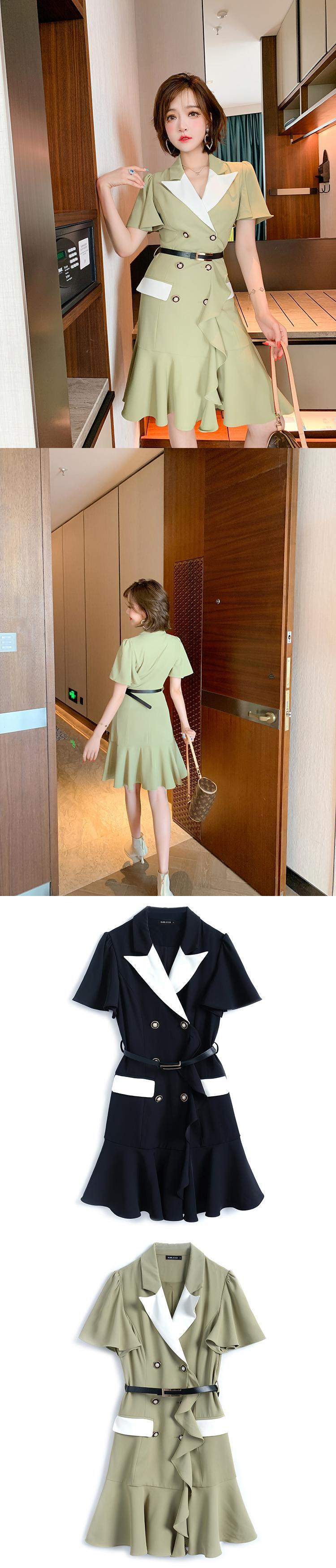カラーダブルブレストレースウェストベルト ドレス スプリングスタイル 春物 ハーネス ステッチ MIUCO95150480932