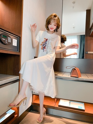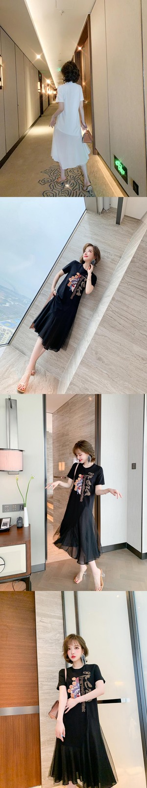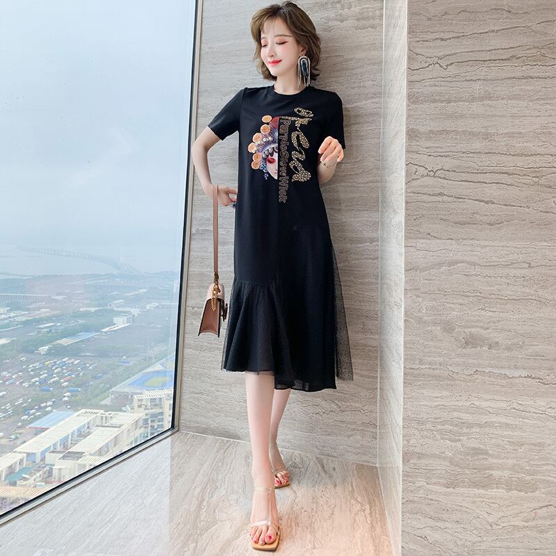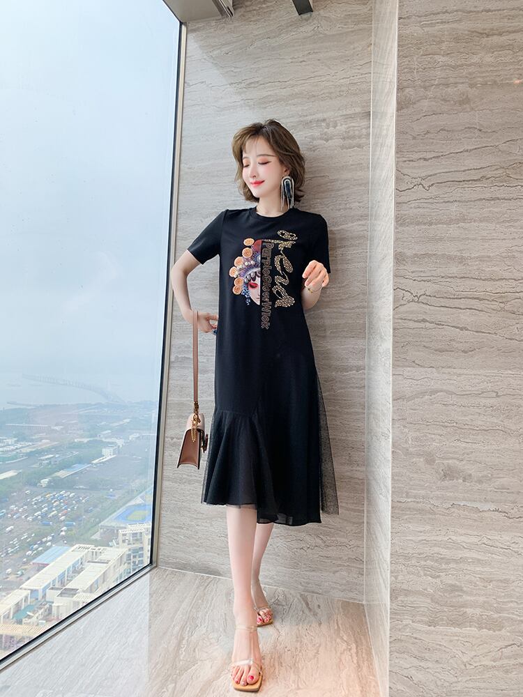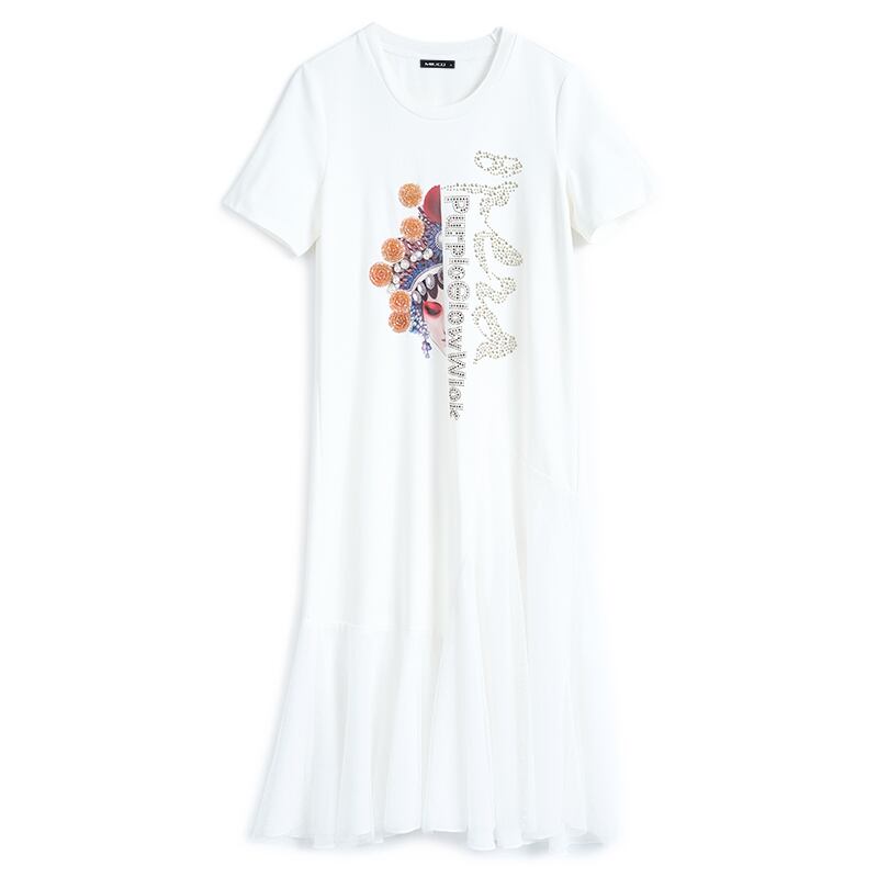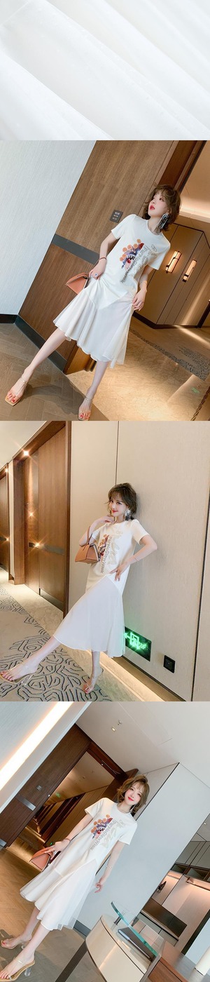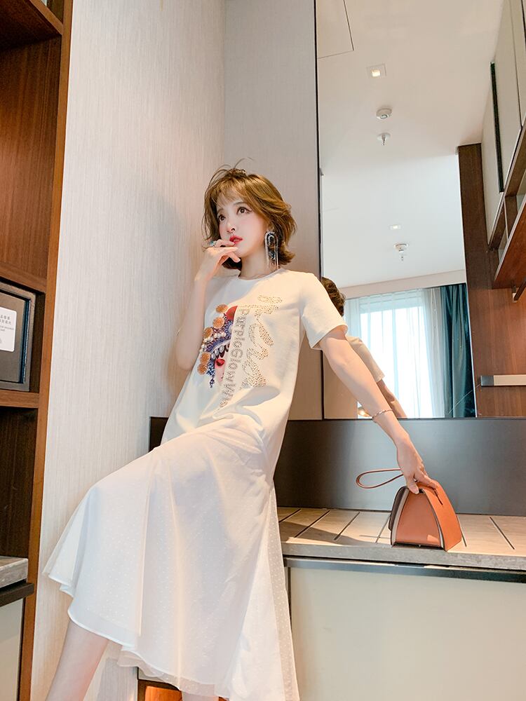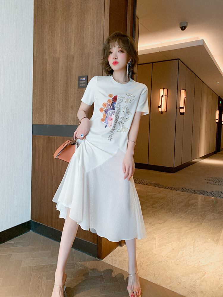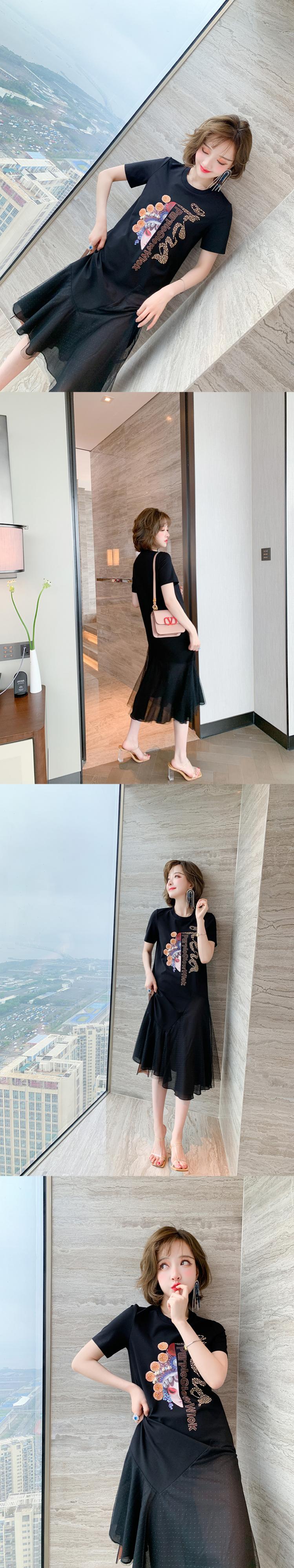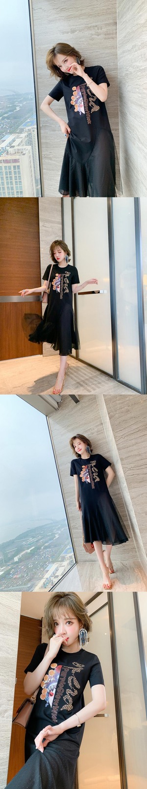 スタイルプリントメッシュスカート Tシャツ ドレス スプリングサマー 春物 夏物 ステッチ MIUCO56473962320