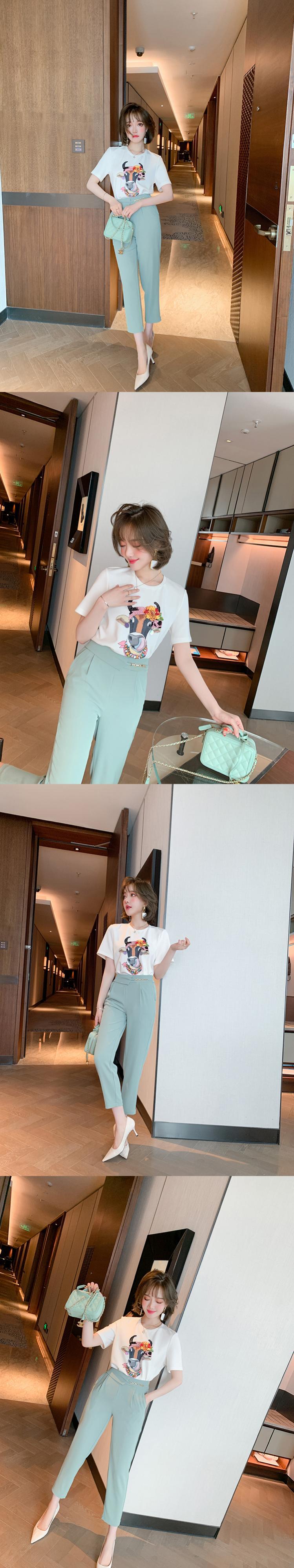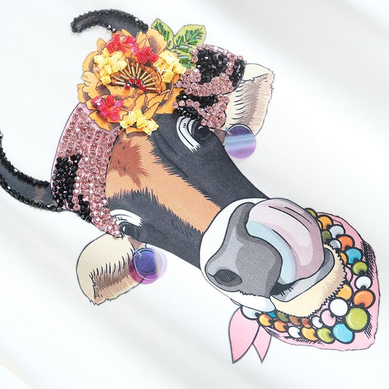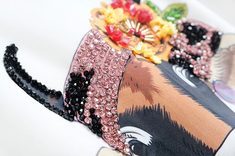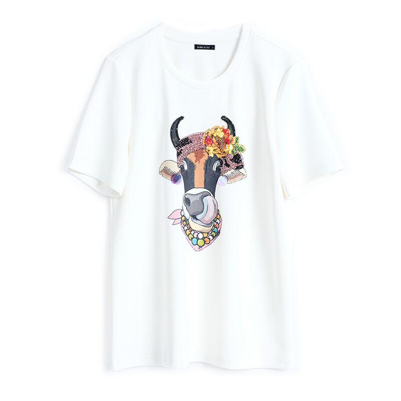 プリントラインストーンラウンドネックTシャツ スプリングサマー 春物 夏物 Oネック MIUCO99219366716