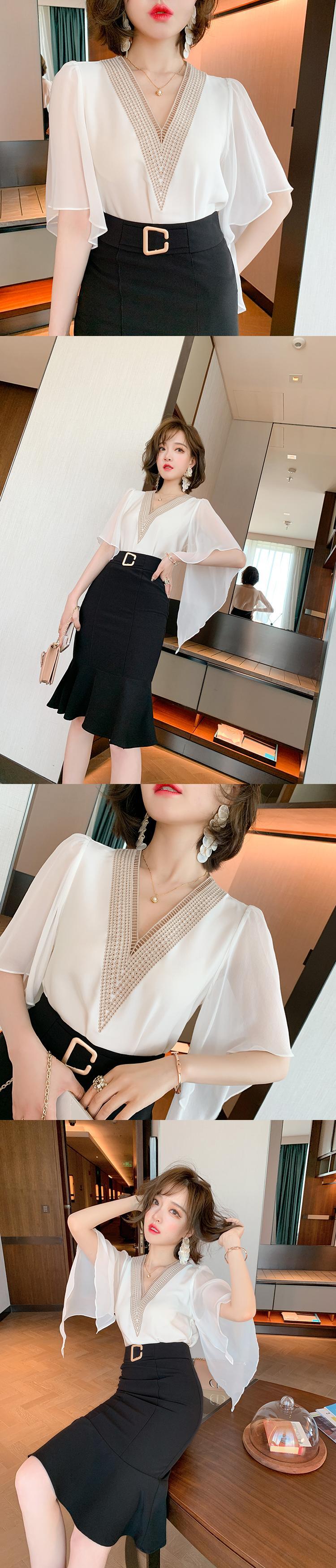 パターンVネックスリーブシャツ スプリングサマー 春物 夏物 MIUCO68902608368
