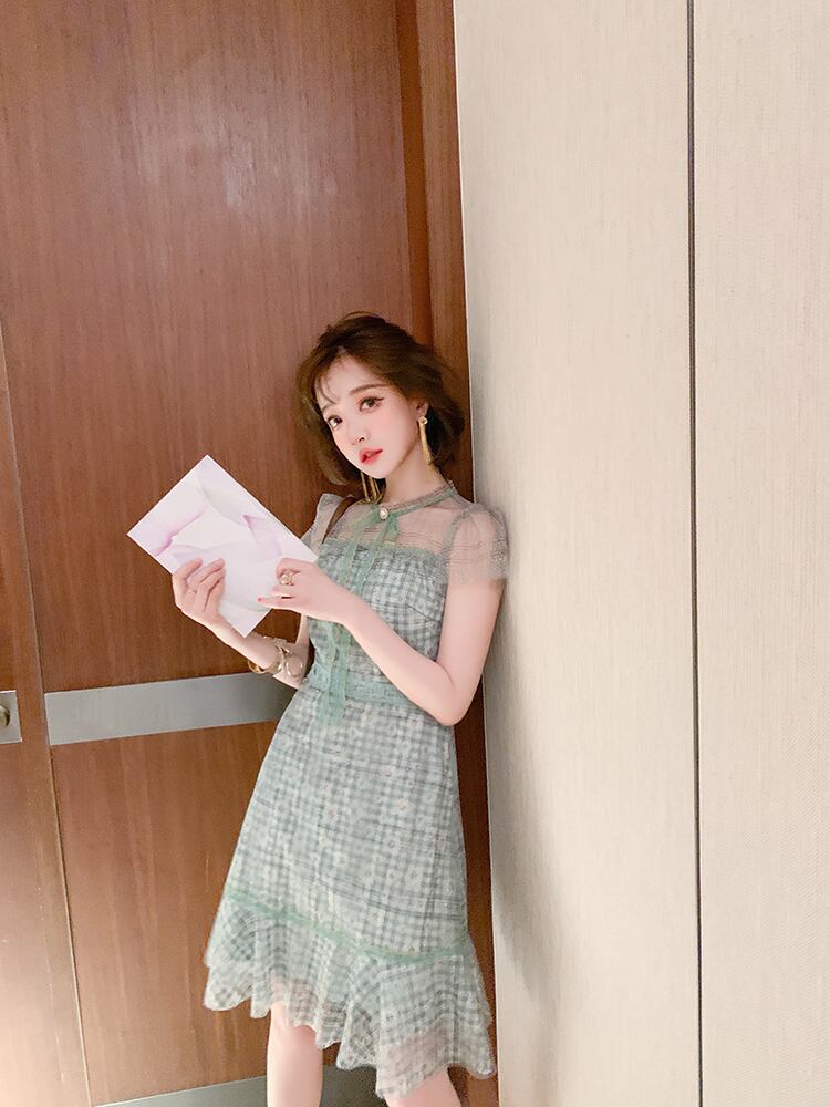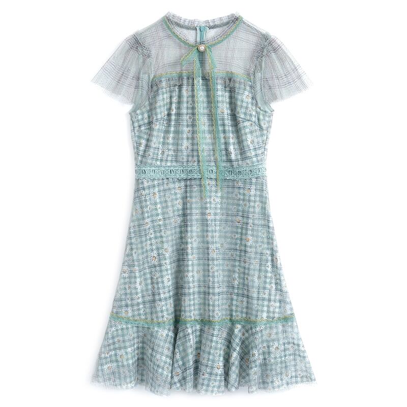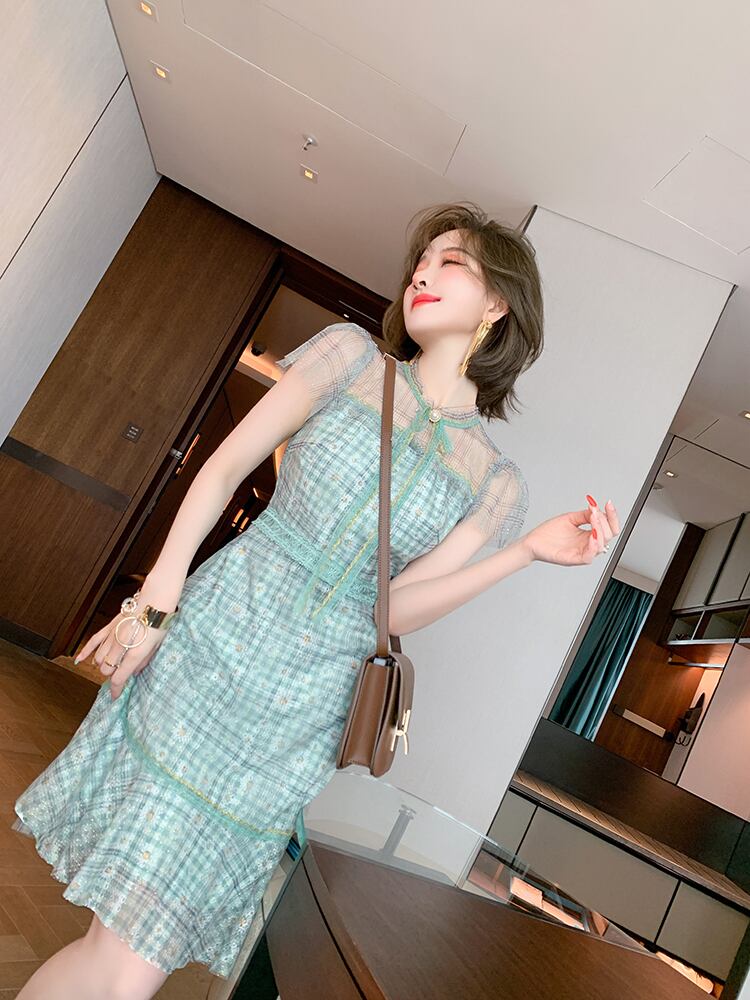 プリントメッシュウェストドレス スプリングサマー 春物 夏物 MIUCO24080218217
