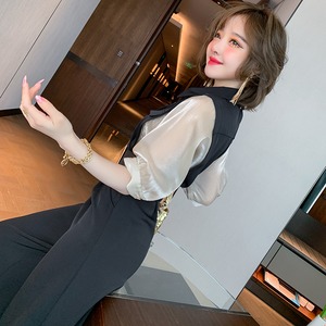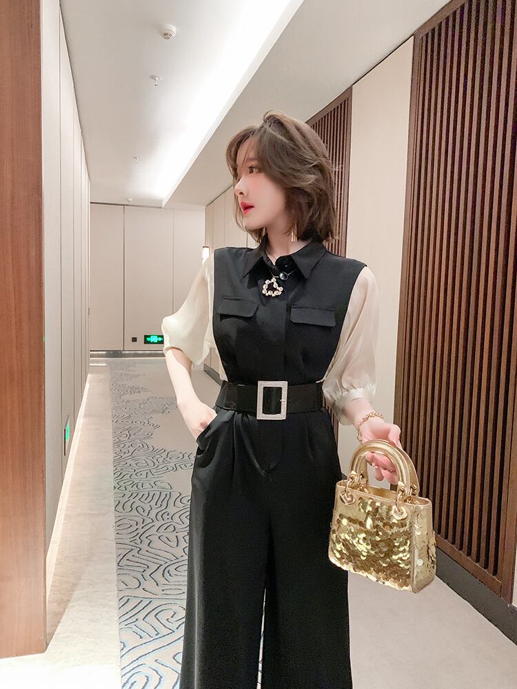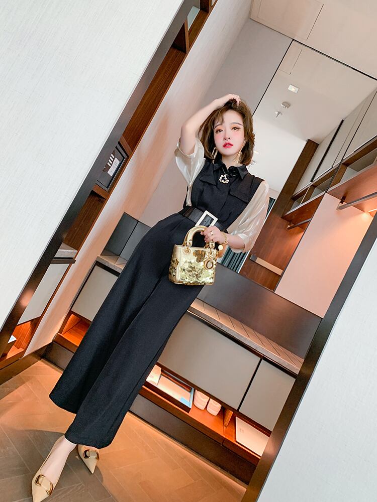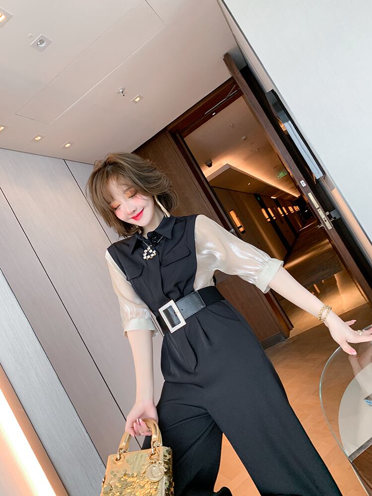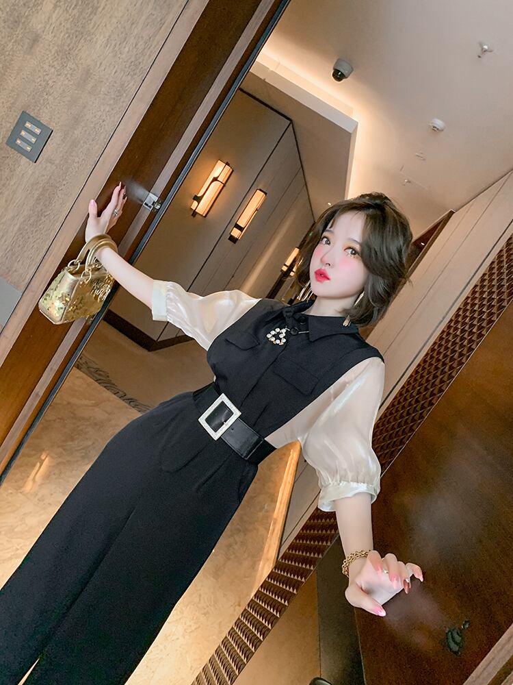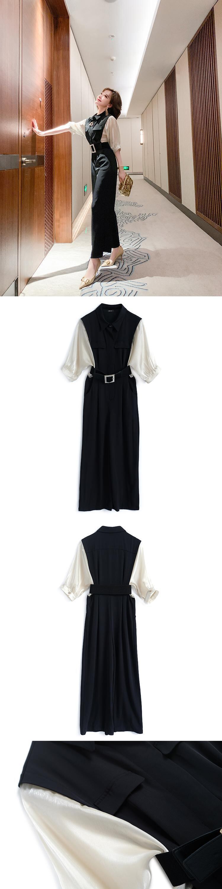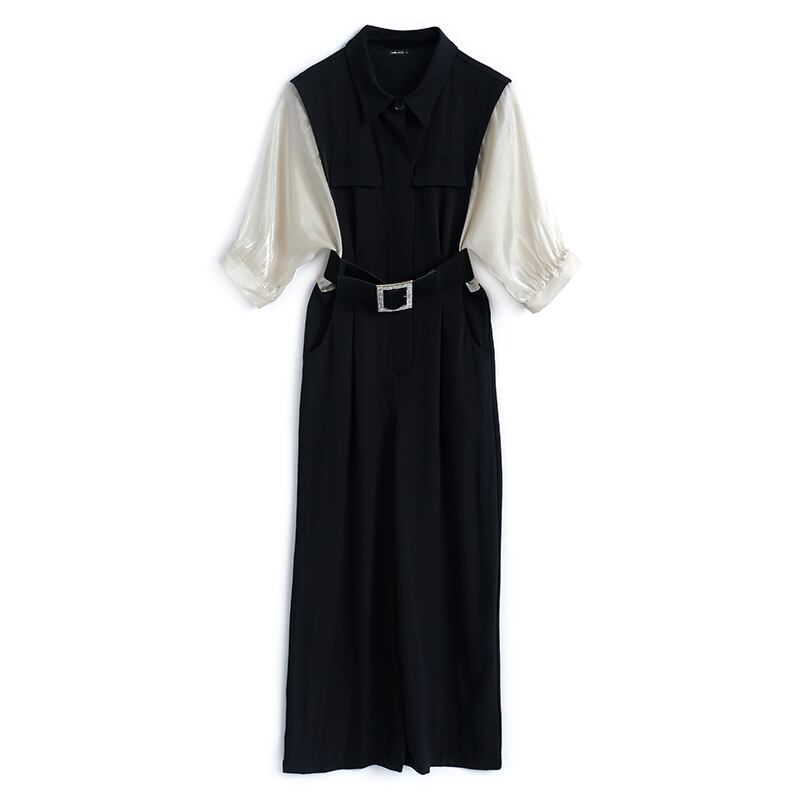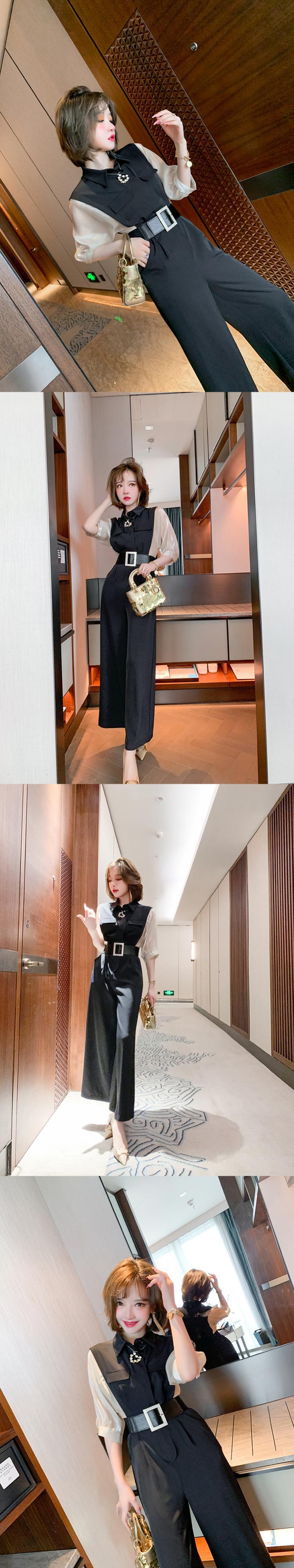 ハイウェストウェストベルト ジャンプスーツ オールインワン スプリングサマー ランタンスリーブ 春物 夏物 ハーネス ステッチ MIUCO69366089141
