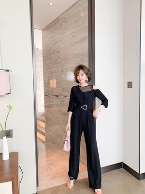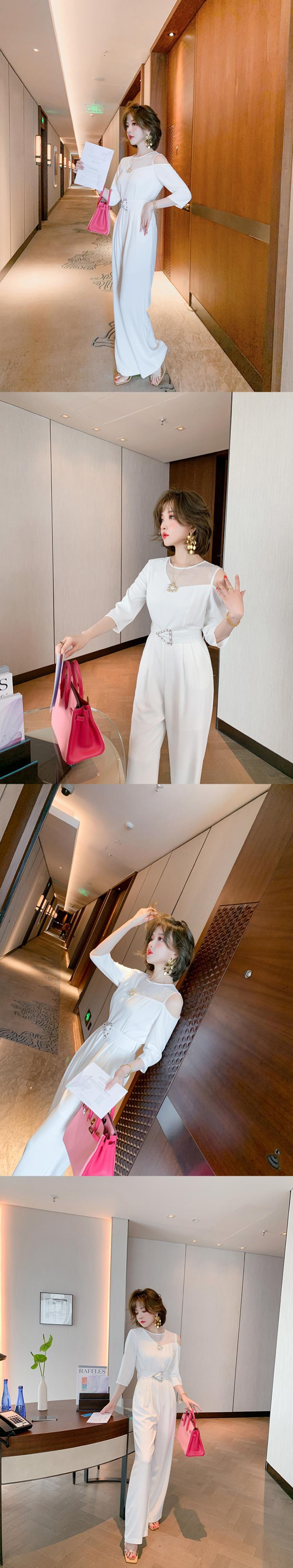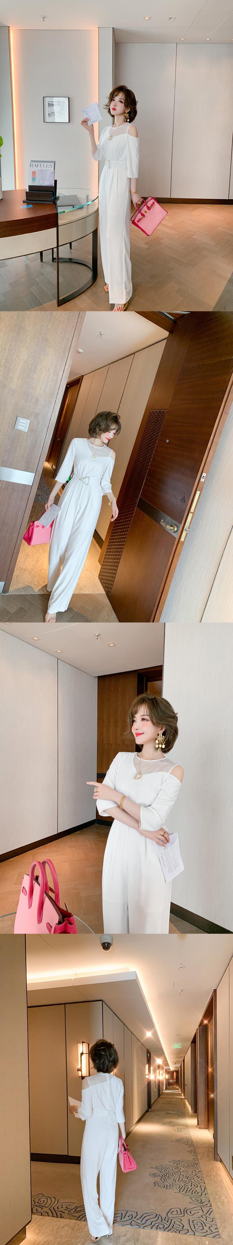メッシュストラップレスルーズジャンプスーツ オールインワン スプリングサマー 春物 夏物 ステッチ MIUCO39834412209