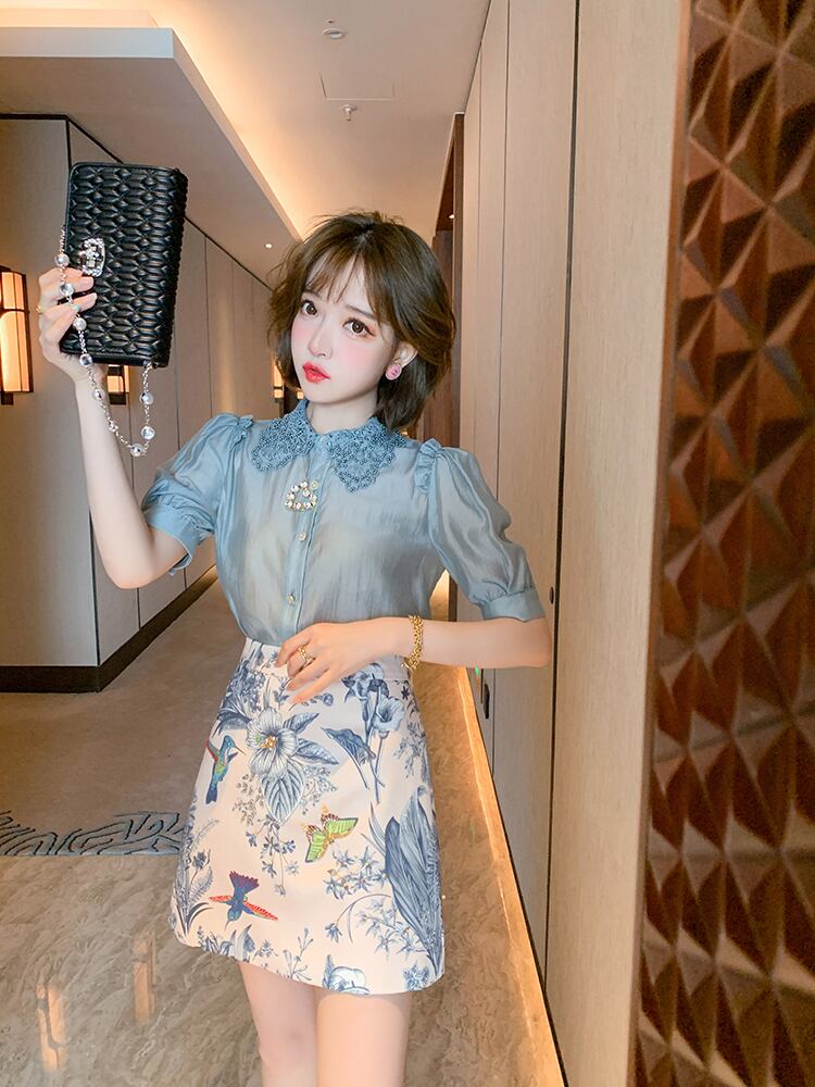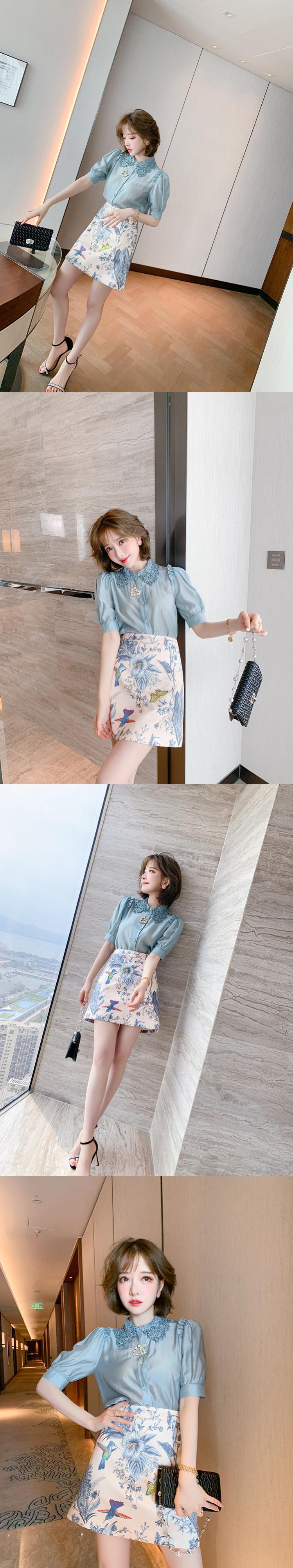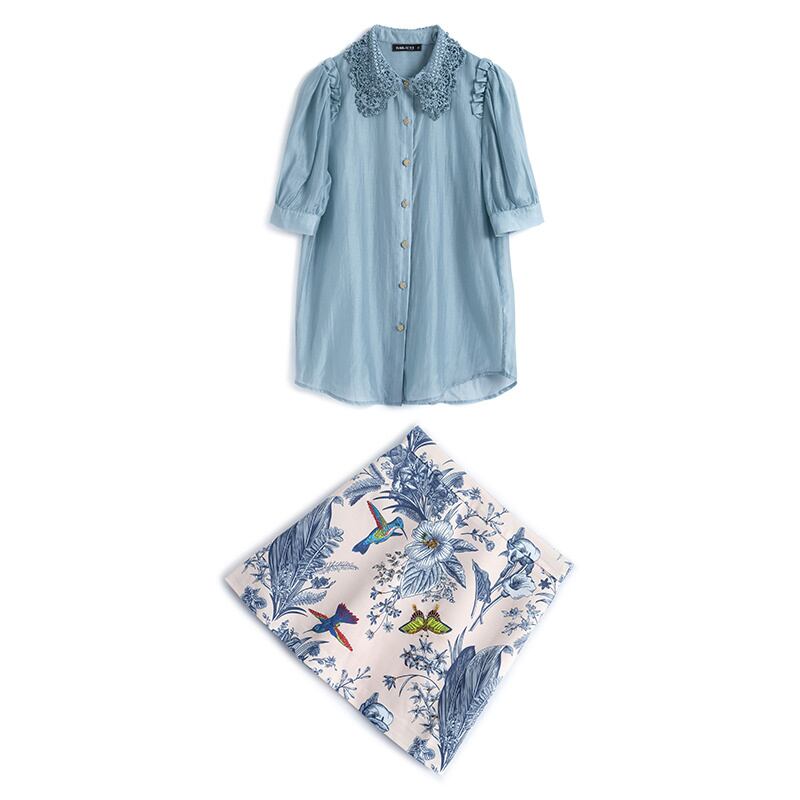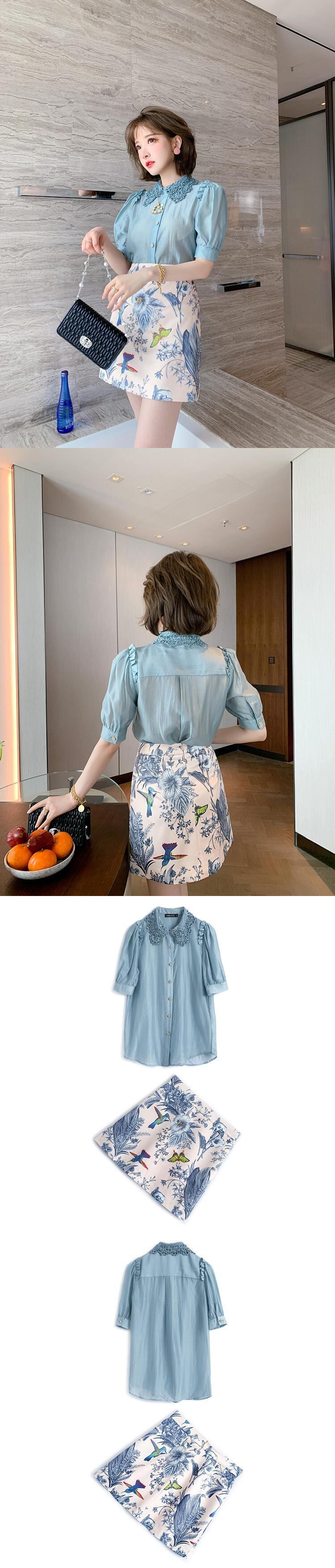 カラーシャツ プリントウェストスカート レッド 刺繍 スプリング 春物 サマー 夏物 MIUCO14061550674