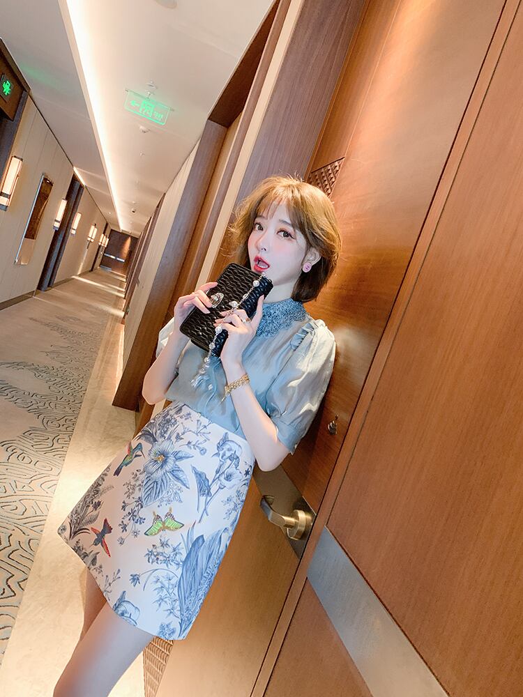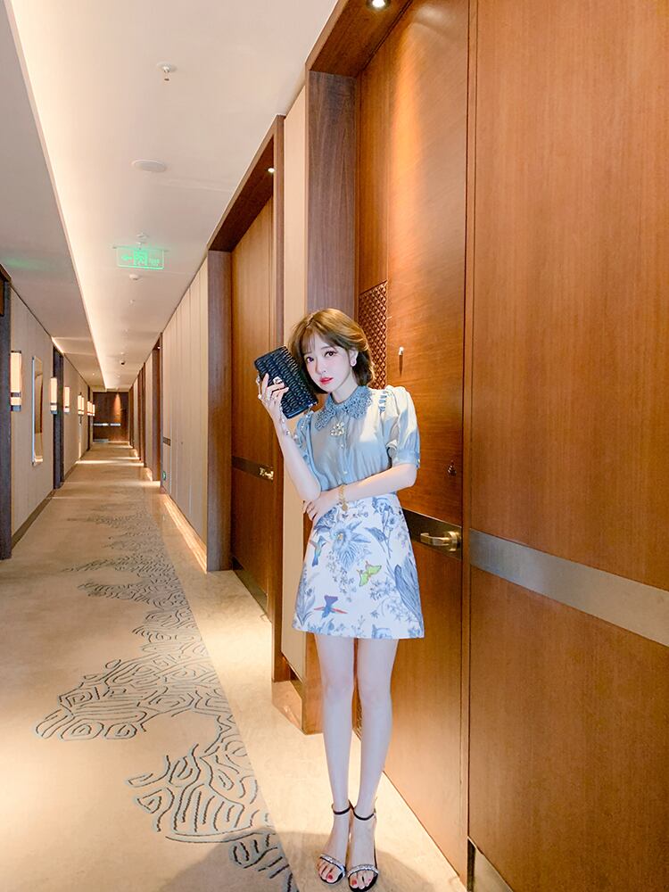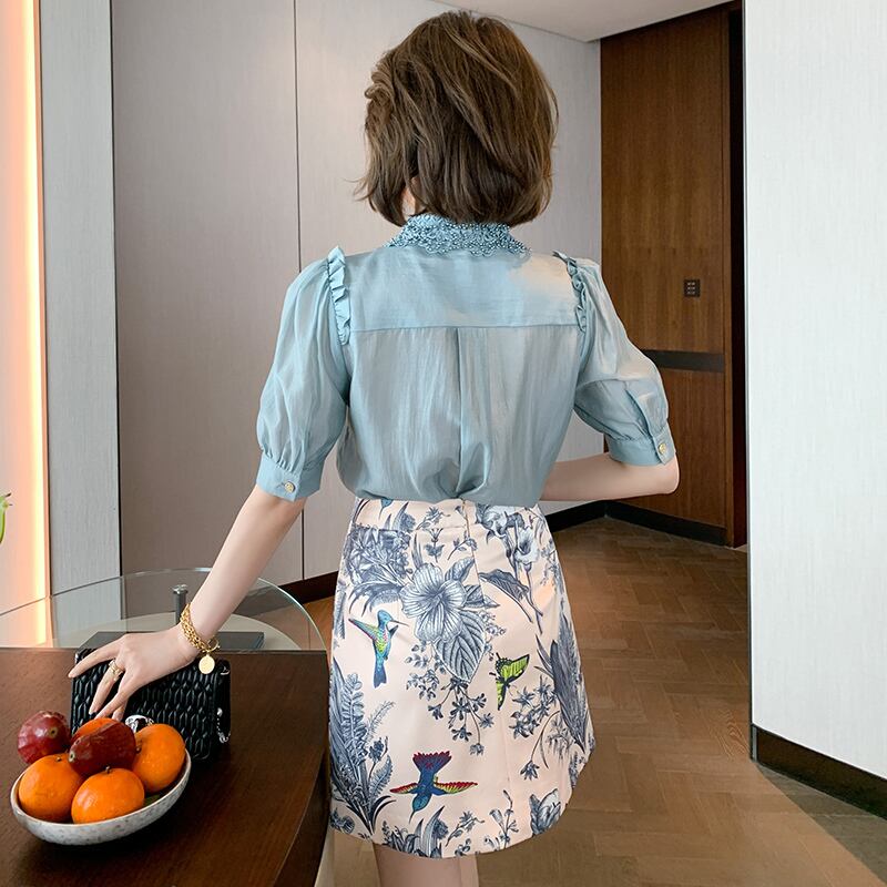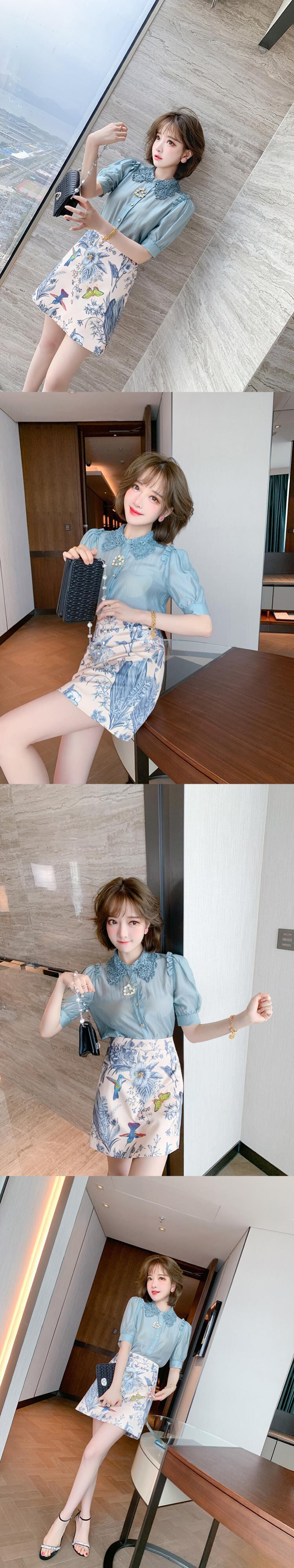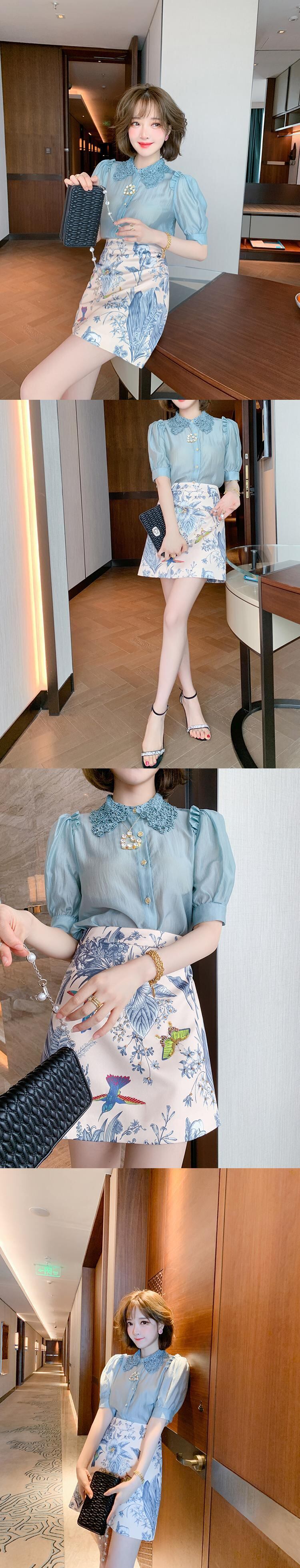 カラーシャツ プリントウェストスカート レッド 刺繍 スプリング 春物 サマー 夏物 MIUCO14061550674