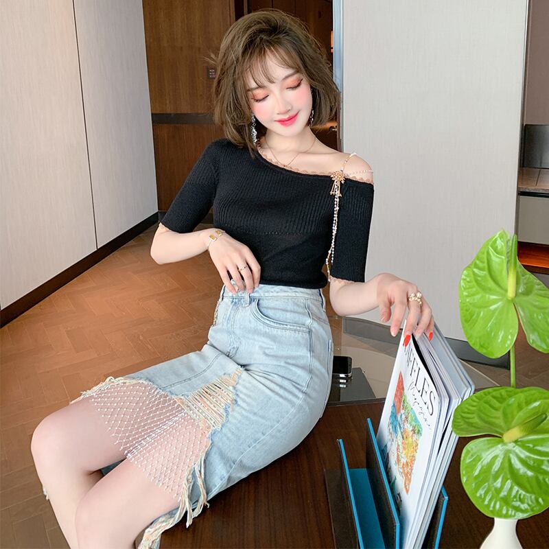 チェーン レースニットトップス スプリングサマー 春物 夏物 MIUCO90352567600