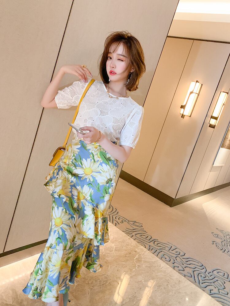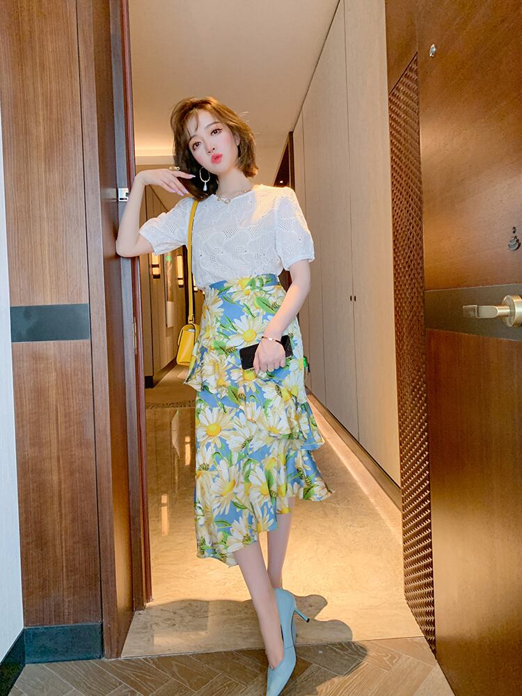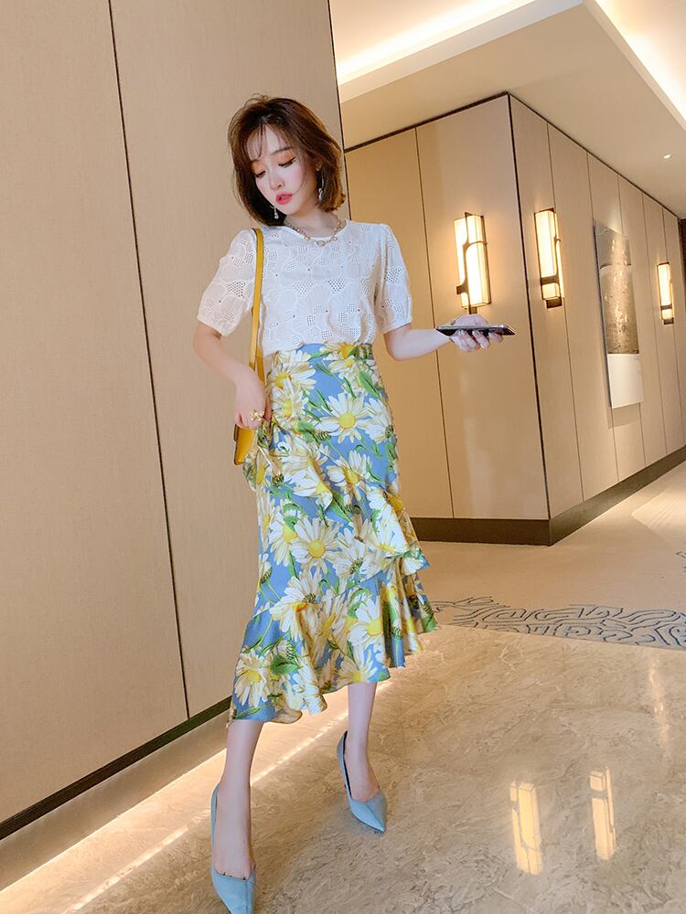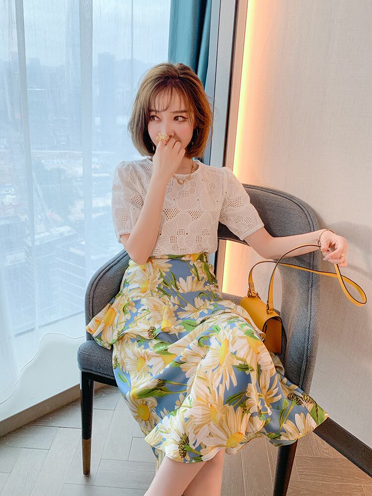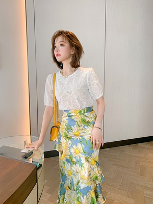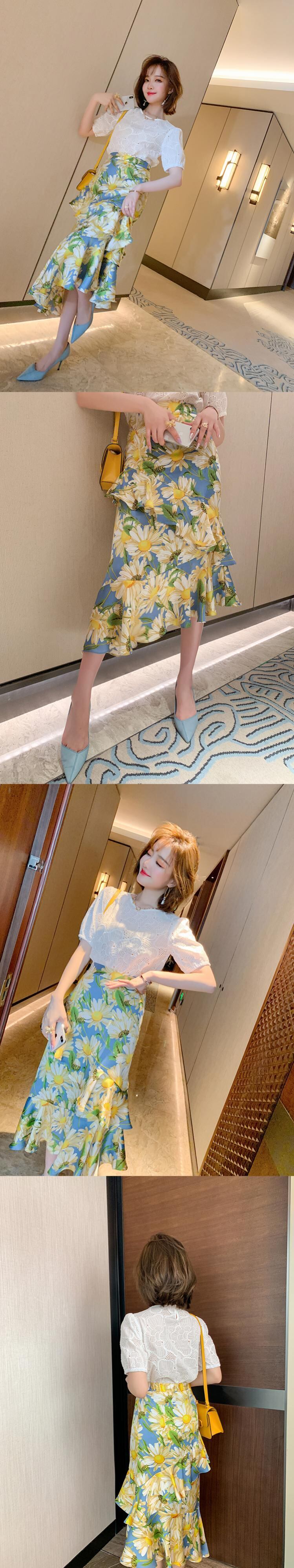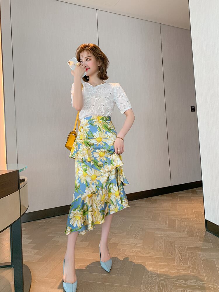 プリント柄ハイウェストウェストスリムレーススカート スタイル MIUCO8832956091