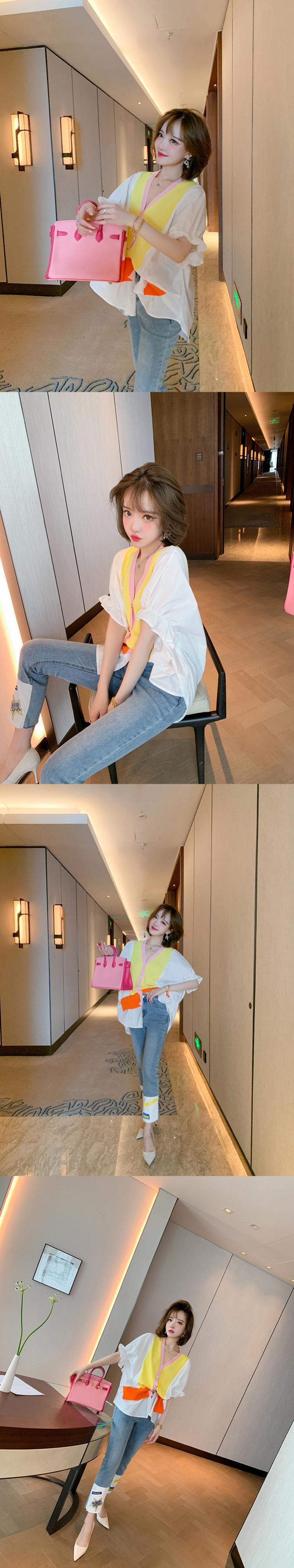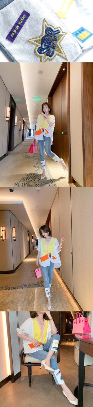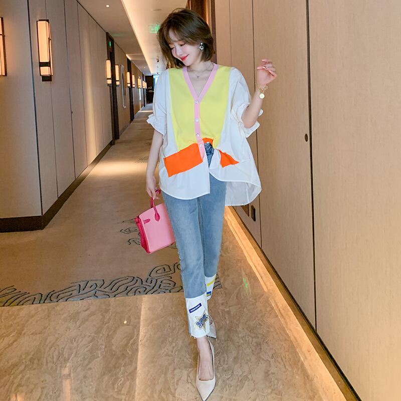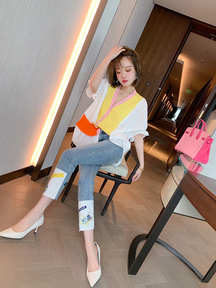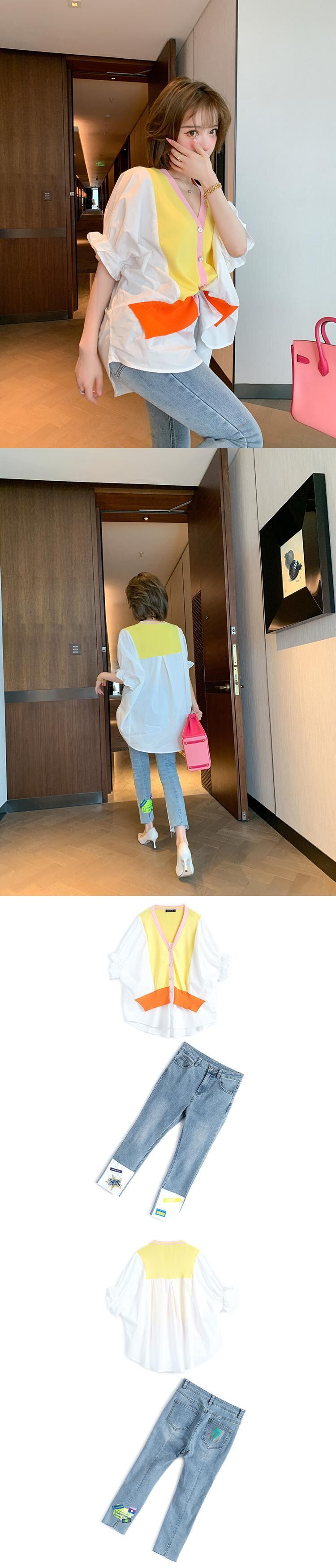 ニットシャツ ルーズカーディガン薄手パンツ ジーンズ スプリングサマー 春物 夏物 ステッチ MIUCO58096180494