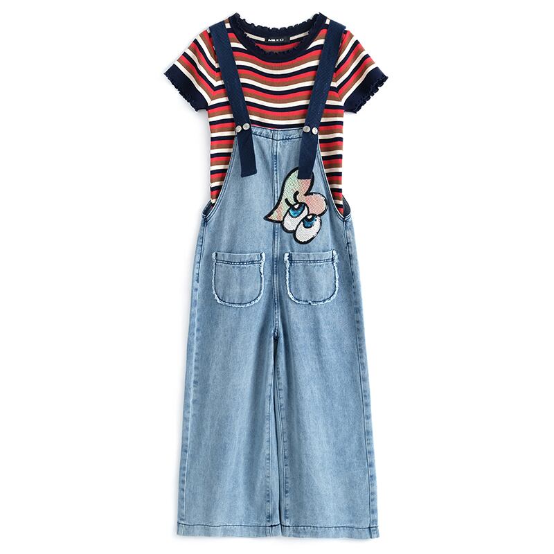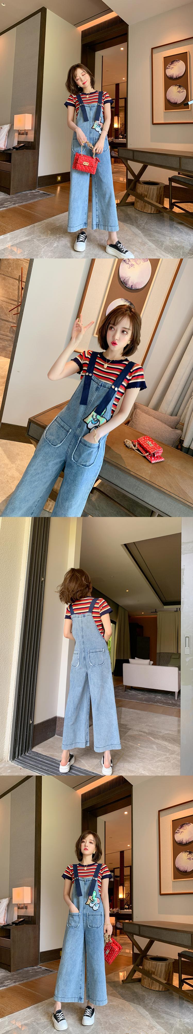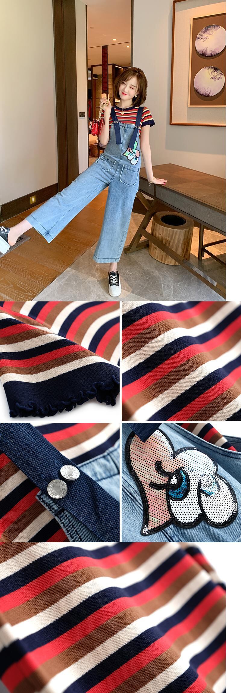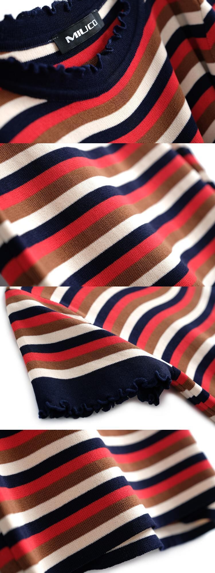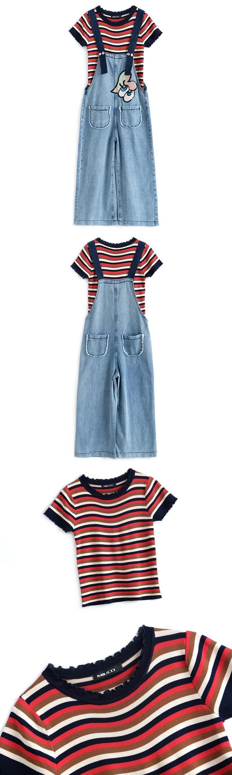 ストライプTシャツ ルーズワイドレッグパンツ セット スプリング 春物 ワイドパンツ MIUCO17391375071