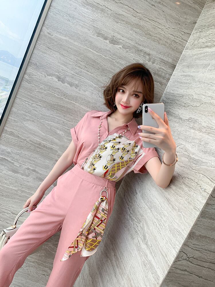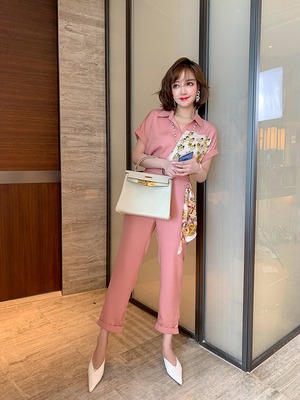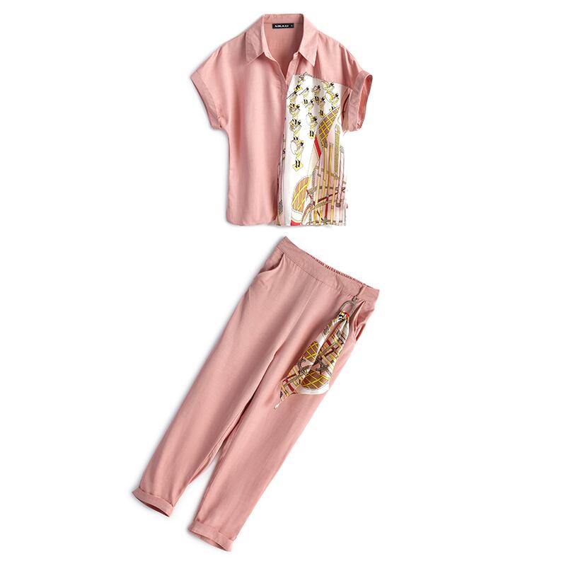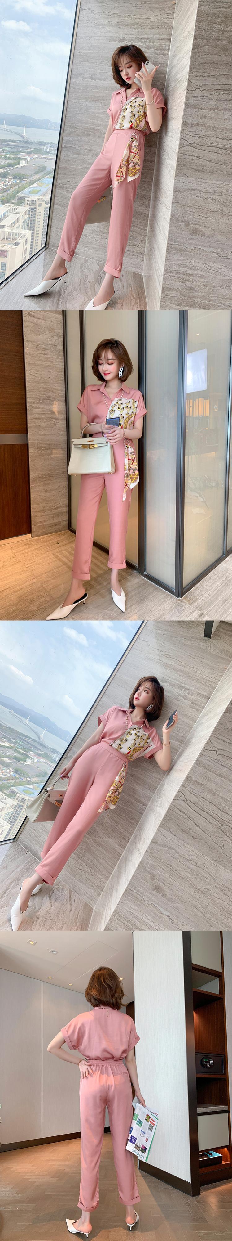 プリントシャツ スカーフ パンツ サマー 夏物 シルク ステッチ MIUCO60516933485