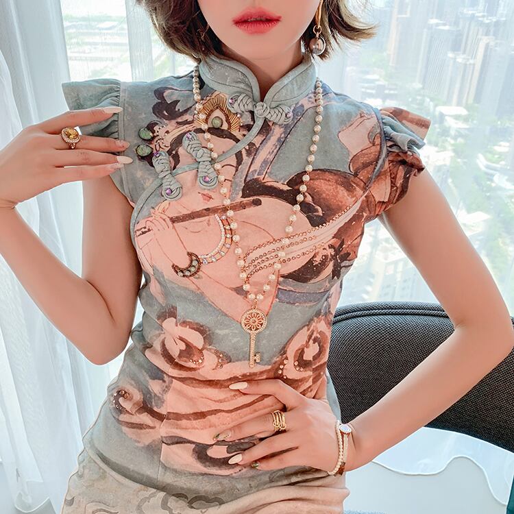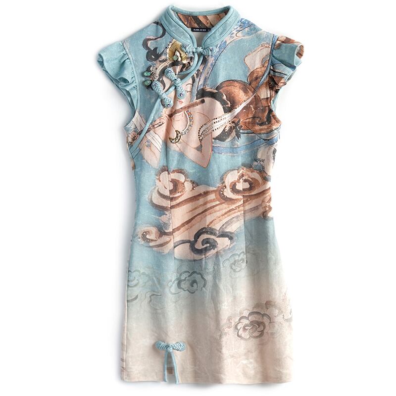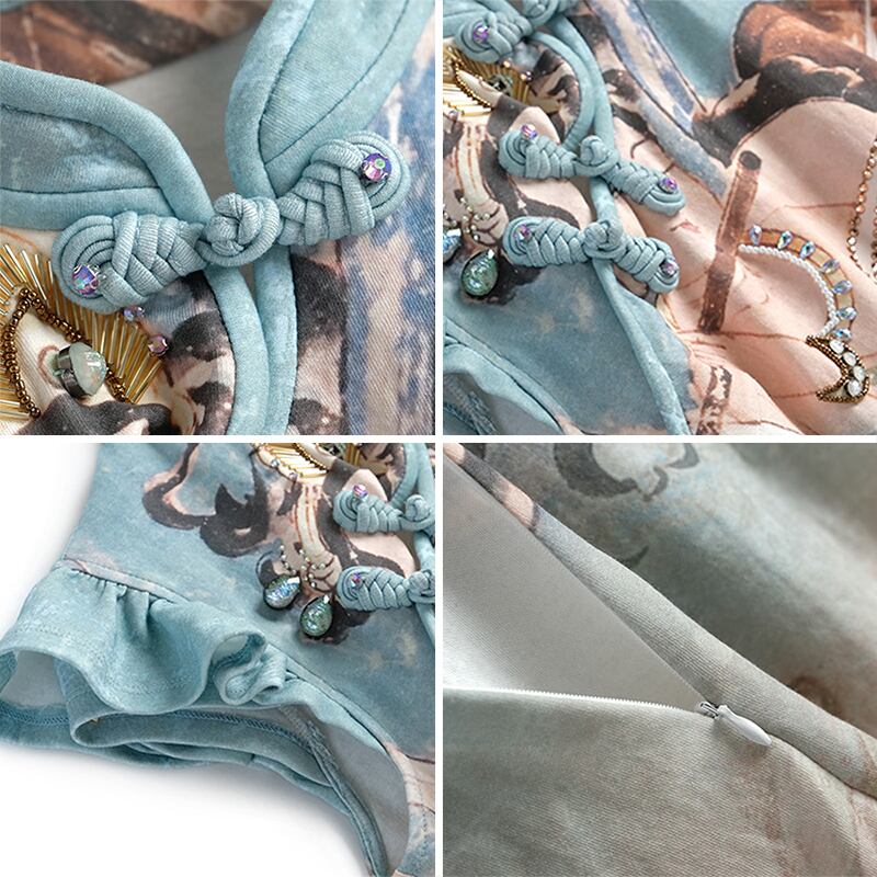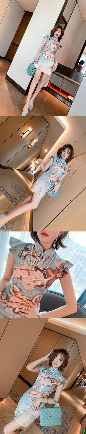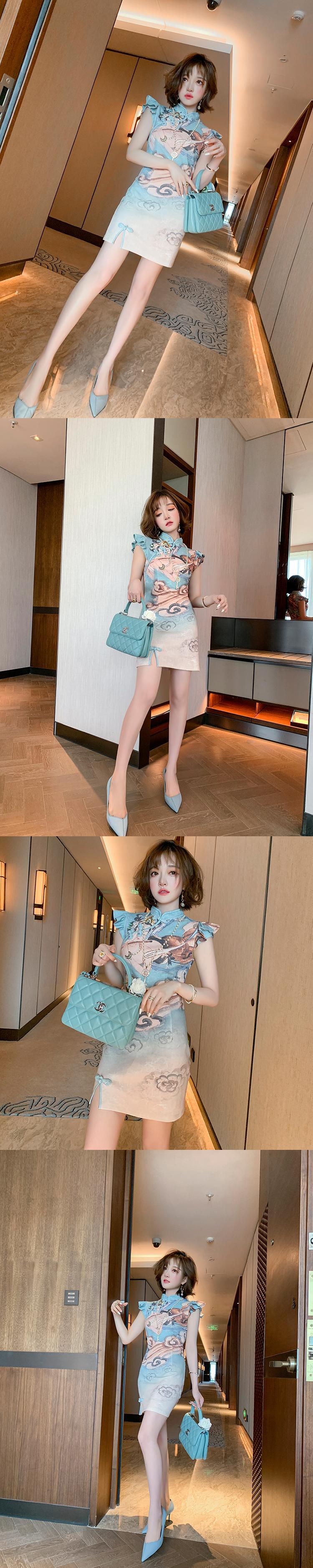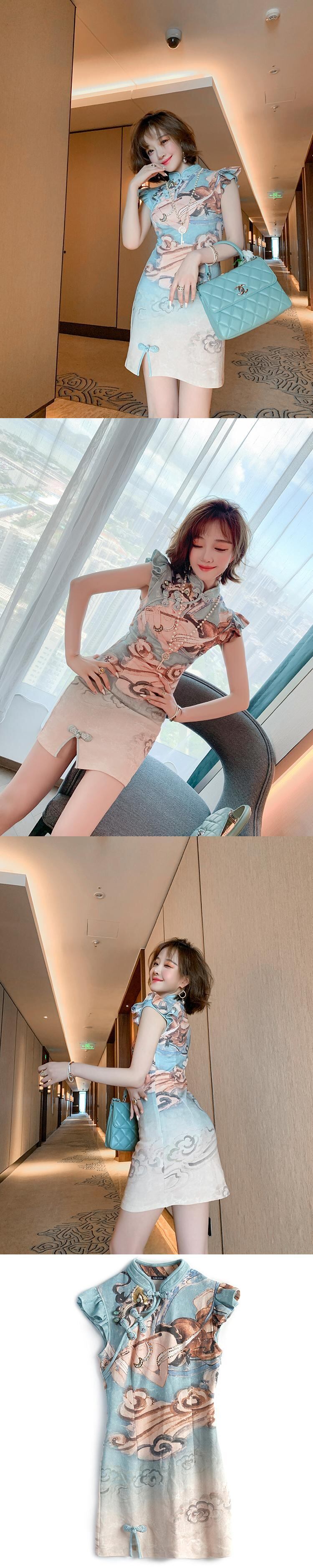 カラーボタンプリントウェストドレス エレガント MIUCO57617935225