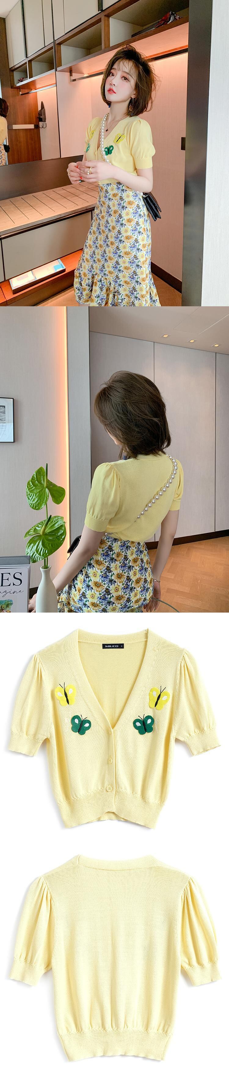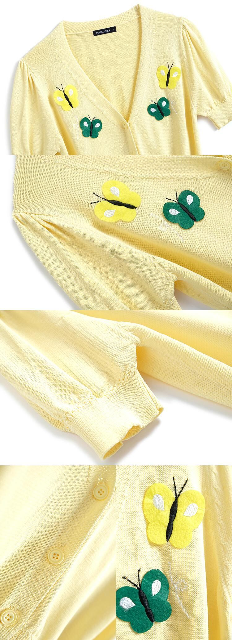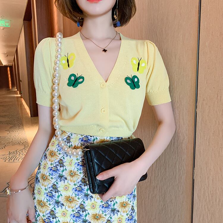 VネックButterflyデザイン 刺繍ニットトップス スプリングサマー 大人ガーリー スウィート キュート カジュアル 春物 夏物 MIUCO22834295798