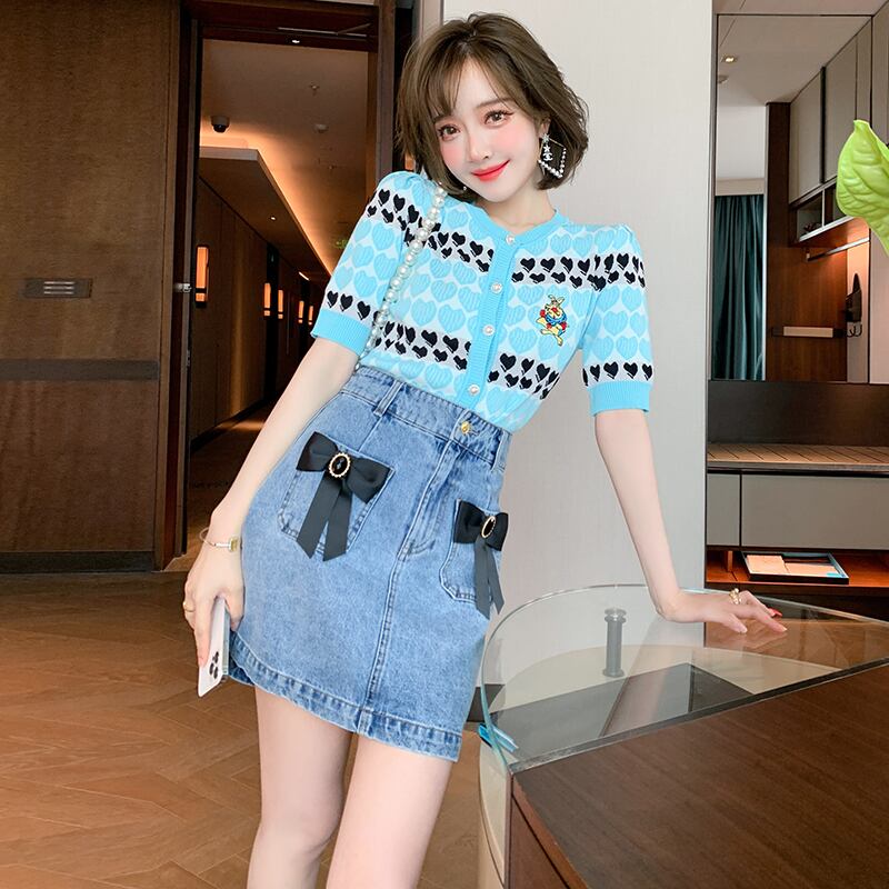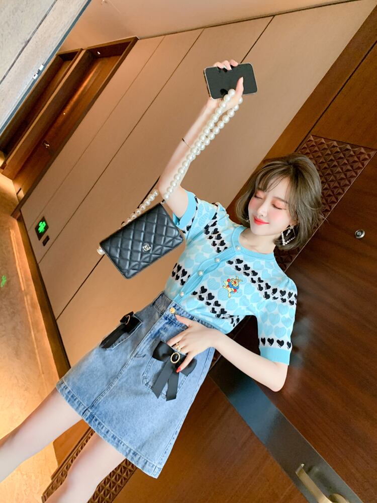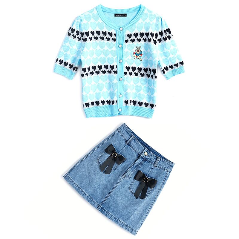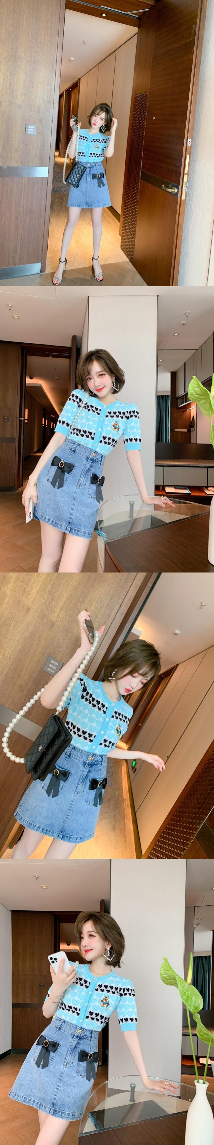 ジャカードボタンニットカーディガンスカート リボン スプリング 春物 サマー 夏物 MIUCO38643782749