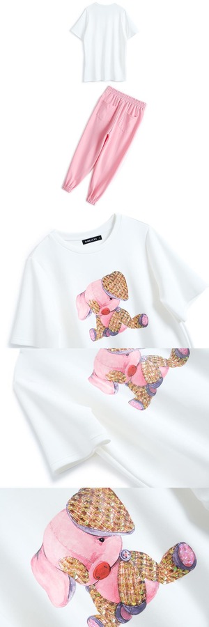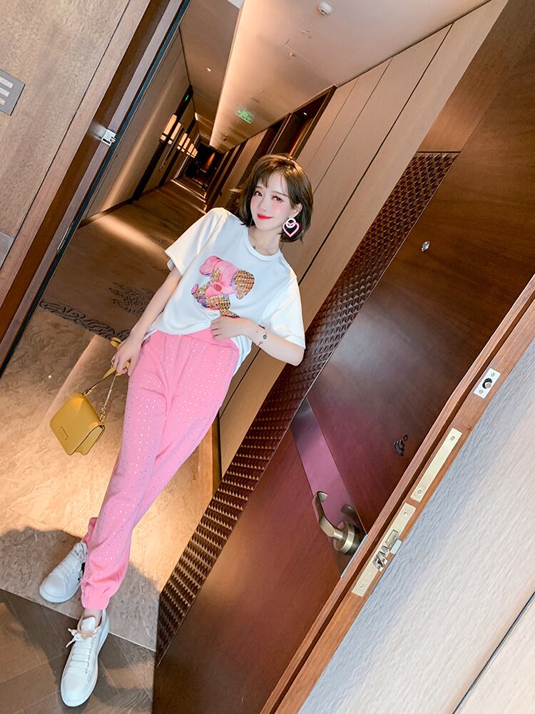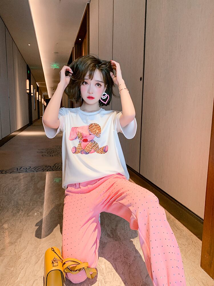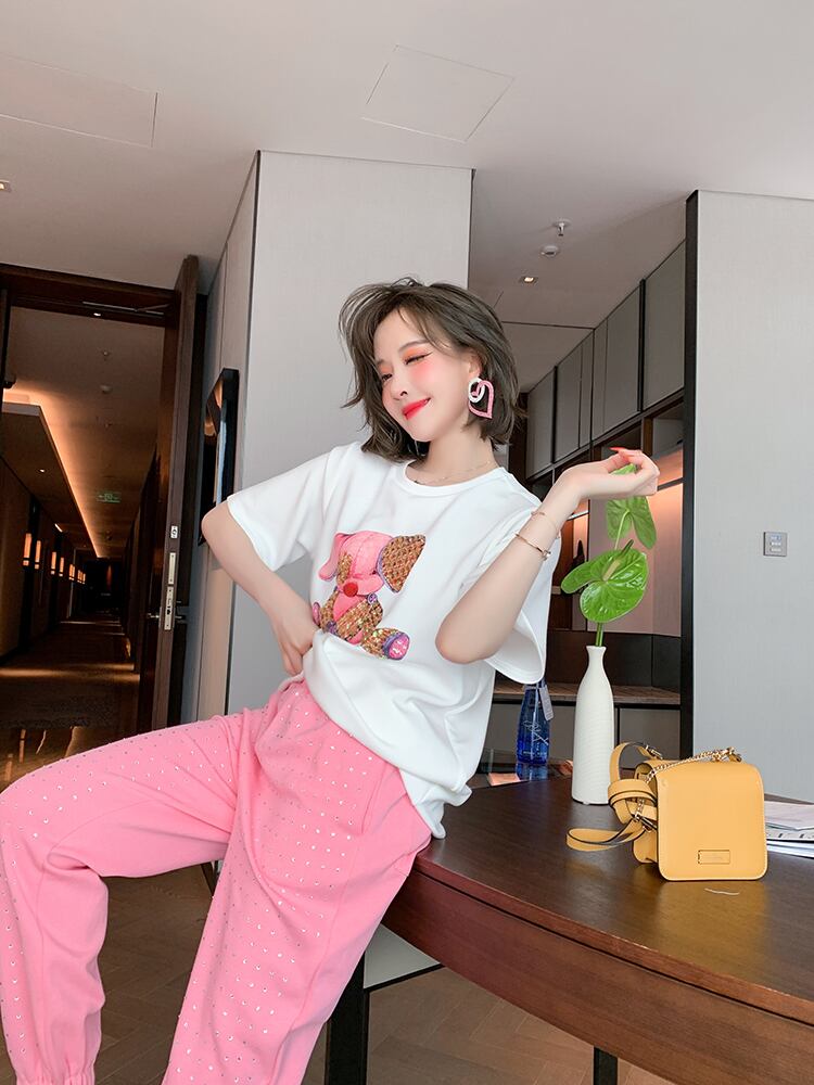 ラウンドネックTシャツ ハイウェストカジュアルパンツ スプリングサマー 春物 夏物 Oネック MIUCO75163211171
