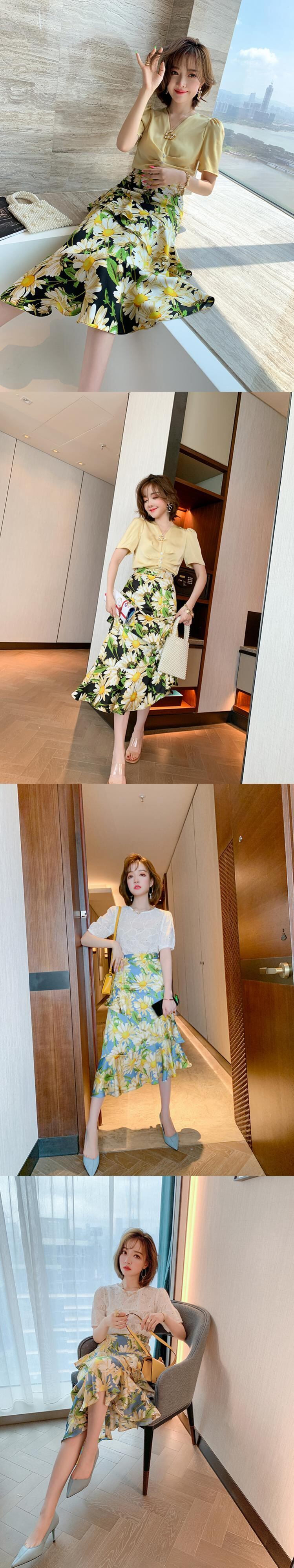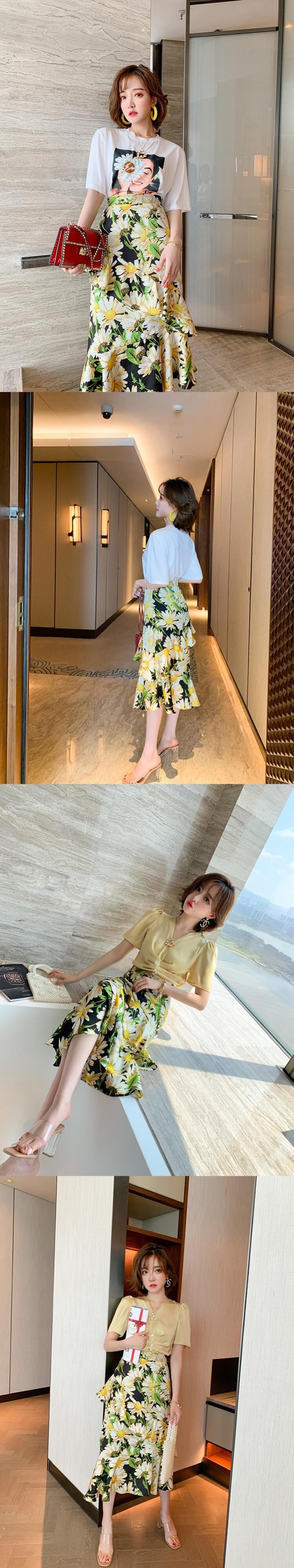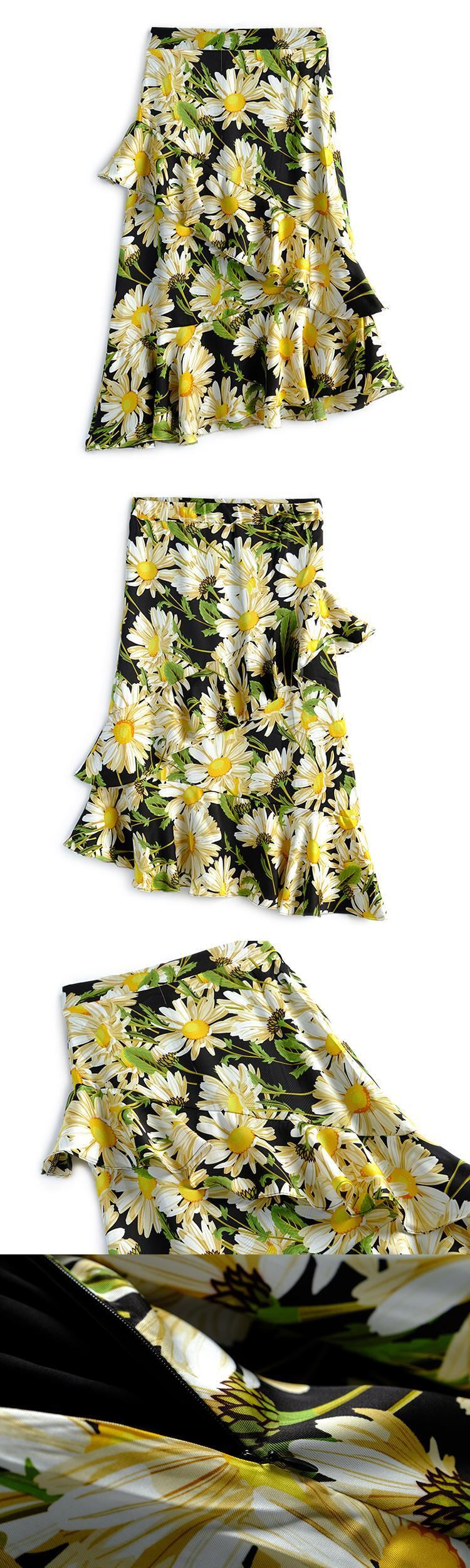 フローラルハイウェストウェストスリムラッフルスカート 花柄 MIUCO48639993966