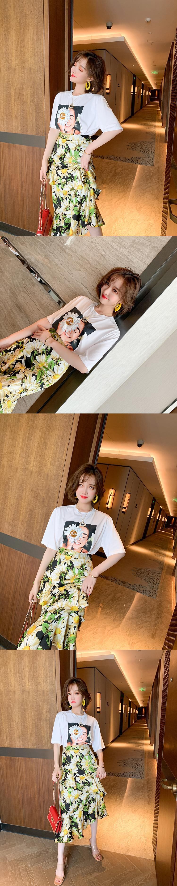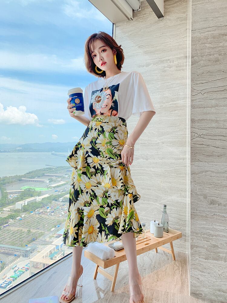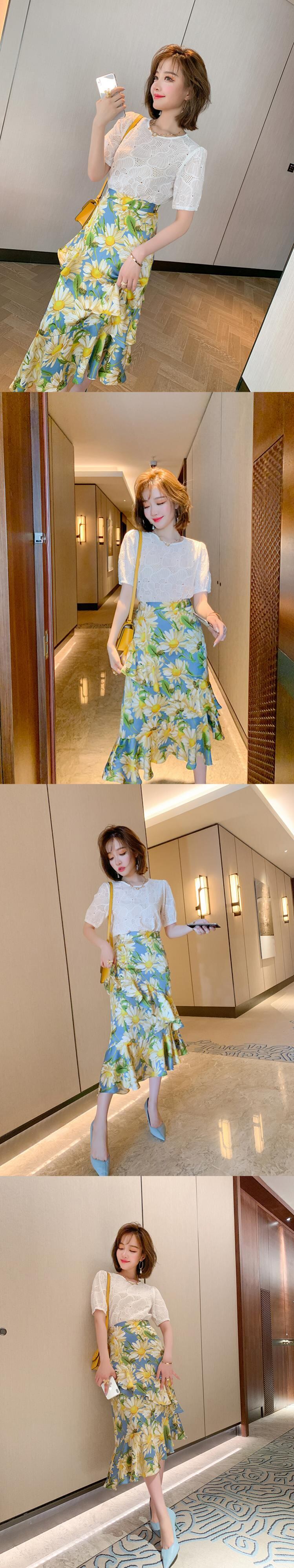 フローラルハイウェストウェストスリムラッフルスカート 花柄 MIUCO48639993966