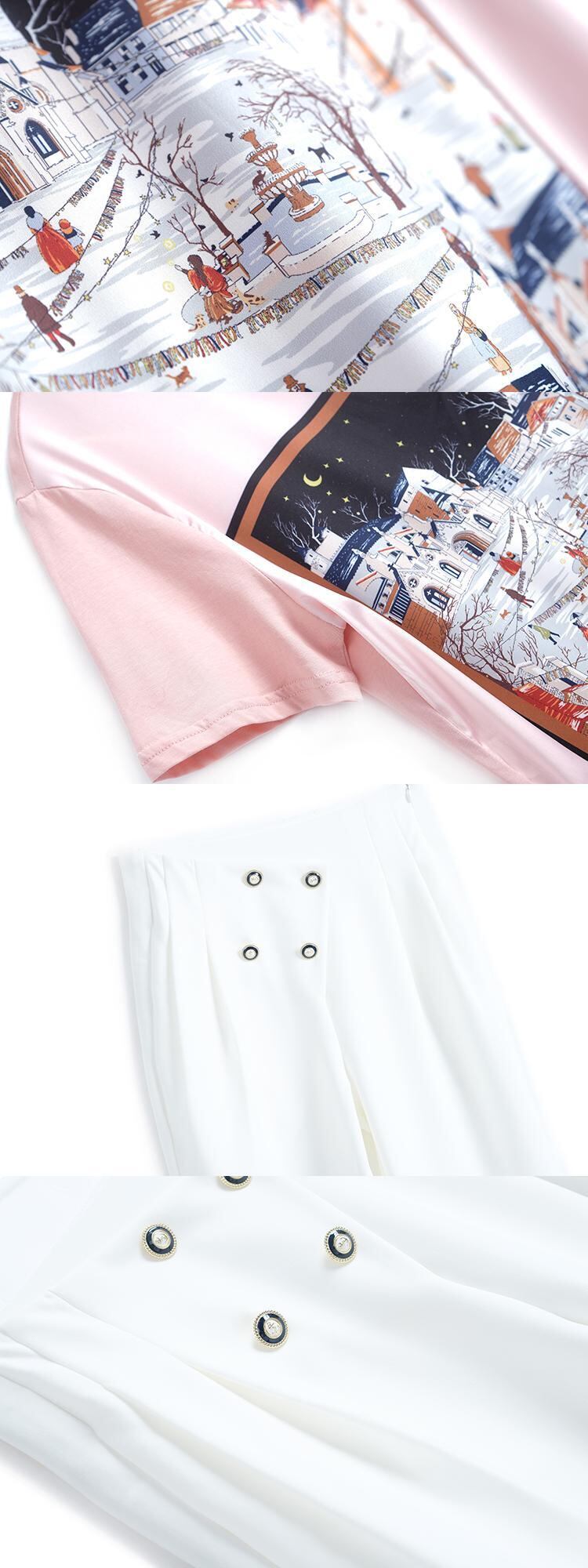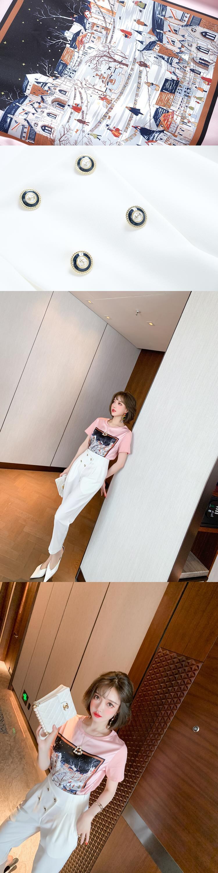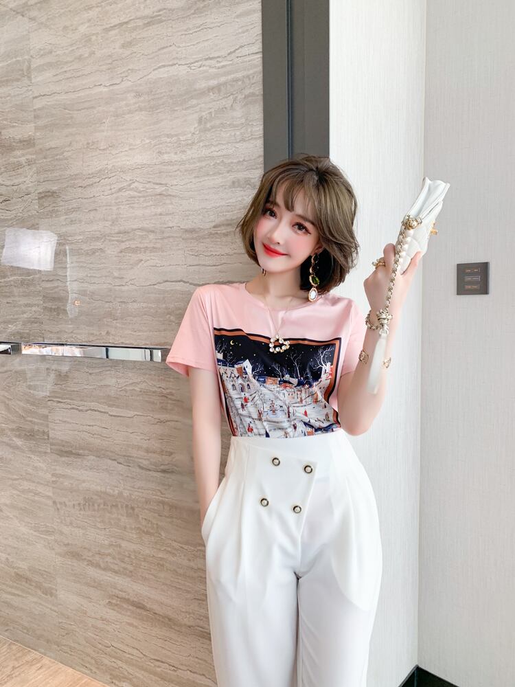 プリントラウンドネックTシャツ ハイウェストウェストパンツ スプリングサマー 春物 夏物 Oネック ステッチ MIUCO31468990180