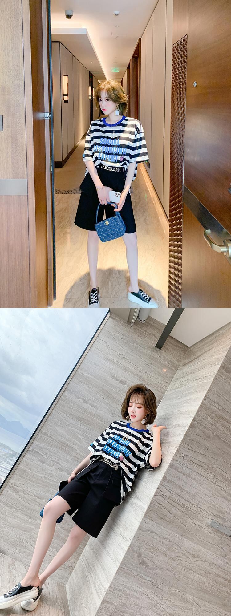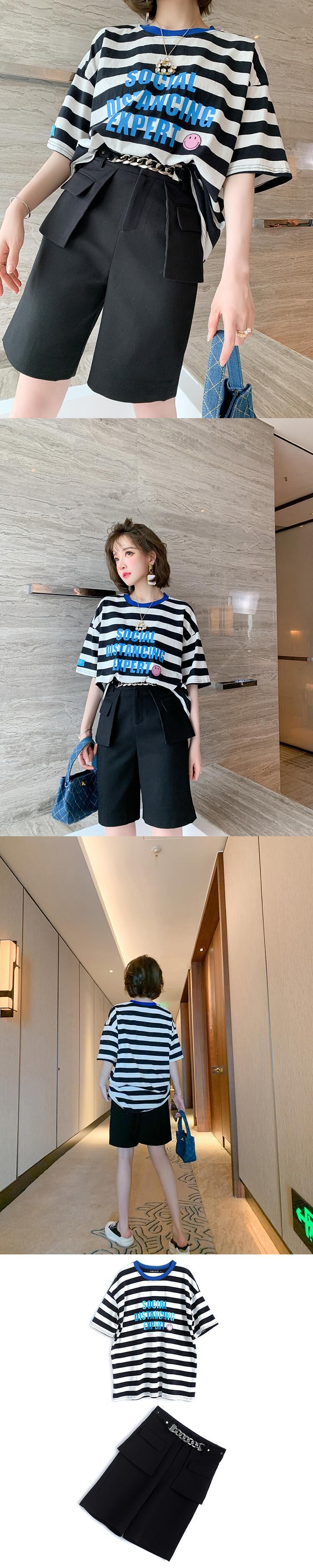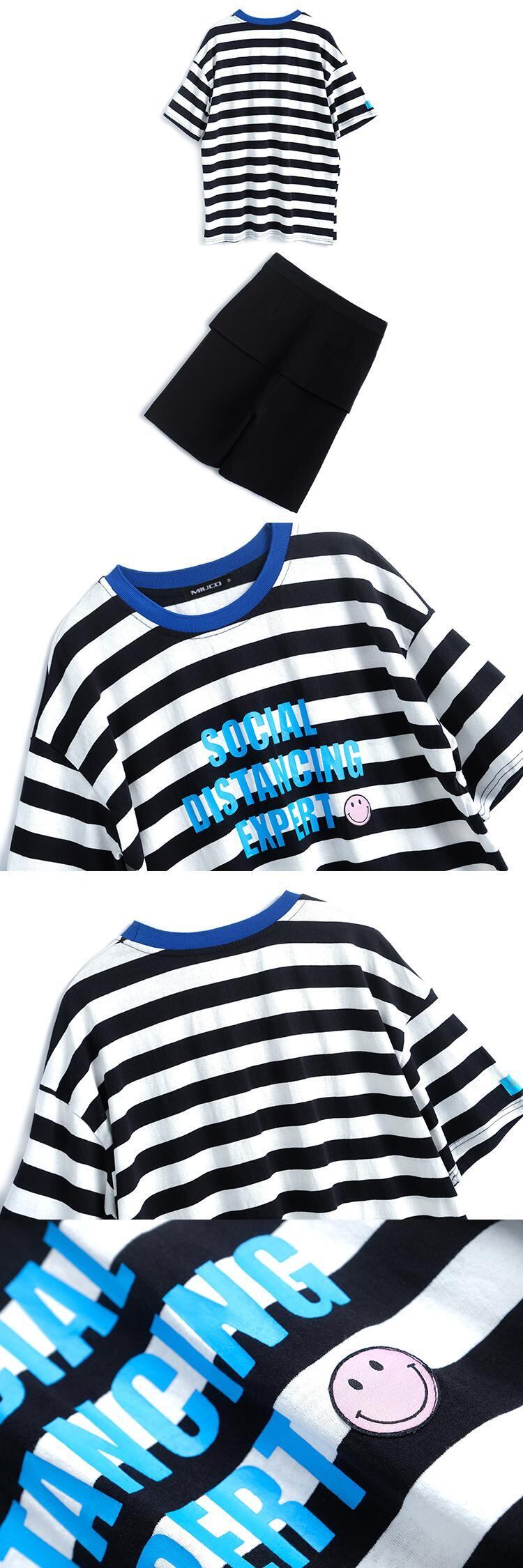 ルーズストライプTシャツ ポケットパンツ スプリングサマー 春物 夏物 ステッチ MIUCO55333867623