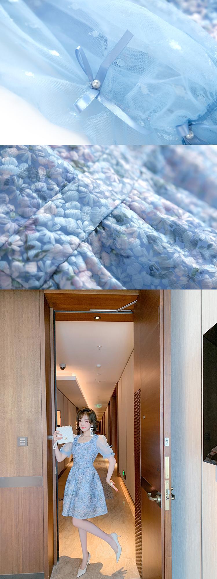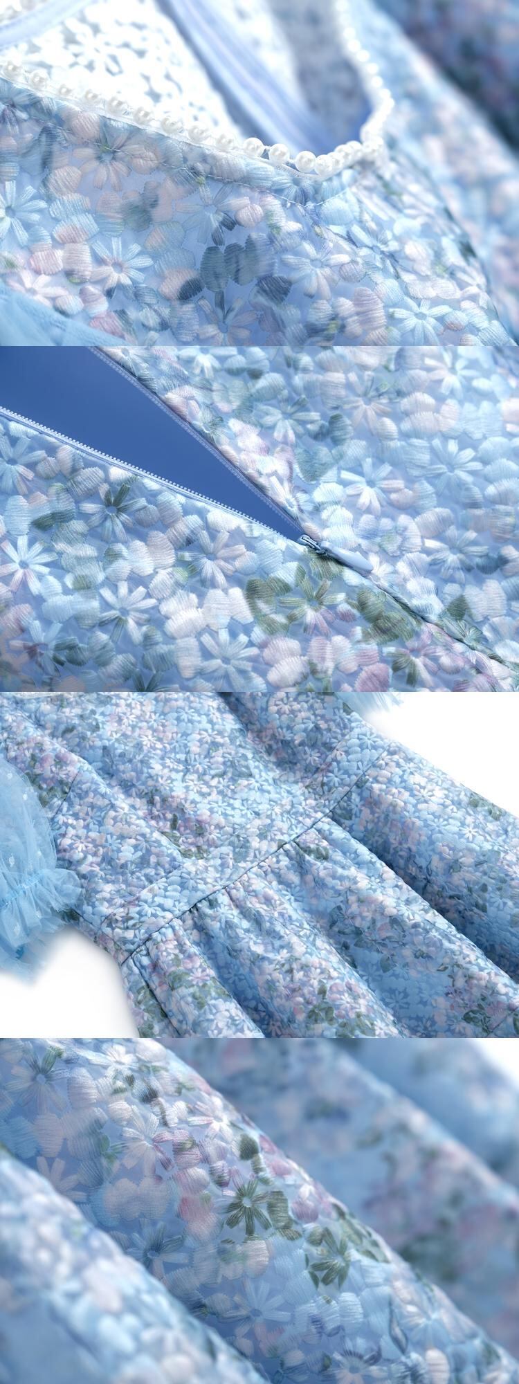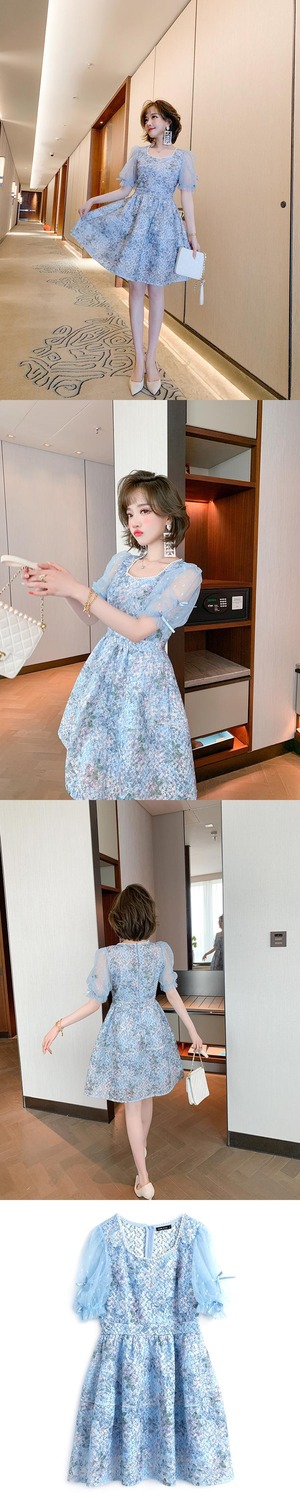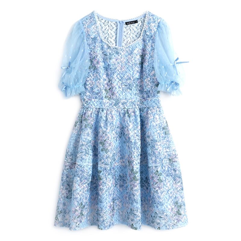 メッシュスリーブウェスト薄手ドレス レッド 刺繍 スプリング 春物 サマー 夏物 スクウェア MIUCO57792015211
