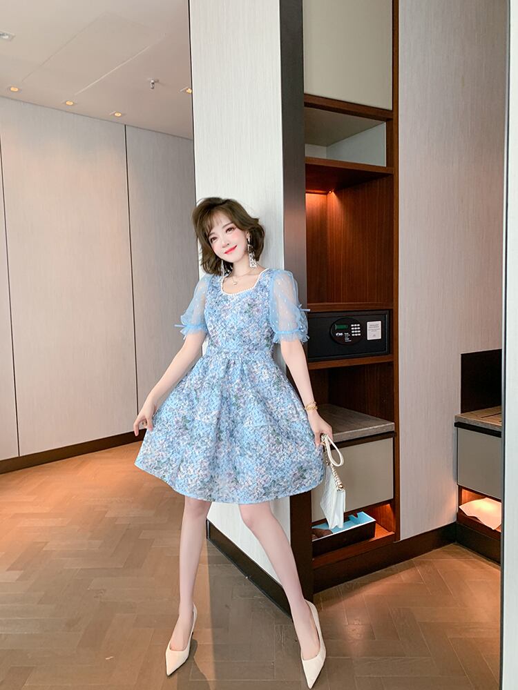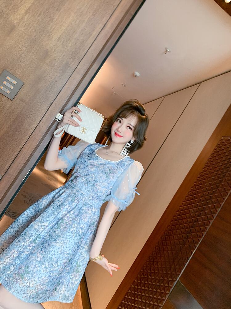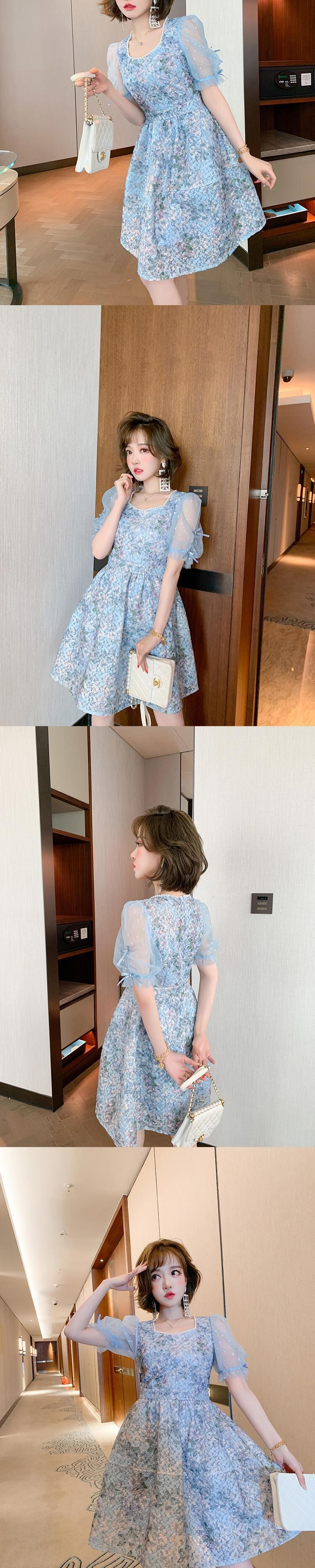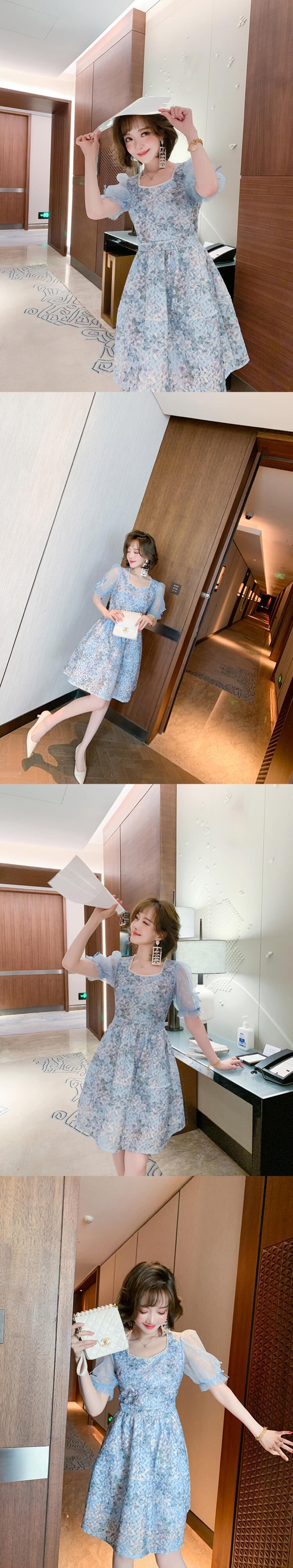 メッシュスリーブウェスト薄手ドレス レッド 刺繍 スプリング 春物 サマー 夏物 スクウェア MIUCO57792015211