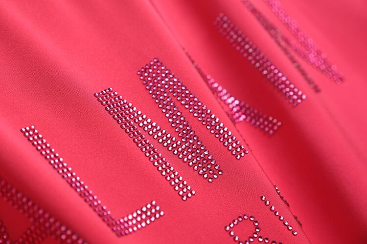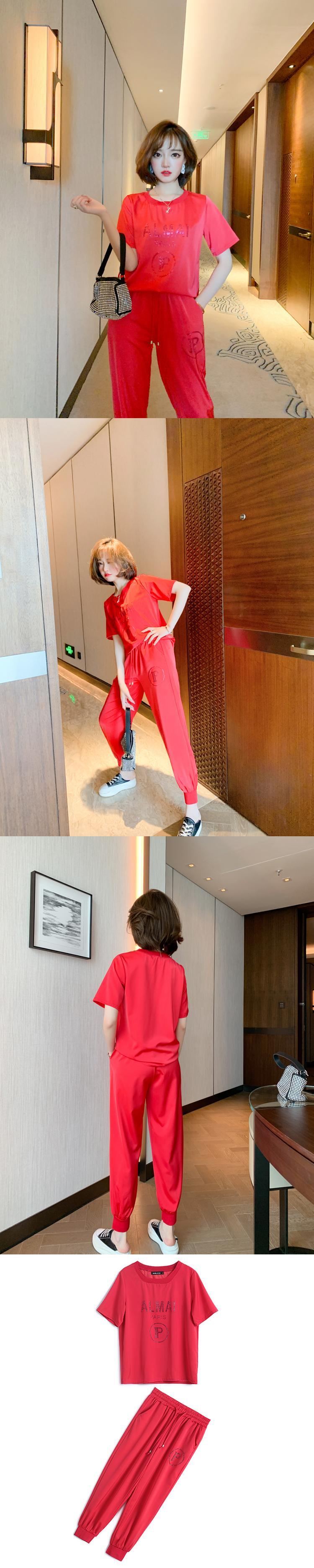 ラインストーンラウンドネックTシャツ ストレッチウェストパンツ オータム エラスティック 伸縮 秋物 Oネック MIUCO85917815528