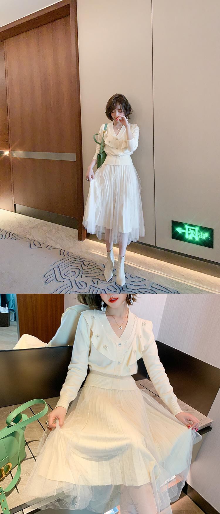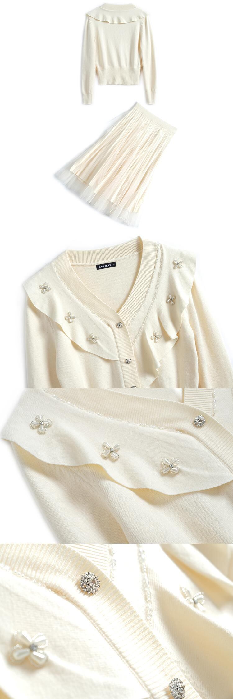 Vネックニットカーディガンスリムスカート ウィンター 冬物 MIUCO55434860211
