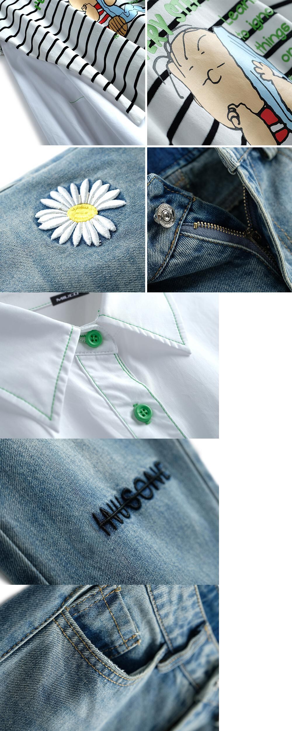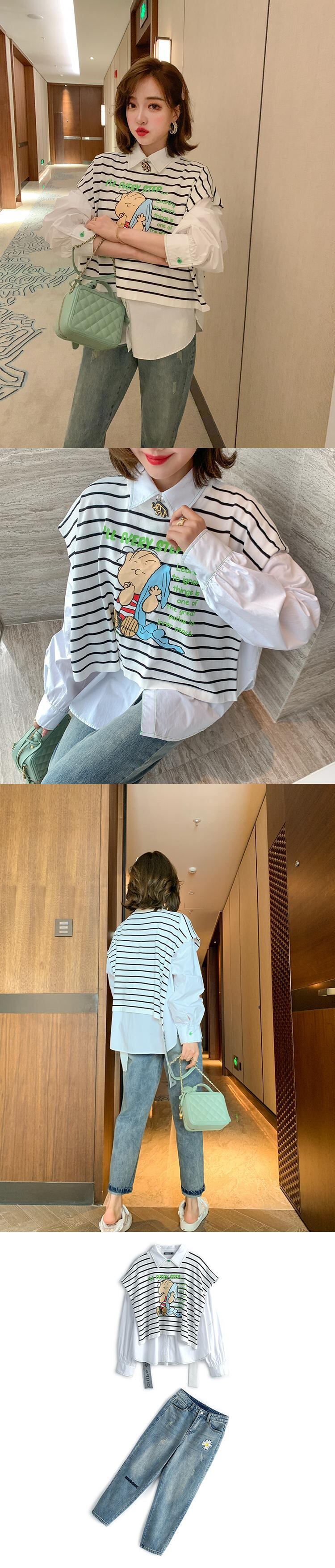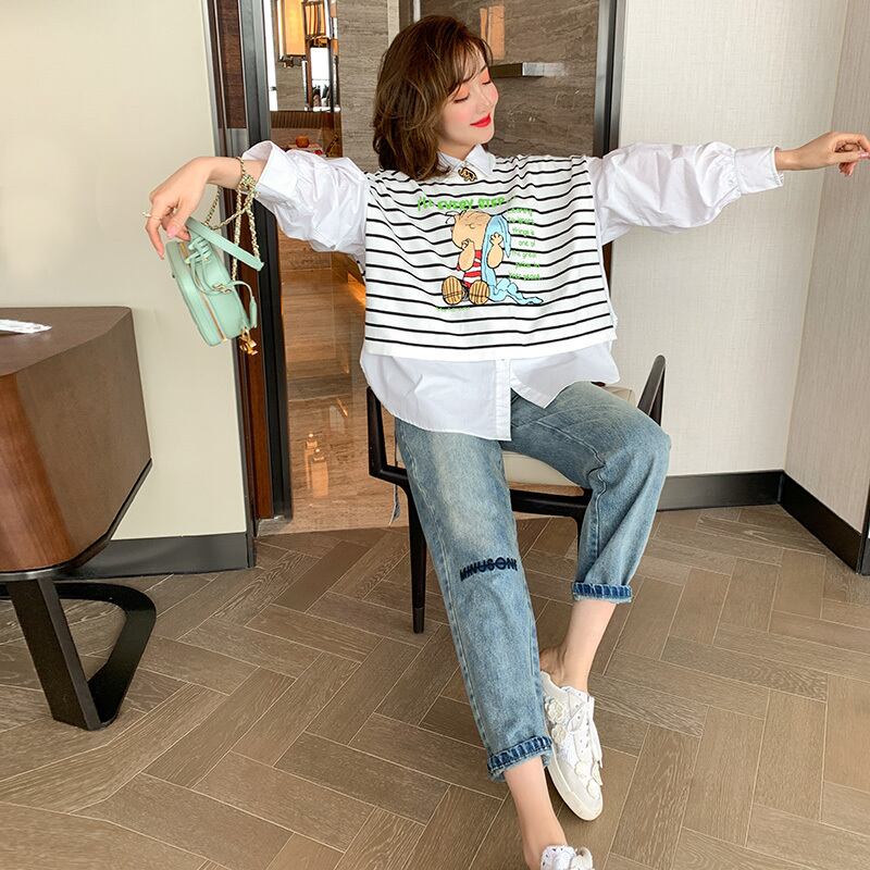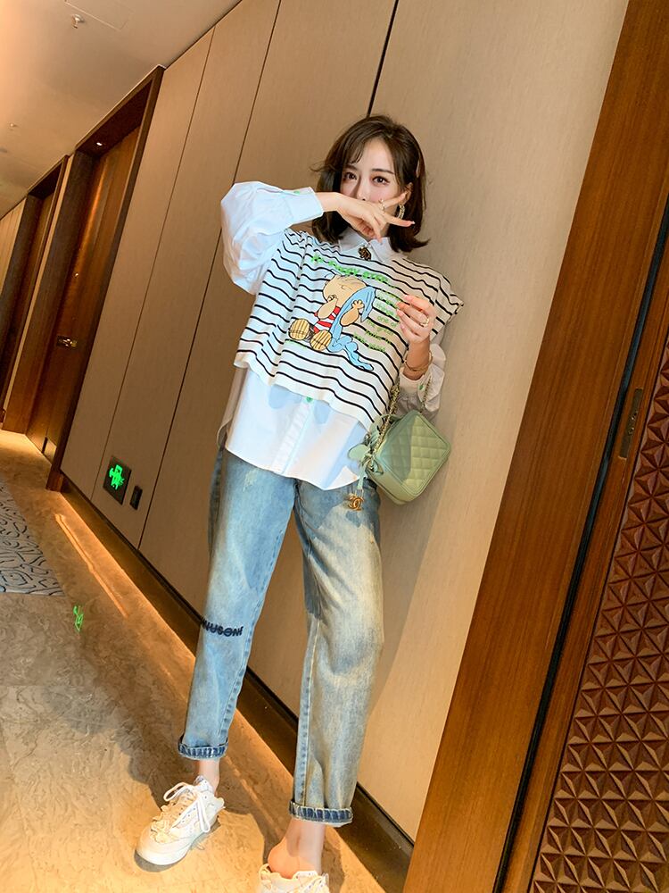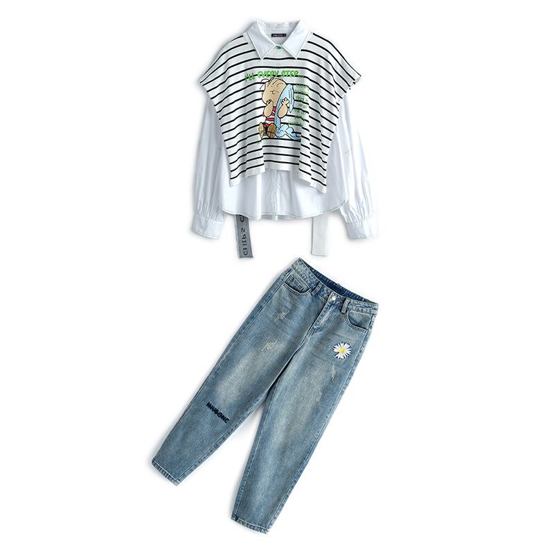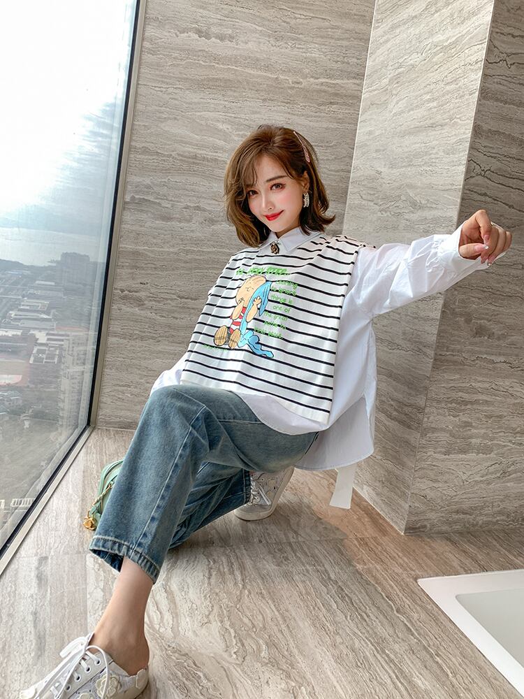 ルーズホワイトシャツ ストライププリント柄ジーンズ スプリング 春物 MIUCO66512948994