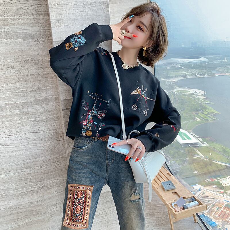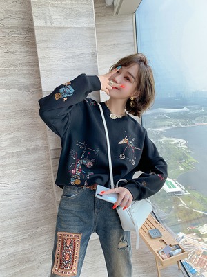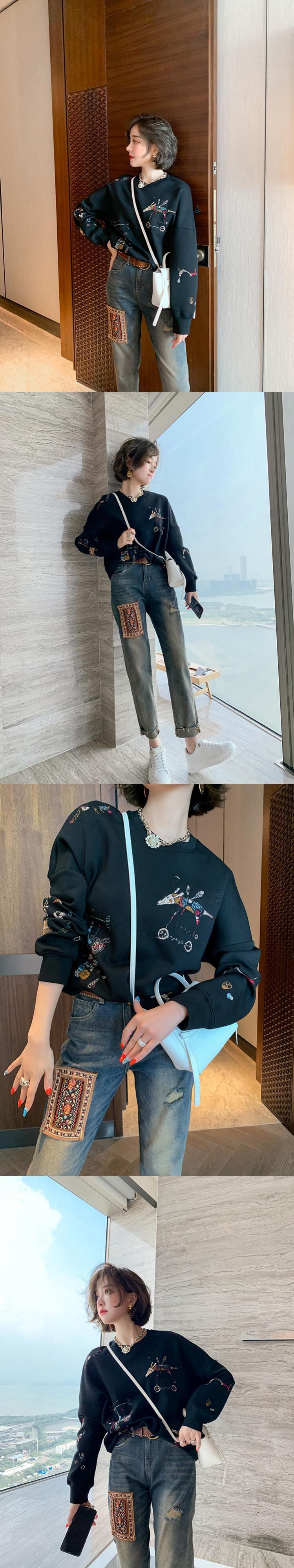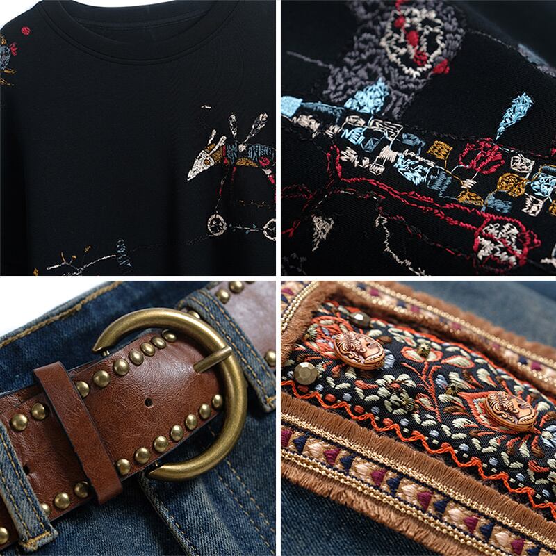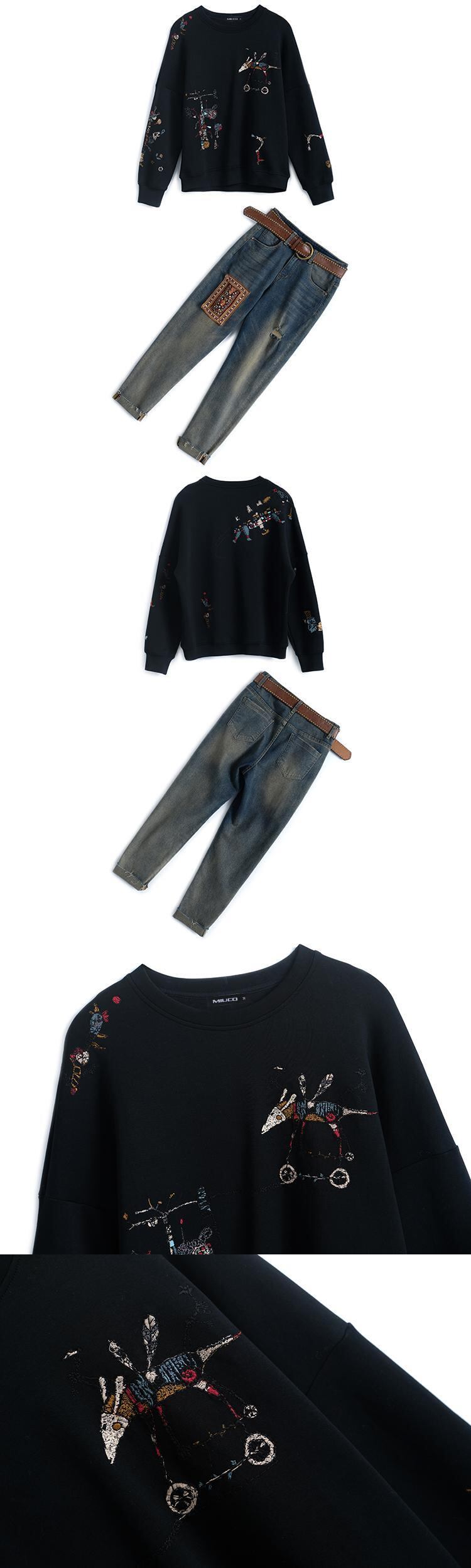 スリーブルーズセーター ジーンズ セット レッド 刺繍 MIUCO31719714422