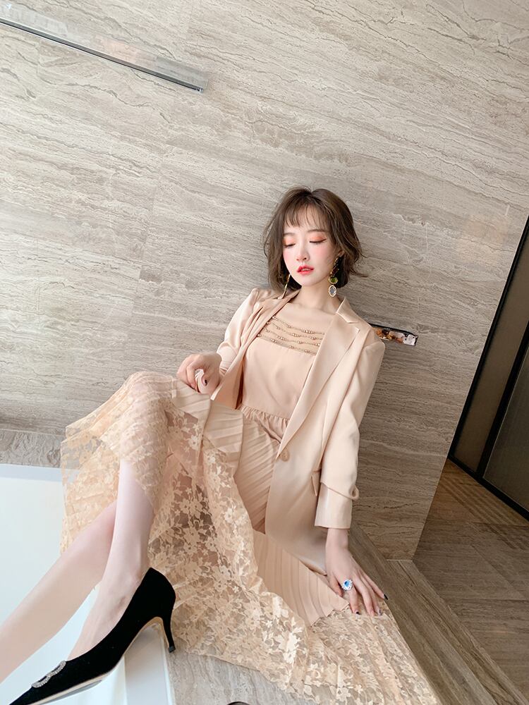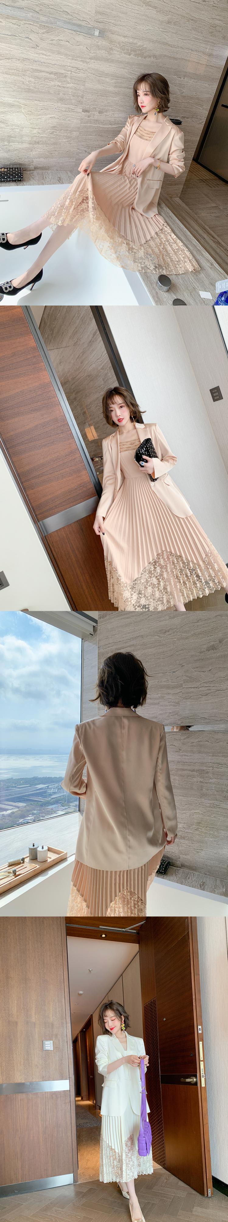 メッシュレースプリーツスカート スプリング 春物 シルキー ステッチ MIUCO50689759639