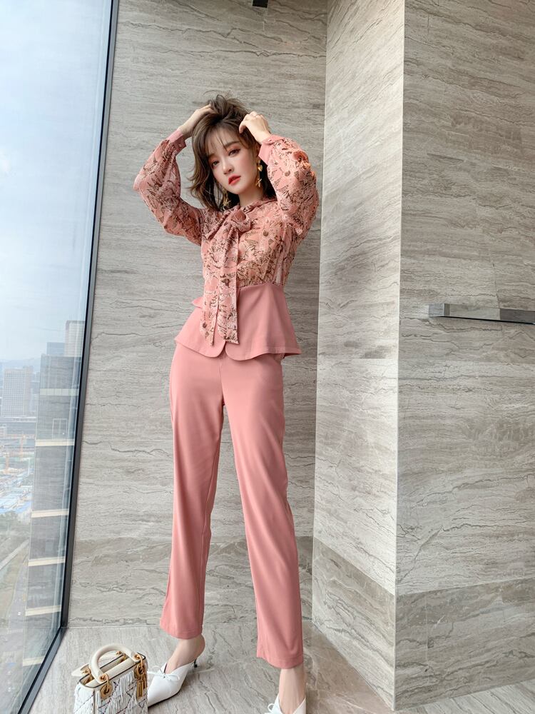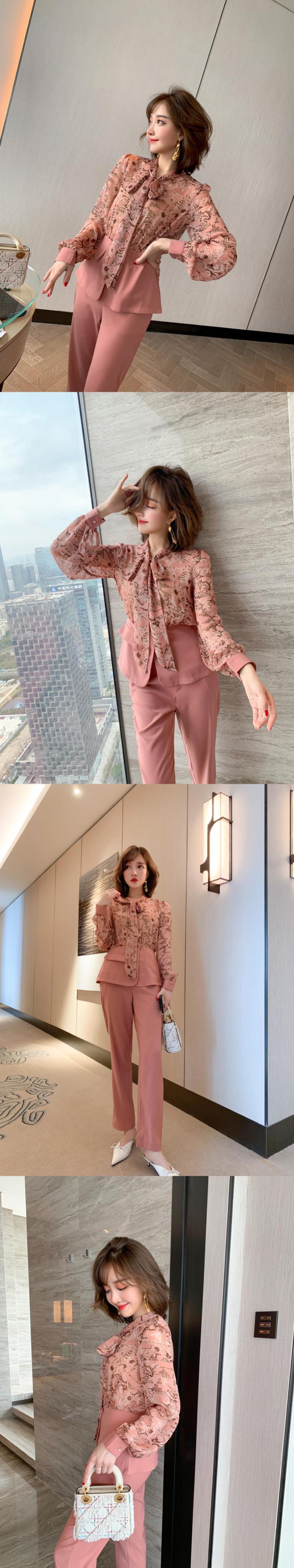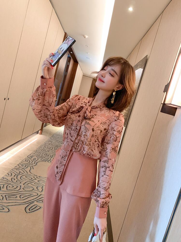 プリントリボンシャツ ハイウェストウェストスプリング 春物 ステッチ MIUCO88958894709