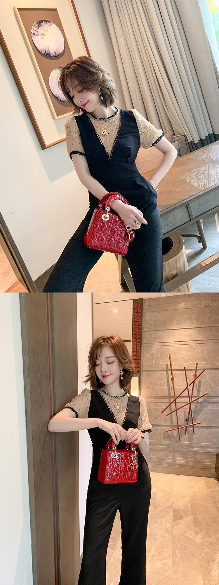 レースハイウェストパンツ ジャンプスーツ オールインワン サマー レッド 夏物 MIUCO87232525208