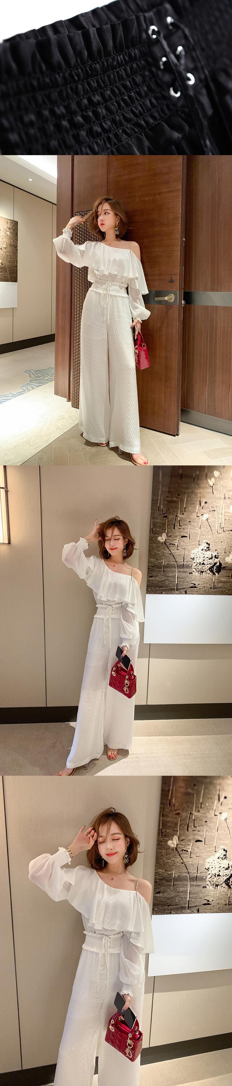 チェーン トップス ウェストパンツ サマー レース 夏物 オフショルダー レースアップ MIUCO92000108339