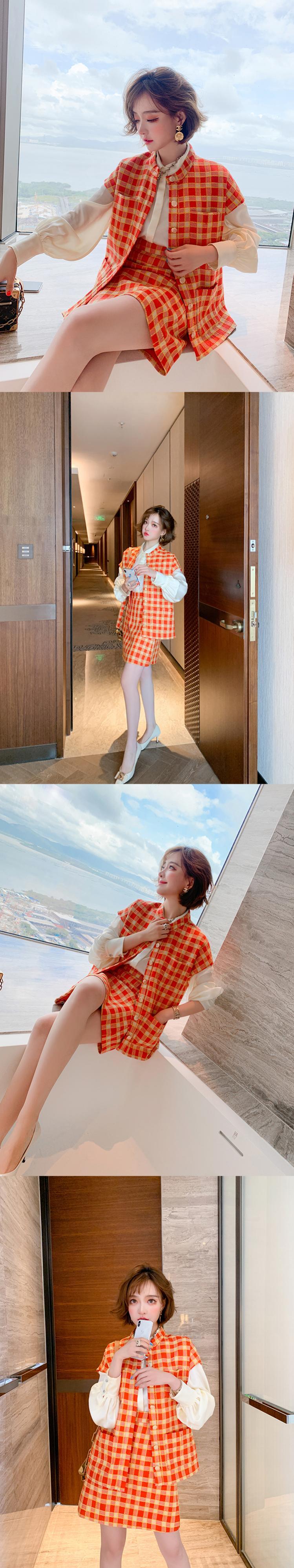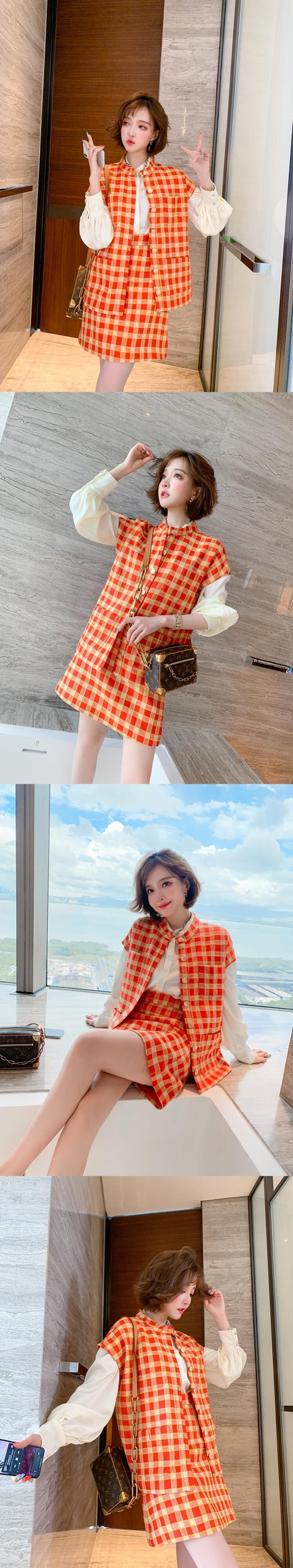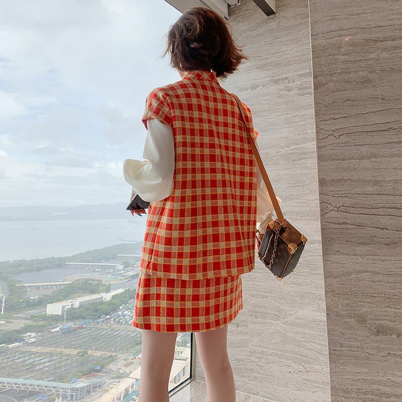 スタンダード格子柄ウェスト薄手Aラインスカート レディースオータム レトロ 秋物 MIUCO95631647378