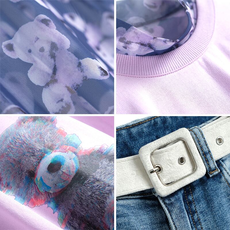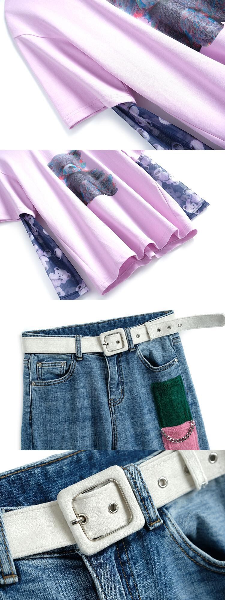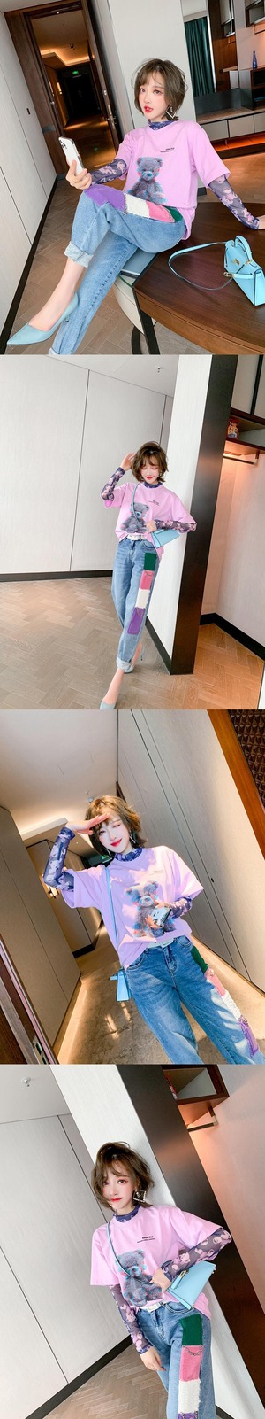 スリムシャツ ルーズラウンドネック半袖スリーブハイウェストウェストジーンズ スプリング ショート ハーフスリーブ 春物 Oネック MIUCO10603095326