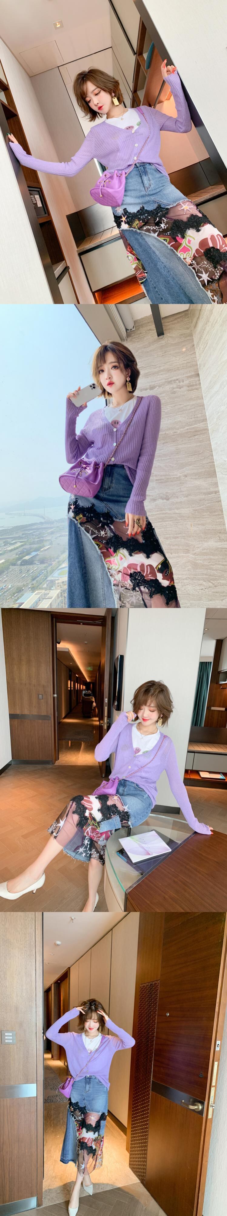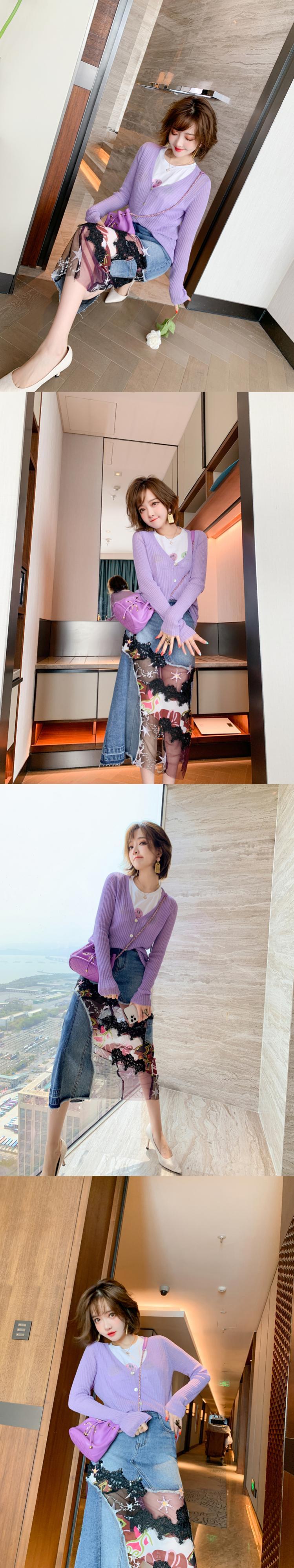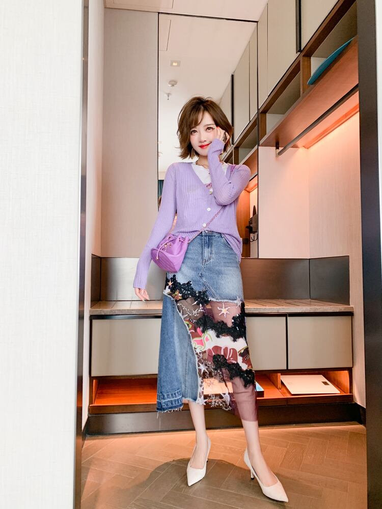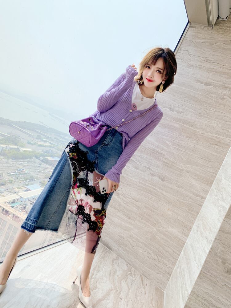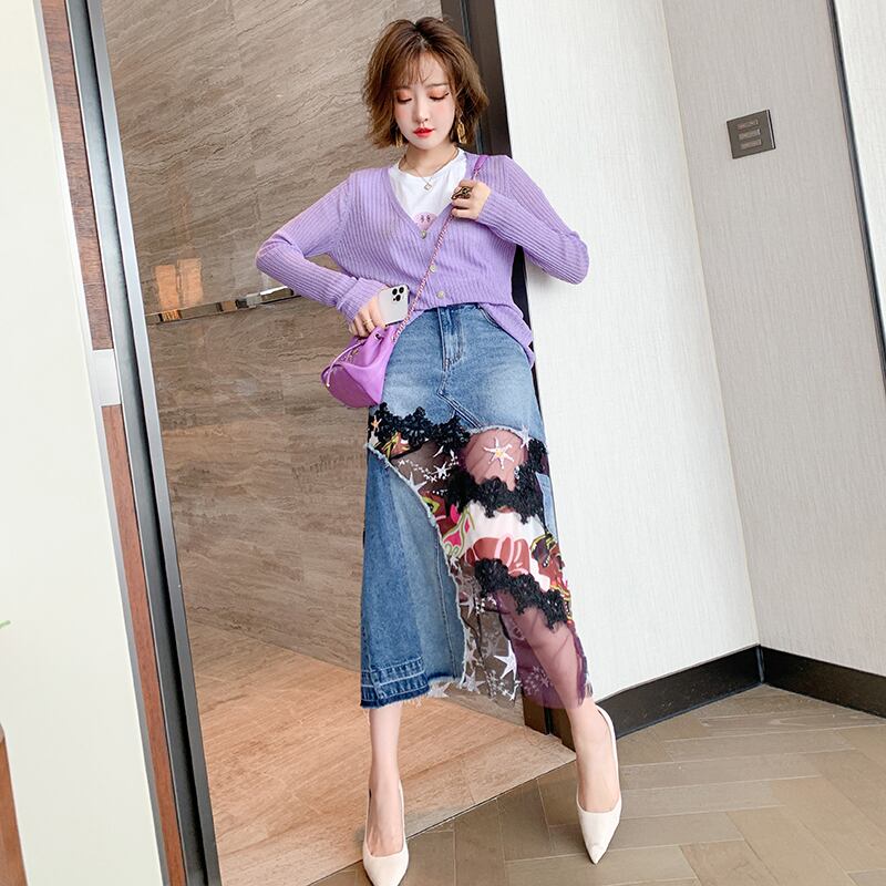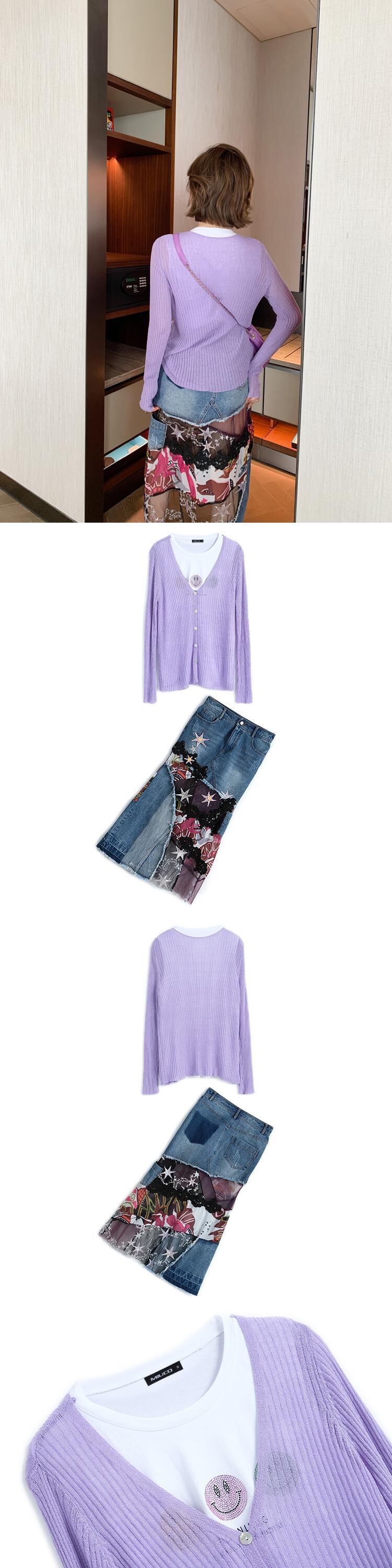 ラインストーンTシャツ ニットカーディガンスカート スプリング 春物 ステッチ MIUCO30164356000