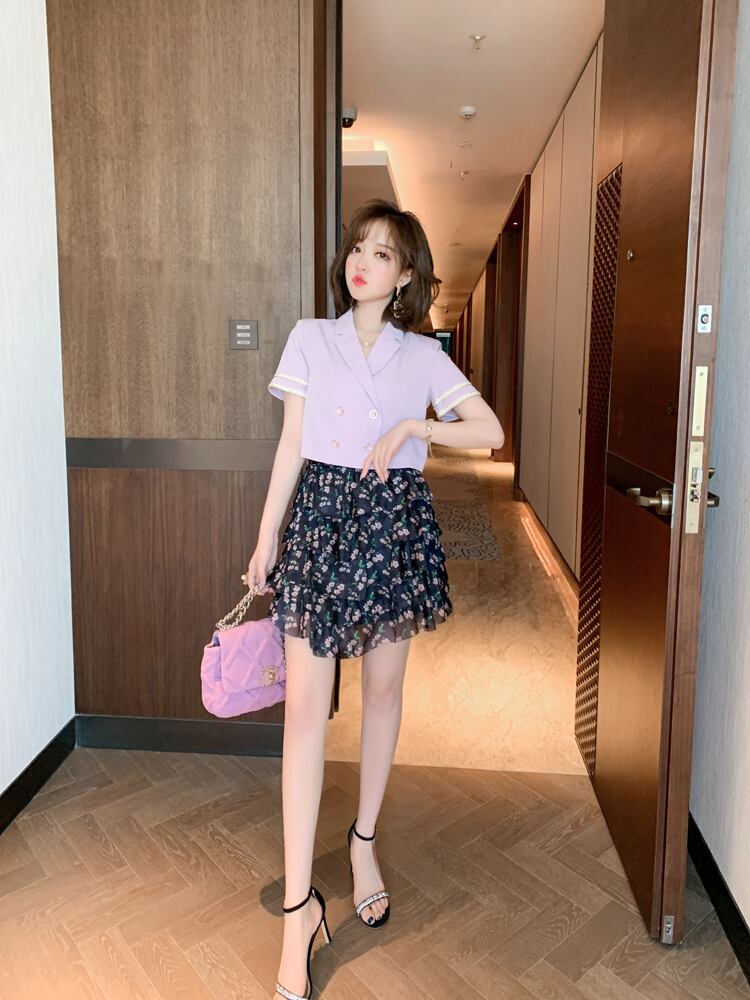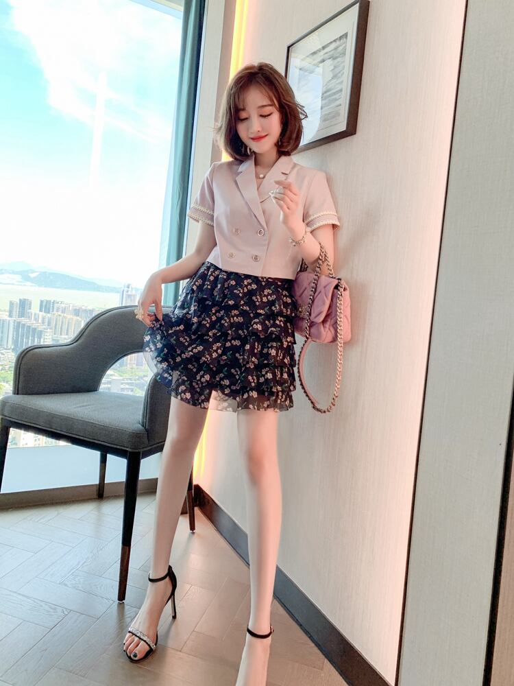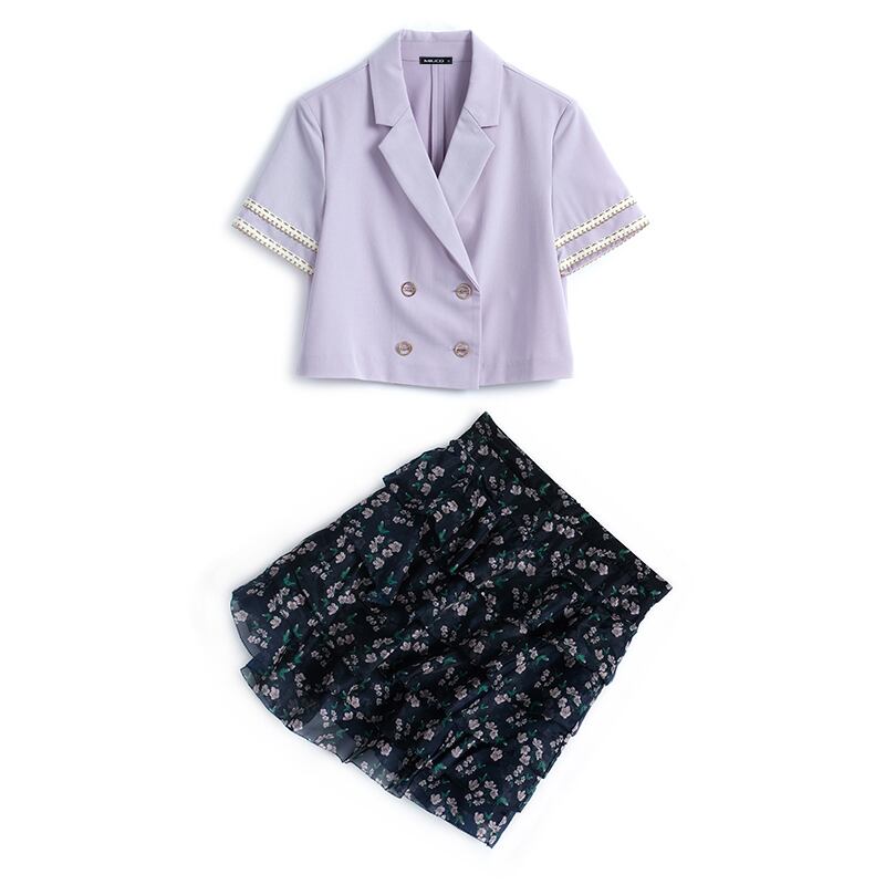 ダブルブレストショートブレザー プリントスカート MIUCO8151840538