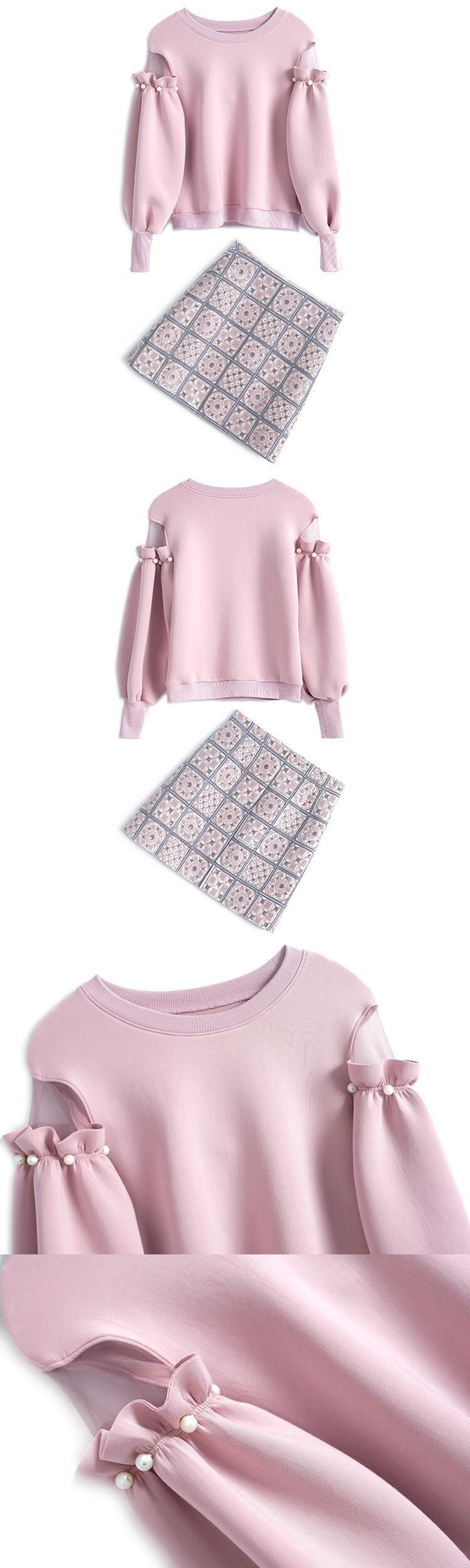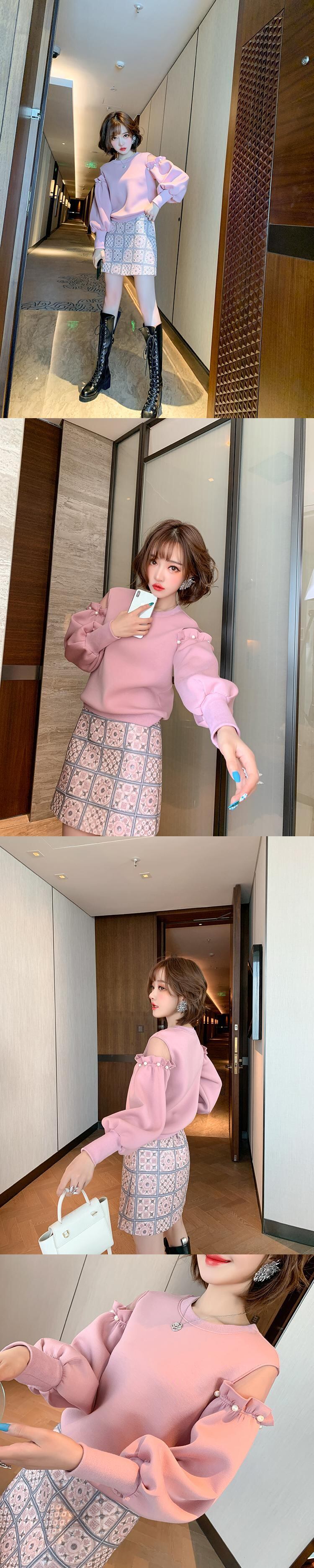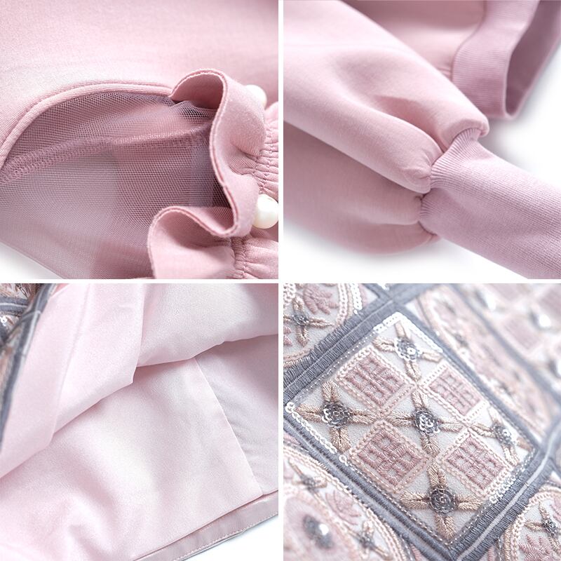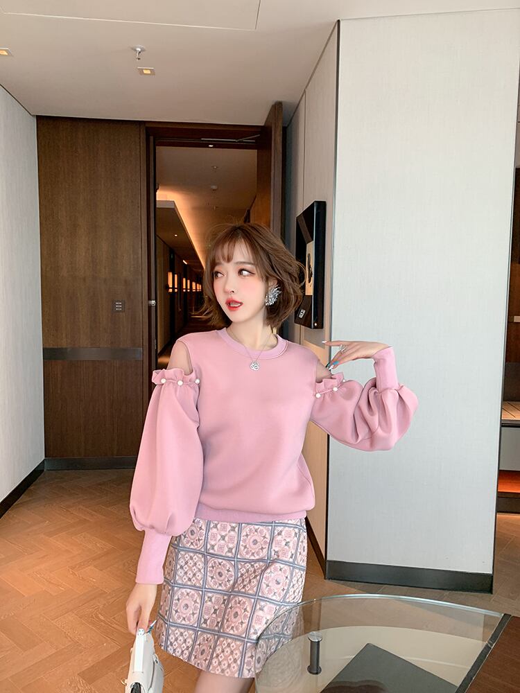 スリーブセーター トップス 刺繍Aラインスカート スプリングスタイル ランタンスリーブ 春物 MIUCO99732920961