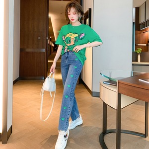 プリント柄スタイルTシャツ ジーンズ スプリング レッド 刺繍 春物 MIUCO70968989004