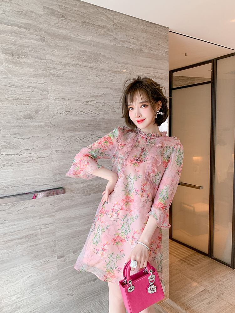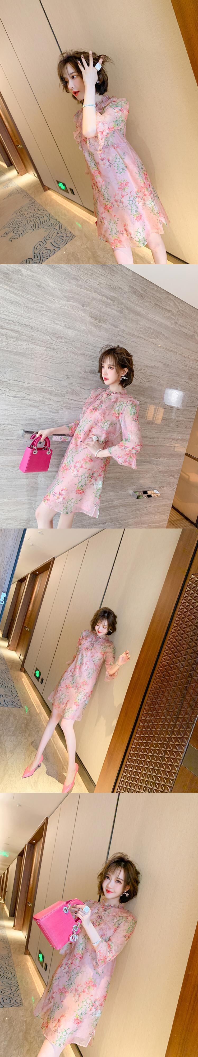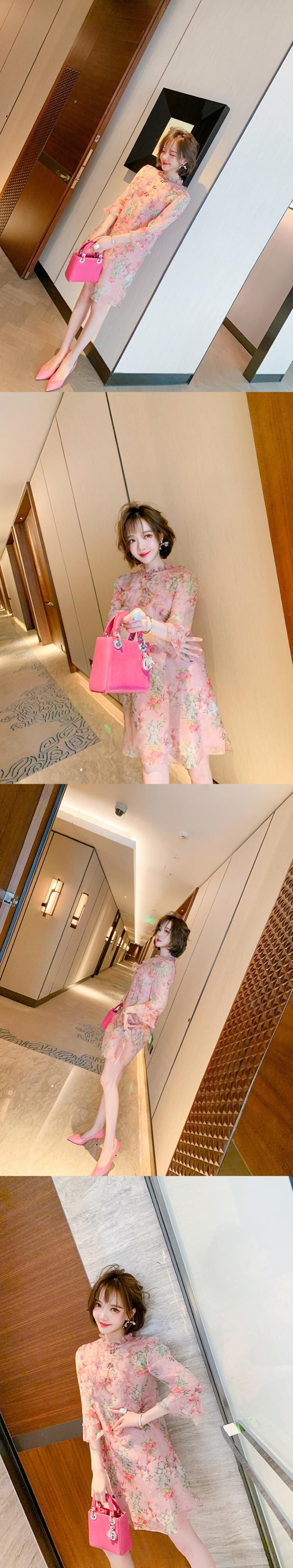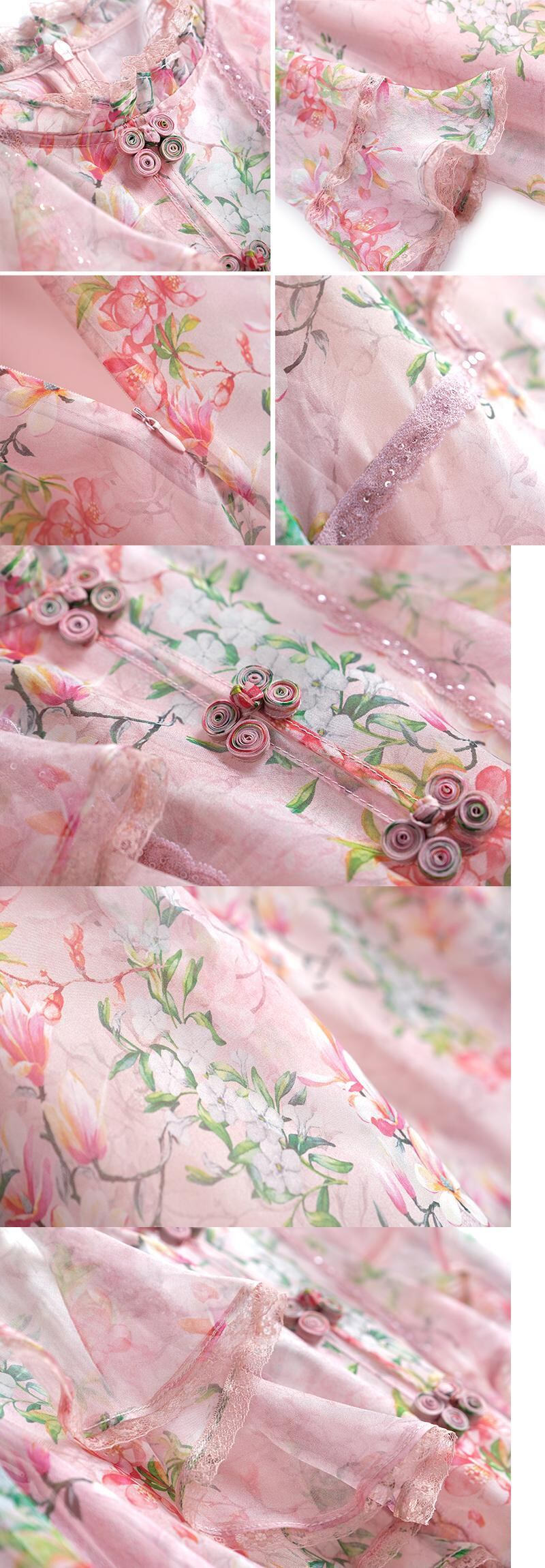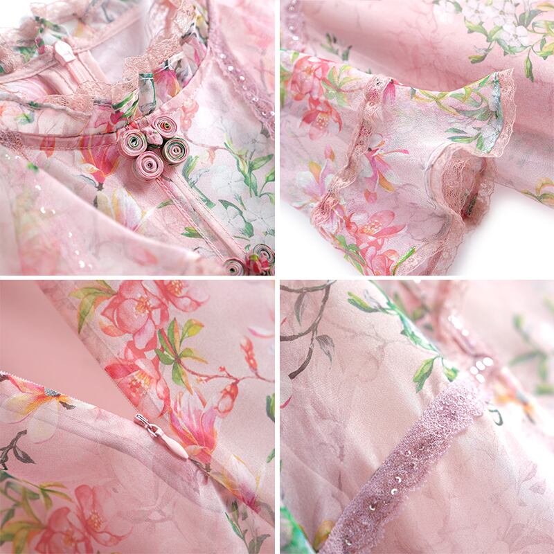 プリントレーススリーブドレス スプリング レッド 春物 シルク MIUCO6980178271