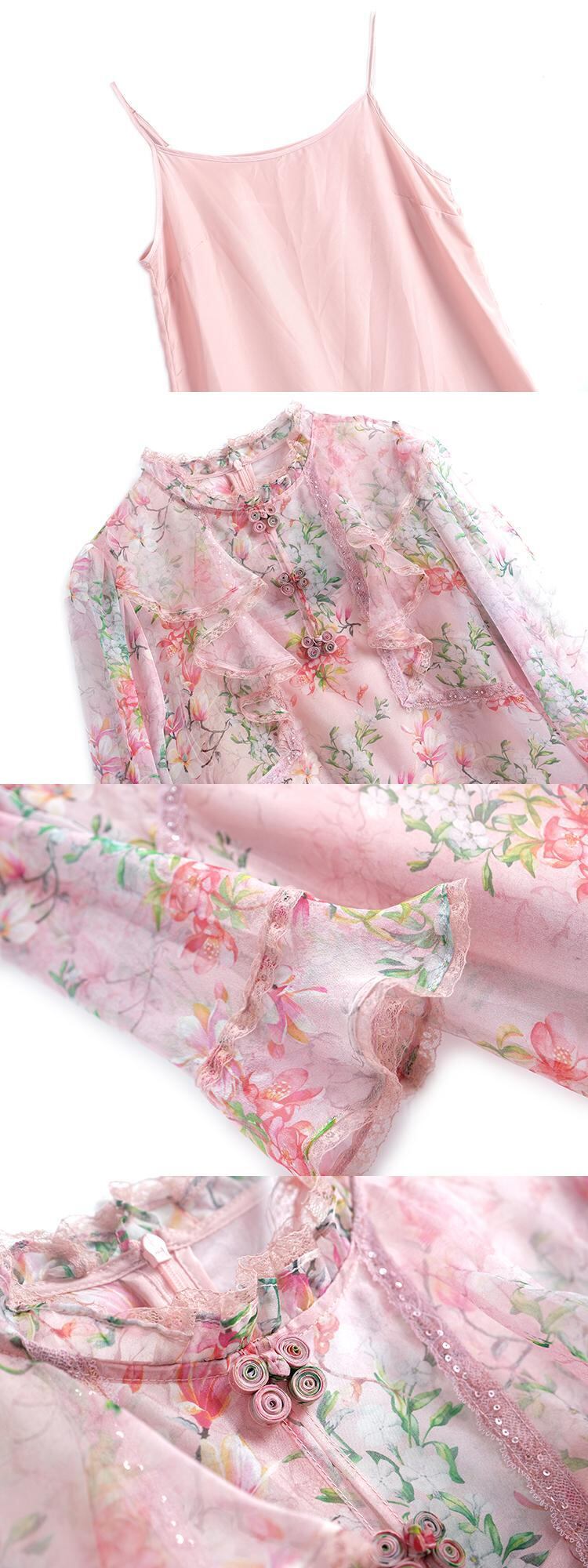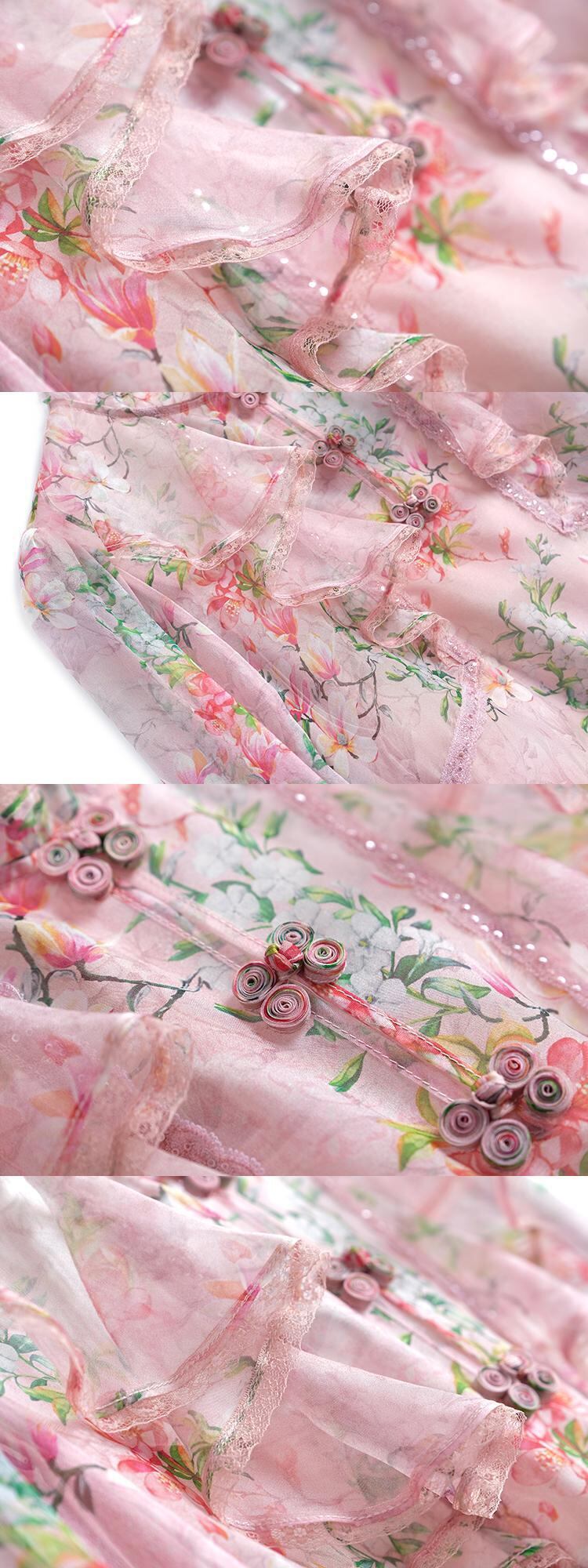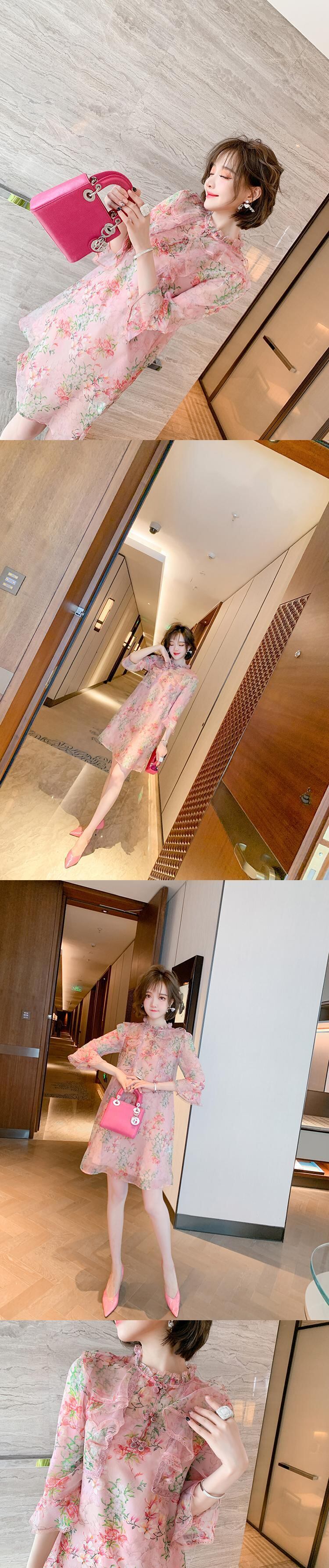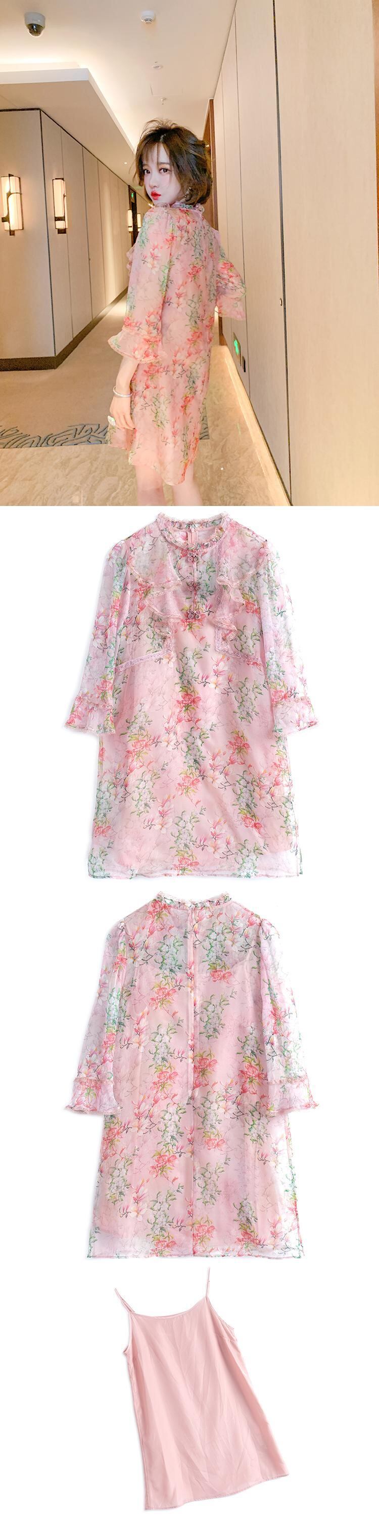 プリントレーススリーブドレス スプリング レッド 春物 シルク MIUCO6980178271