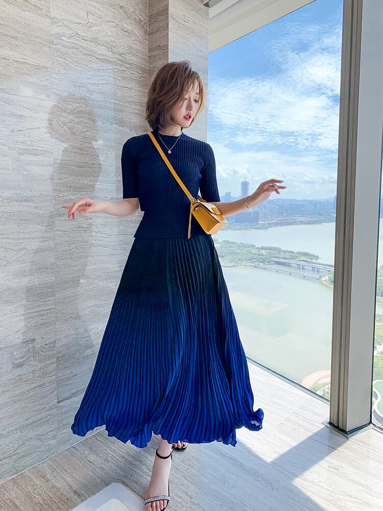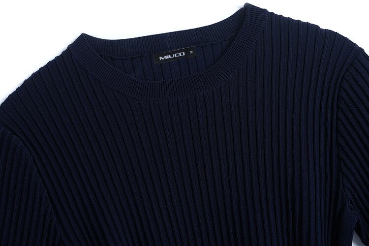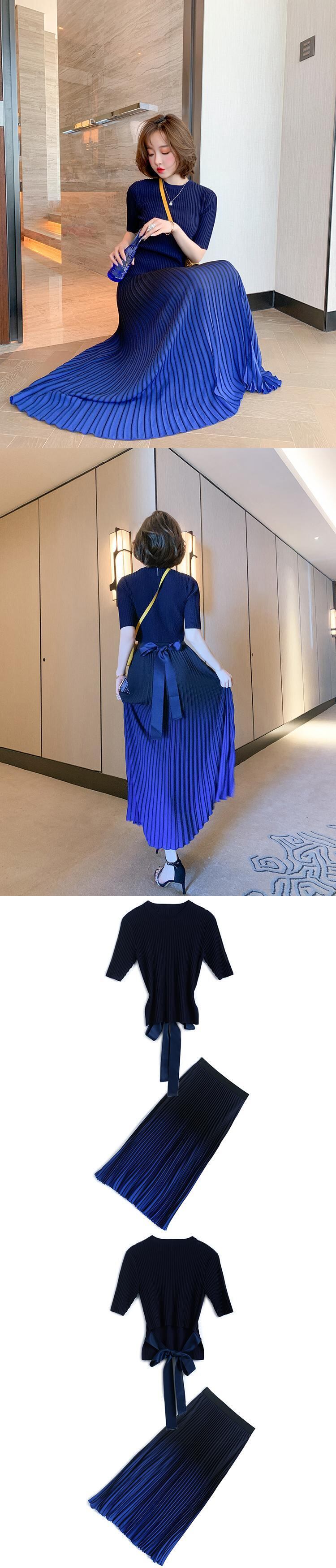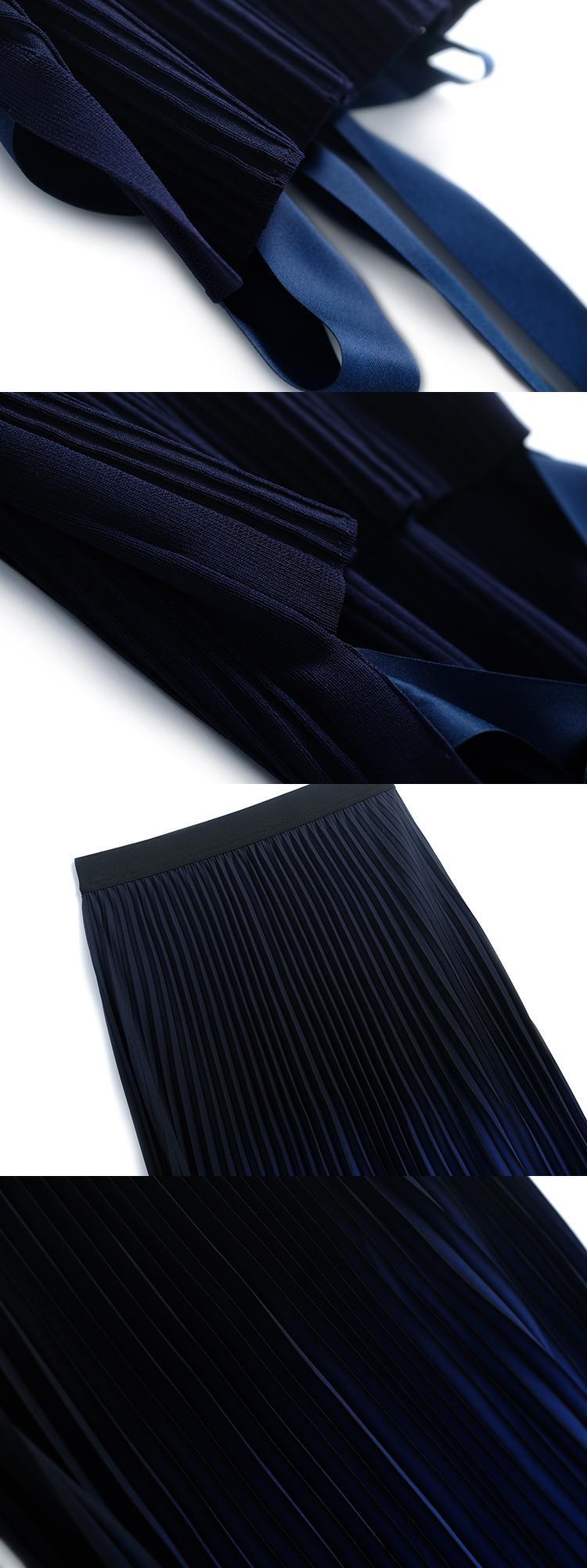 スリムラウンドネックスリーブニットTシャツ プリーツスカート オータム 秋物 Oネック MIUCO37449362946