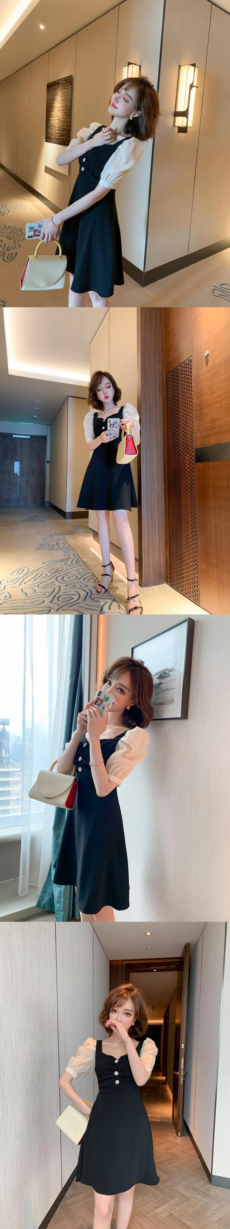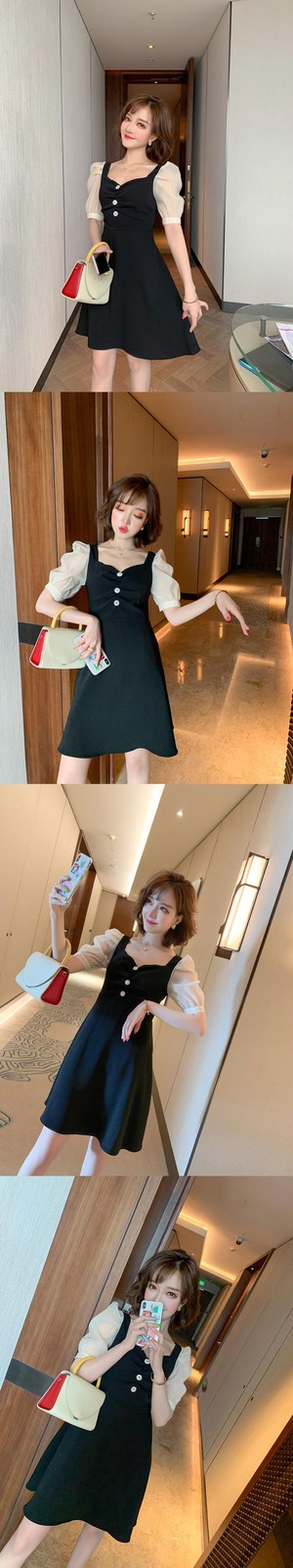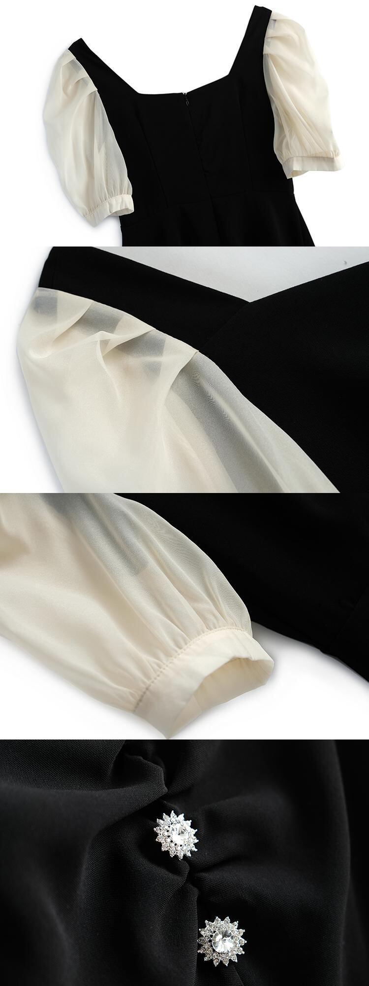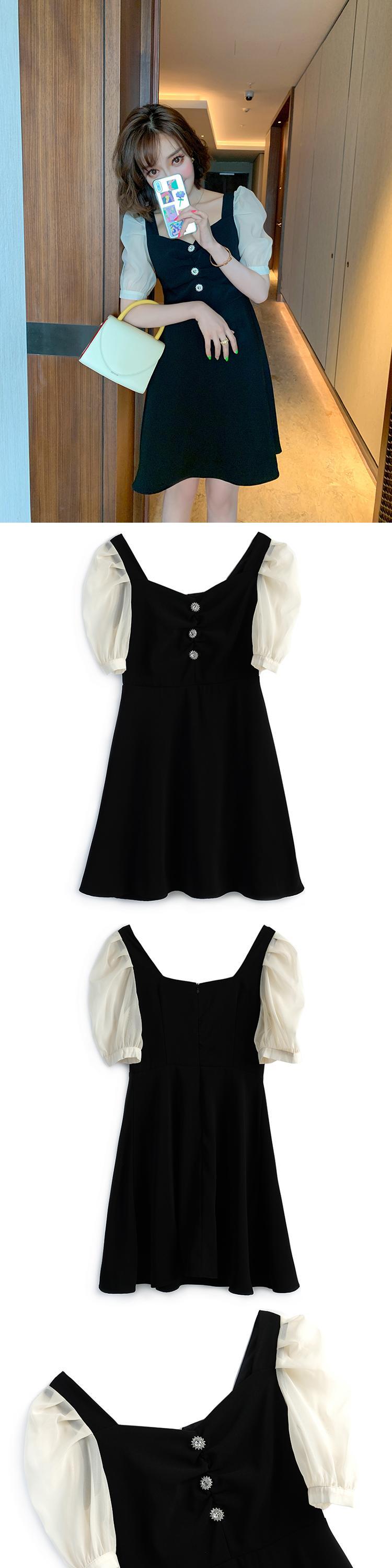 メッシュスタンダードスリーブVネックスリムドレス スプリングサマー レトロ 春物 夏物 ステッチ MIUCO50875355938