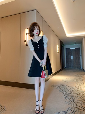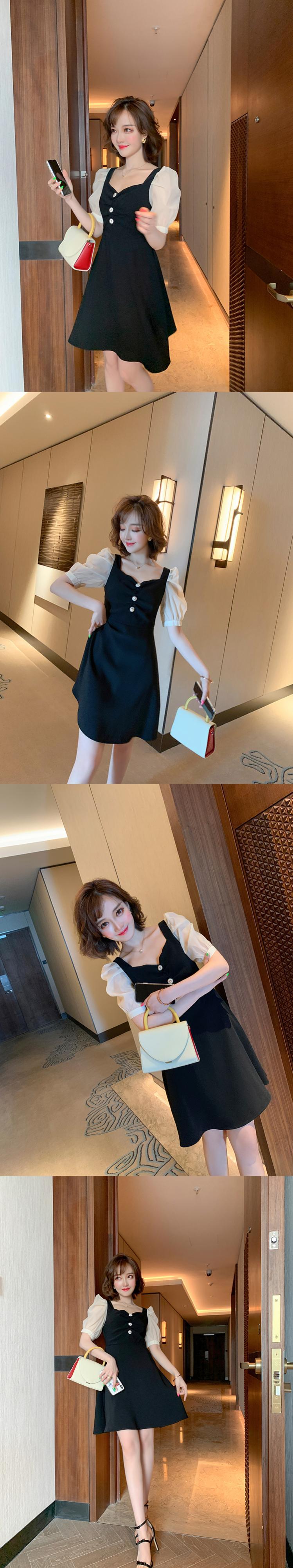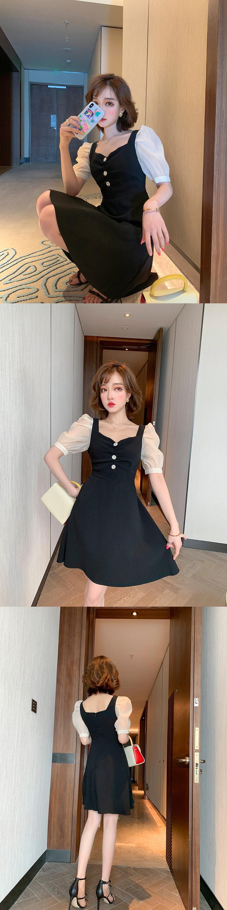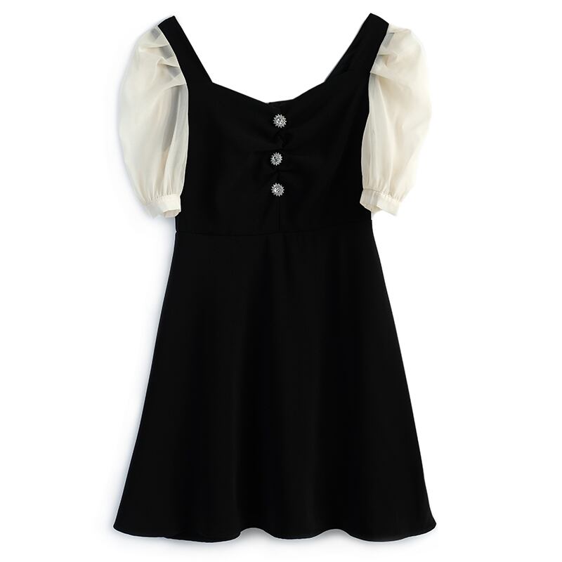 メッシュスタンダードスリーブVネックスリムドレス スプリングサマー レトロ 春物 夏物 ステッチ MIUCO50875355938